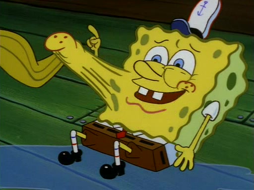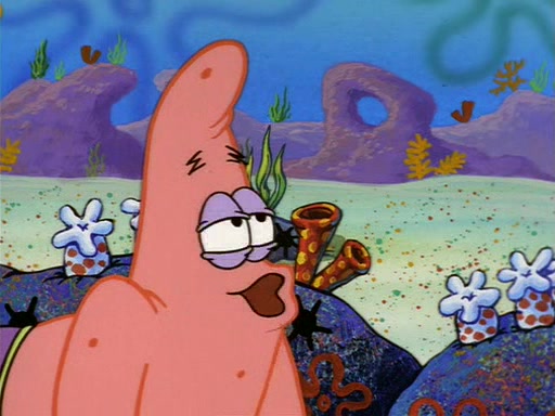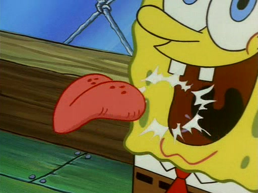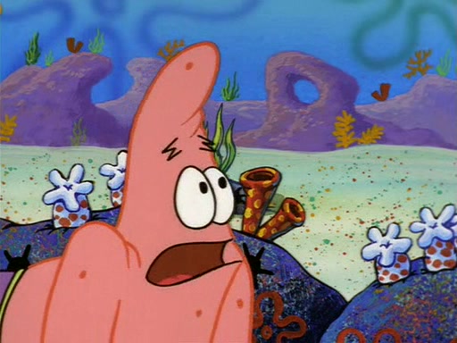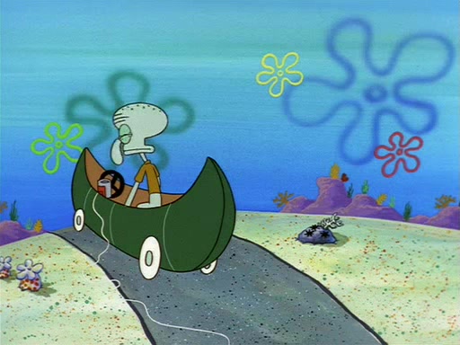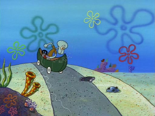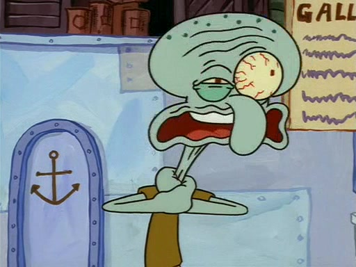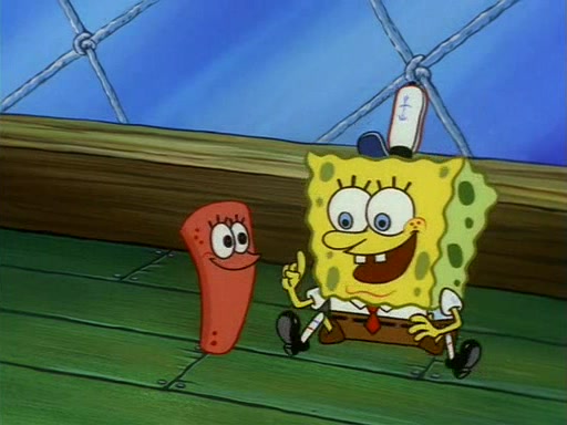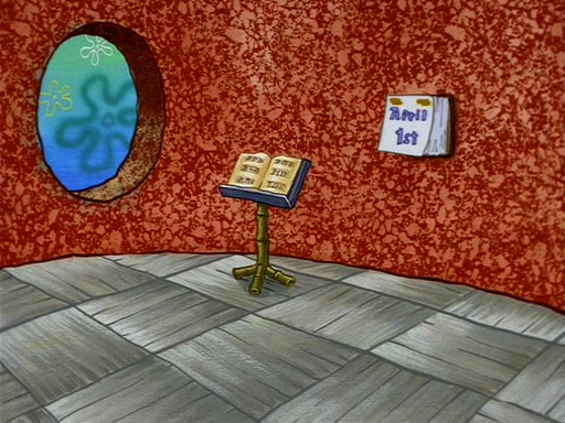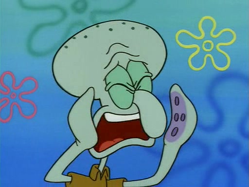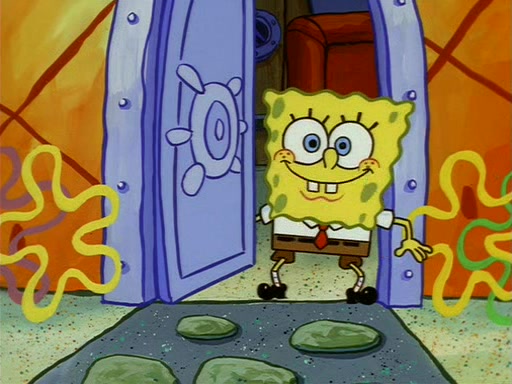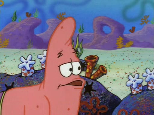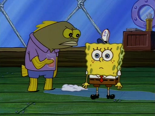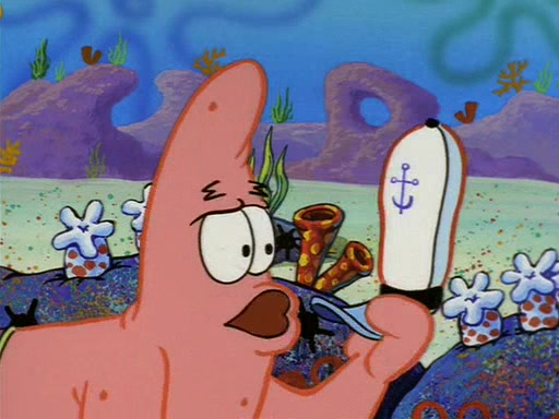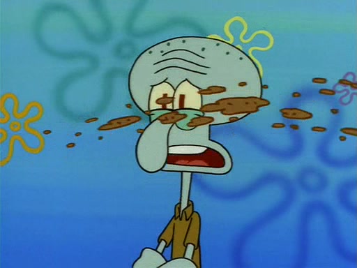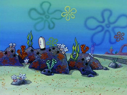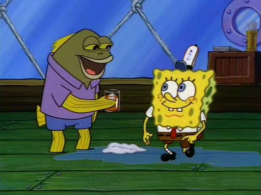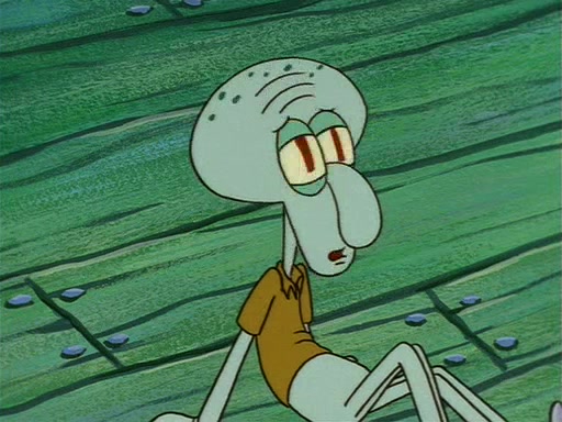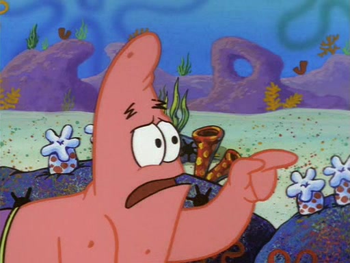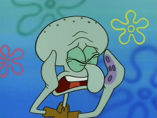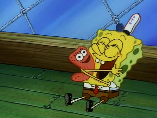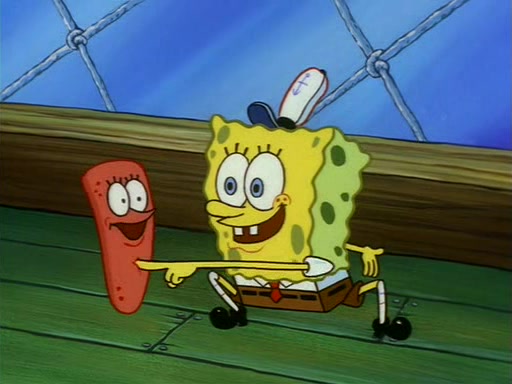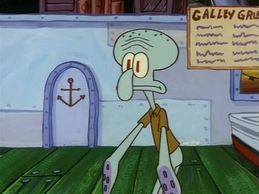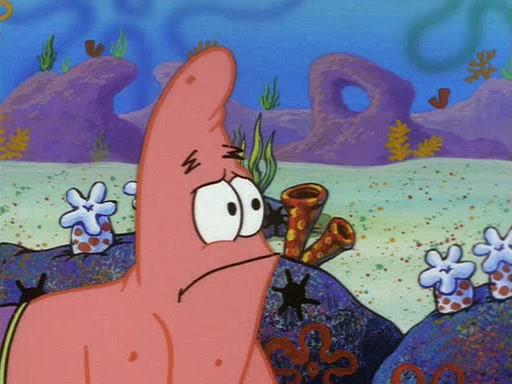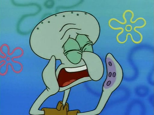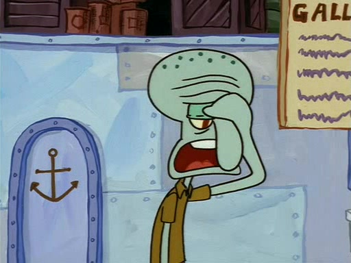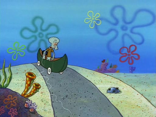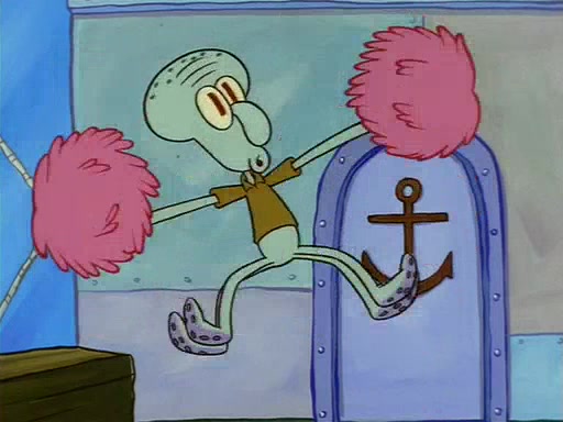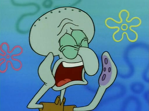 Squidward goes to SpongeBob's house and sees SpongeBob's hat behind a rock. Assuming it's SpongeBob, he goes over to apologize, but then sees that it's just Patrick wearing the hat and digging. Squidward asks where SpongeBob is and Patrick tells Squidward that SpongeBob is in the house "impressed" (instead of depressed) and was crying a lot. Squidward feels even worse and attempts to apologize when SpongeBob answers the door, but since apologizing to others isn't something he normally does, he initially finds himself to be physically incapable of simply saying "I'm sorry" to him.