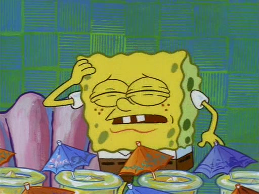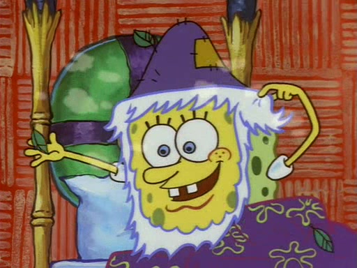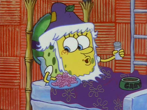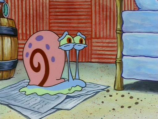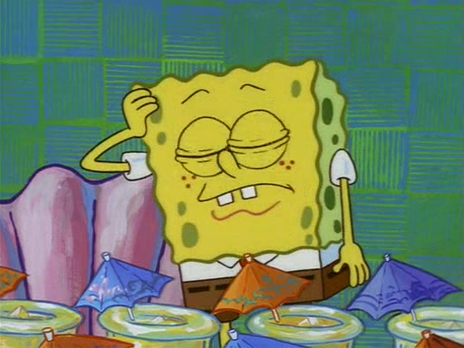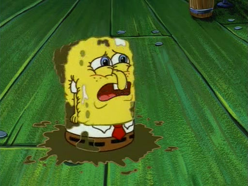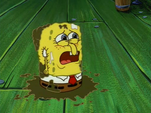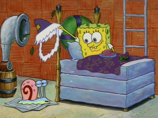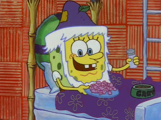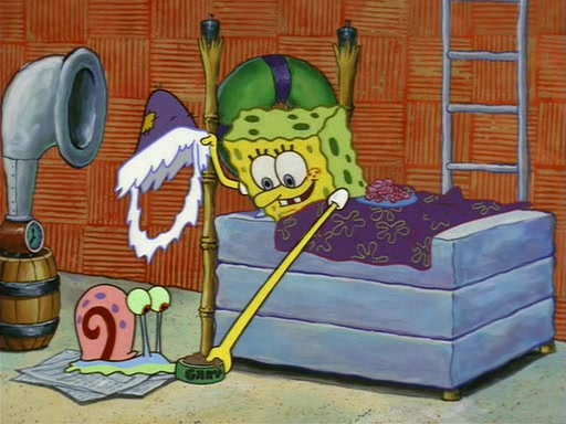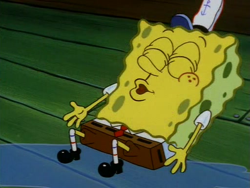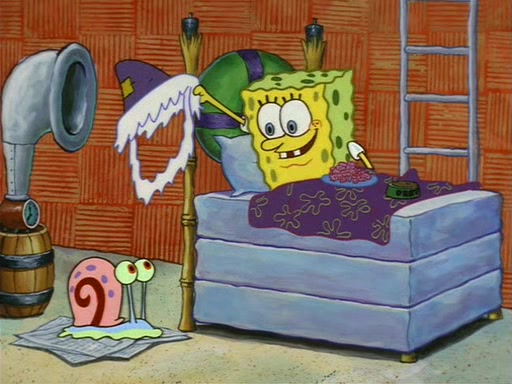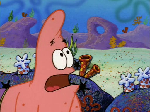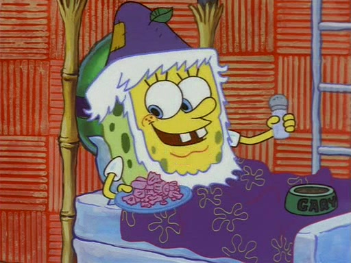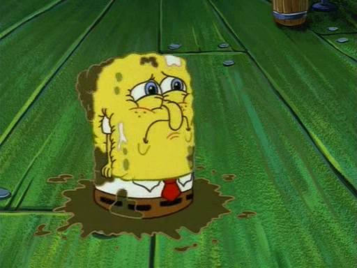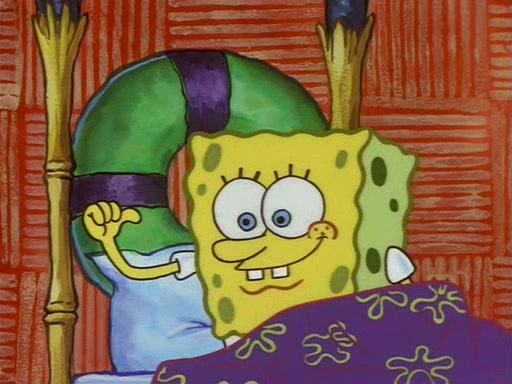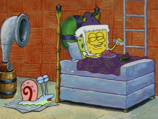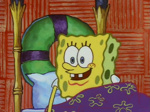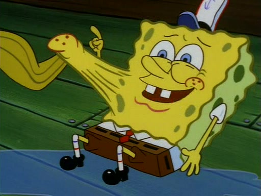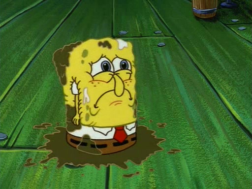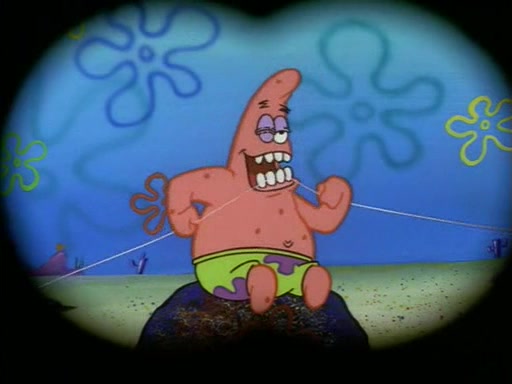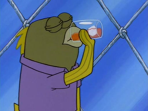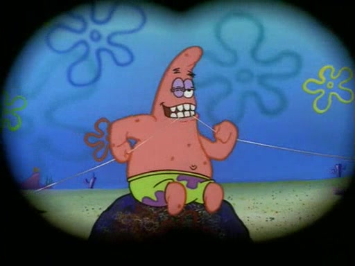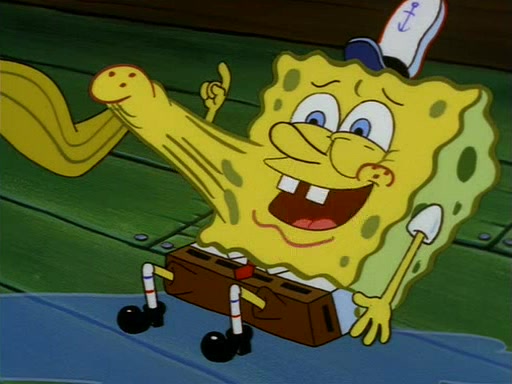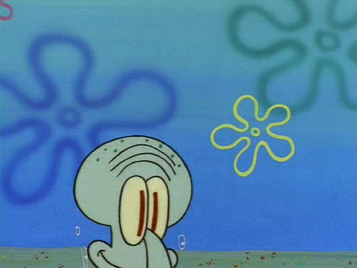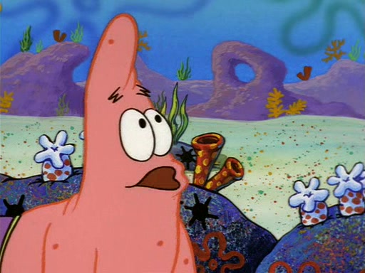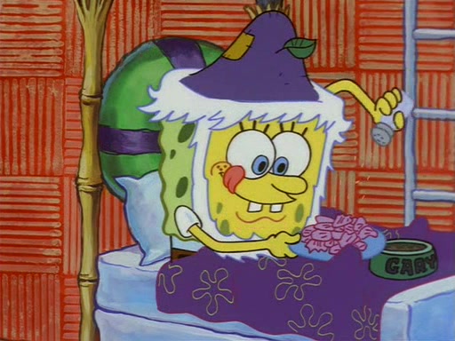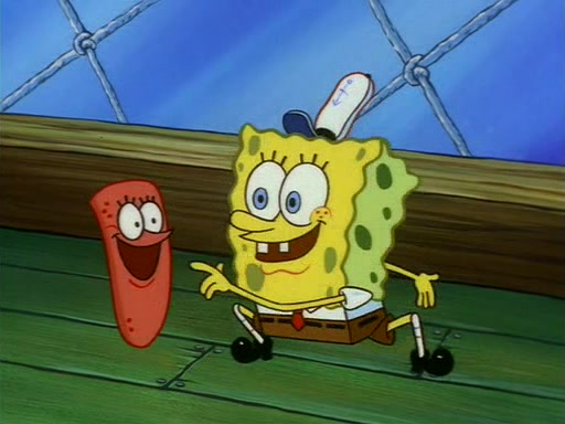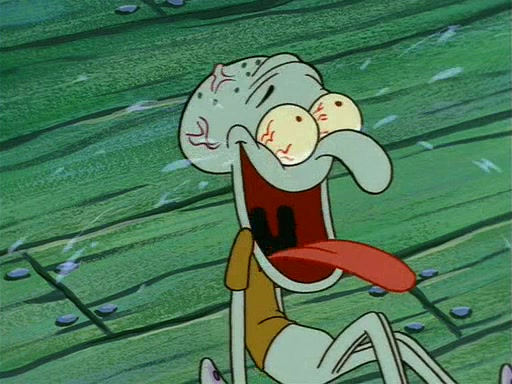 Squidward goes to SpongeBob's house and sees SpongeBob's hat behind a rock. Assuming it's SpongeBob, he goes over to apologize, but then sees that it's just Patrick wearing the hat and digging. Squidward asks where SpongeBob is and Patrick tells Squidward that SpongeBob is in the house "impressed" (instead of depressed) and was crying a lot. Squidward feels even worse and attempts to apologize when SpongeBob answers the door, but since apologizing to others isn't something he normally does, he initially finds himself to be physically incapable of simply saying "I'm sorry" to him.