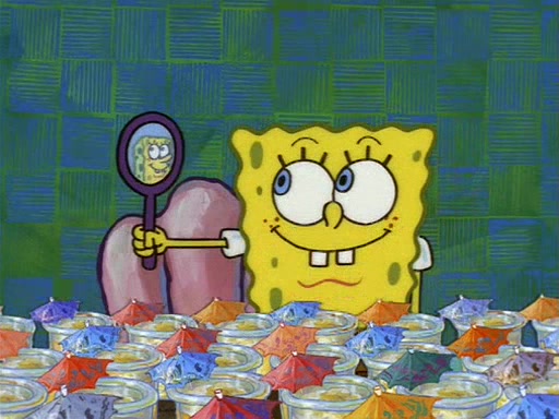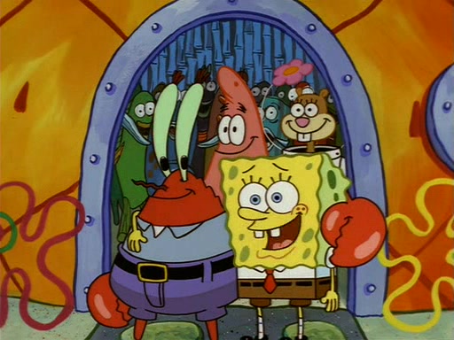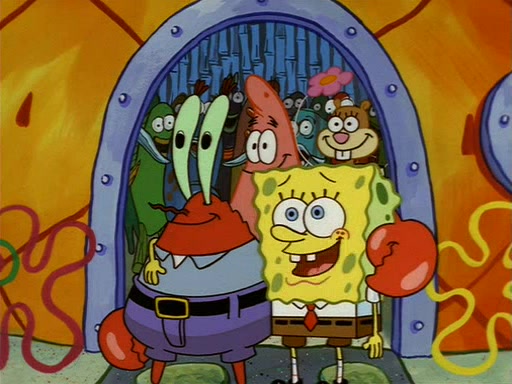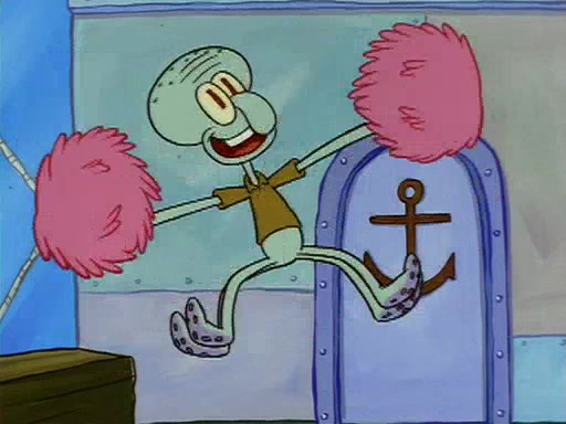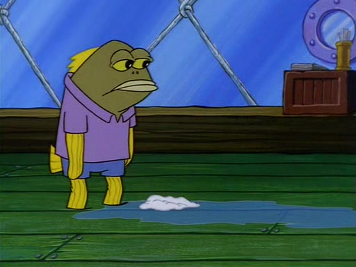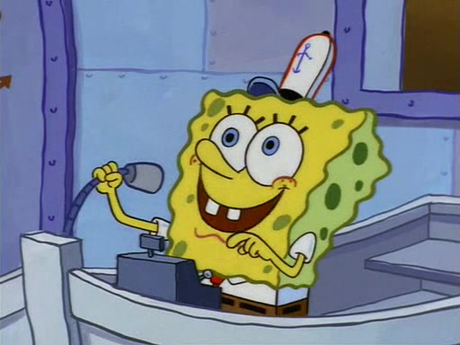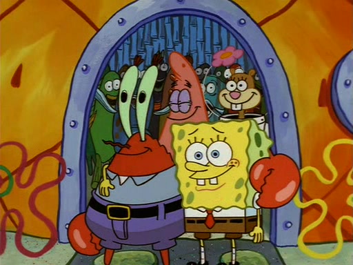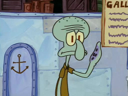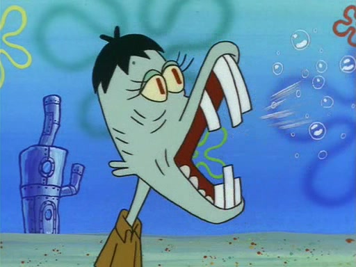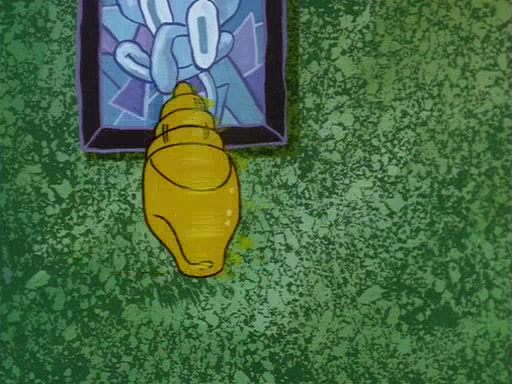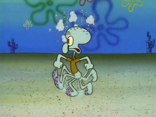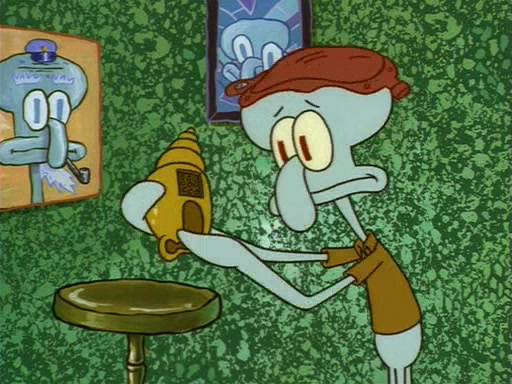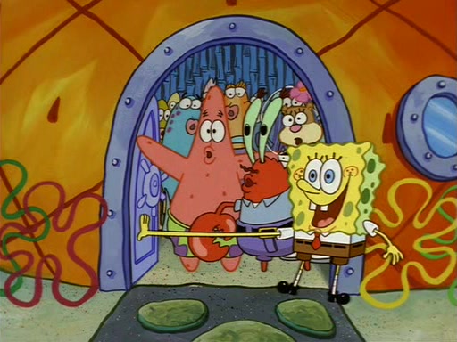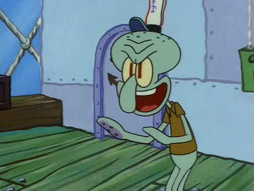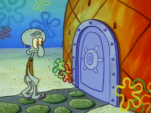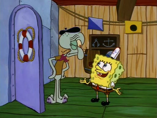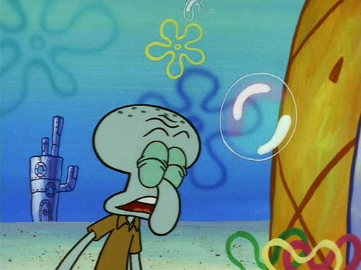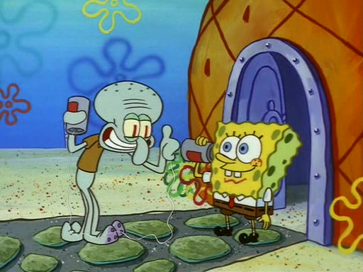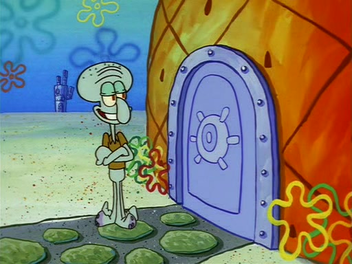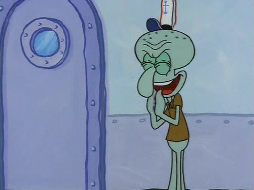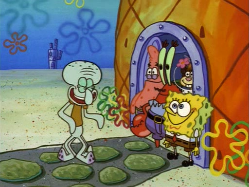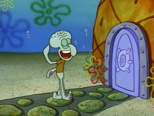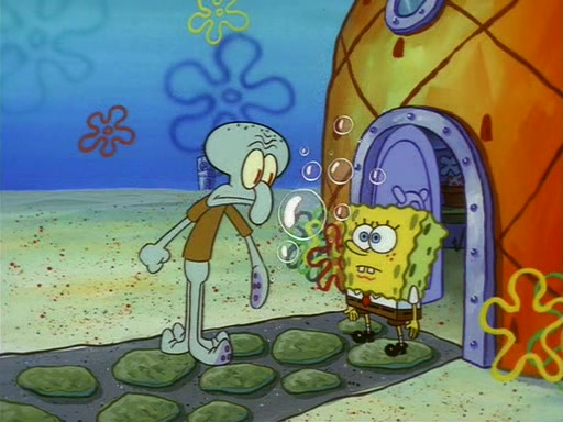 Eventually, he is able to say it by putting a bubble over his head, so that SpongeBob does not actually hear his apology. Squidward walks away, saying that his conscience is clear, but is confronted by memories of what he did, feels guilty again, attempts to apologize to SpongeBob several unsuccessful times, and eventually goes back and genuinely apologizes to SpongeBob, but tells SpongeBob not to tell anyone. SpongeBob promises not to tell and forgives him, but then fully opens his front door, revealing that everyone else is inside behind him, and witnessed Squidward's apology.