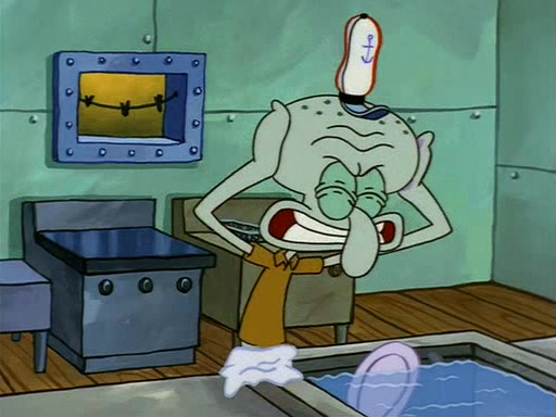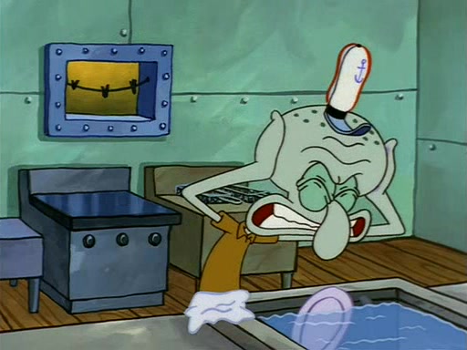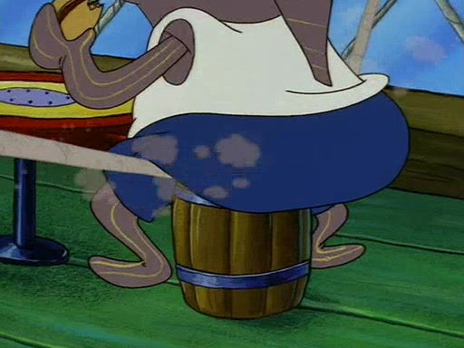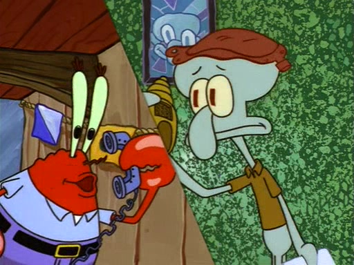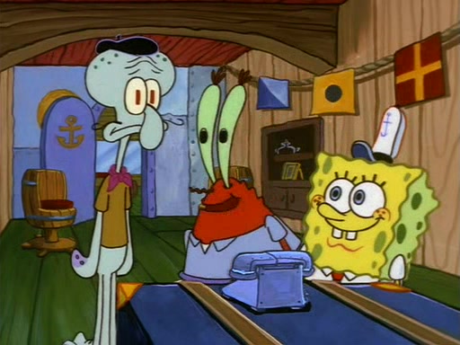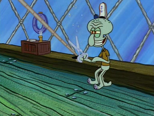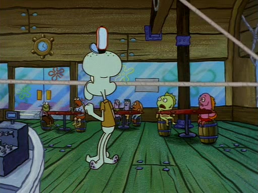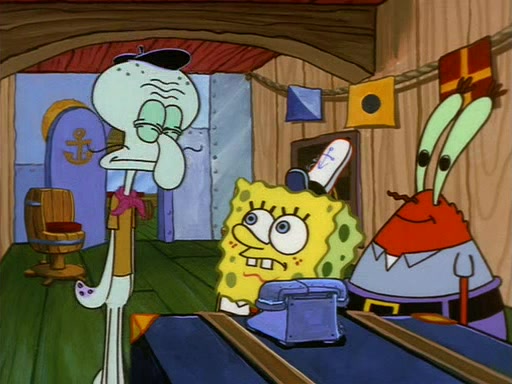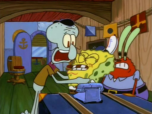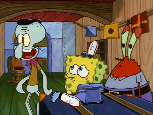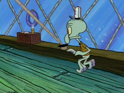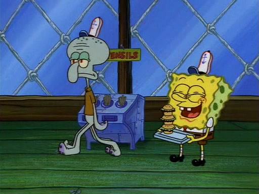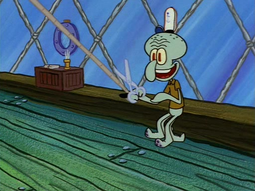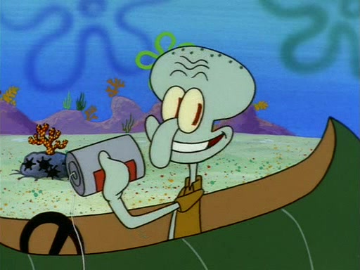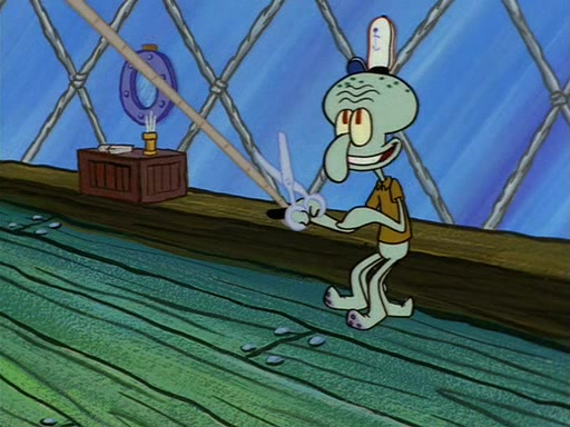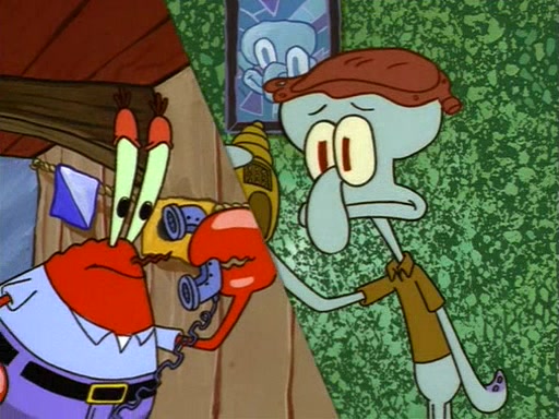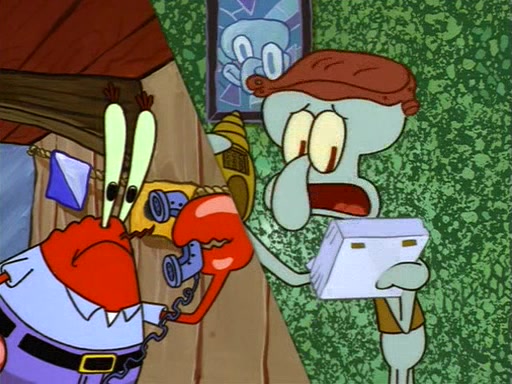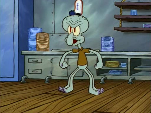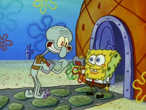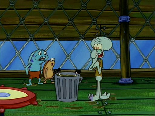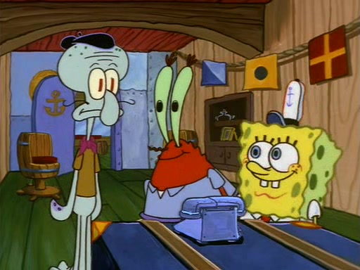 However, SpongeBob continues to prank the customers inside the Krusty Krab while hiding them from Squidward even though Squidward knows he is doing that. The customers seem to take SpongeBob's pranks lightly, because the pranks are considered funny and harmless. Although Squidward does not receive any more pranks as SpongeBob promised, Squidward gets annoyed over the SpongeBob and the customers' laughter. He decides to plot revenge on SpongeBob by showing him what he feels is a "real" prank, and sets a rope trap with a blob of mustard in the middle.