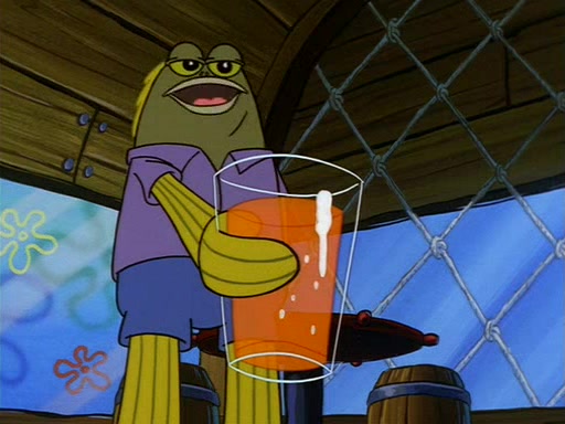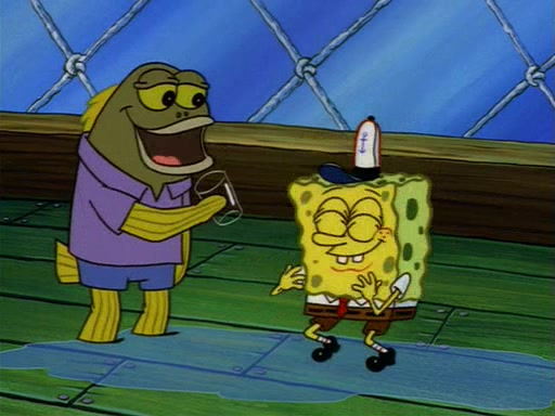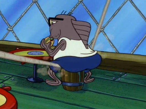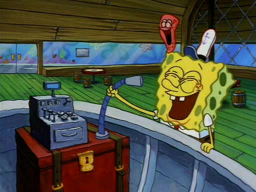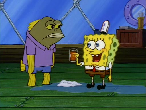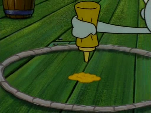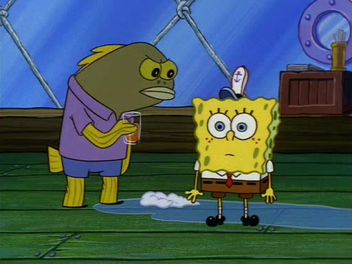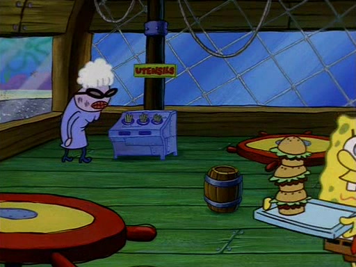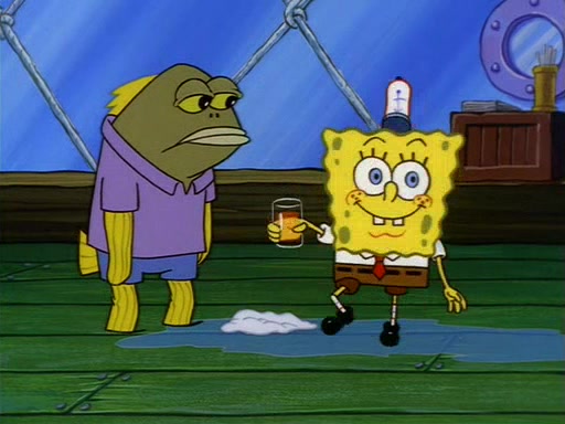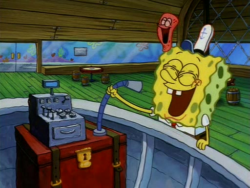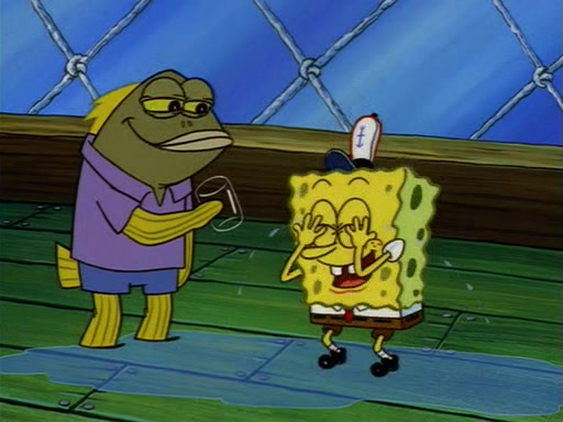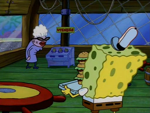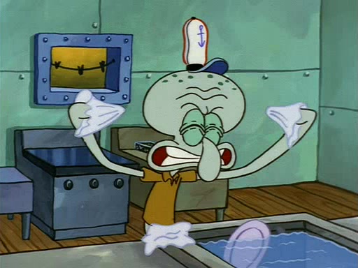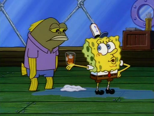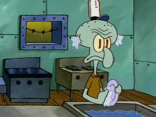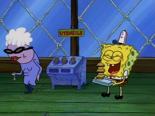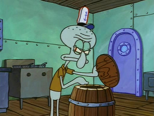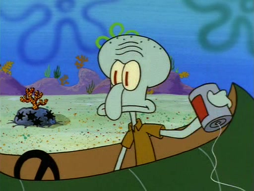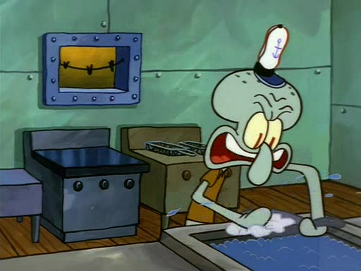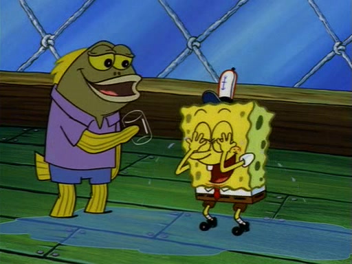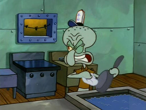 However, SpongeBob continues to prank the customers inside the Krusty Krab while hiding them from Squidward even though Squidward knows he is doing that. The customers seem to take SpongeBob's pranks lightly, because the pranks are considered funny and harmless. Although Squidward does not receive any more pranks as SpongeBob promised, Squidward gets annoyed over the SpongeBob and the customers' laughter. He decides to plot revenge on SpongeBob by showing him what he feels is a "real" prank, and sets a rope trap with a blob of mustard in the middle.
