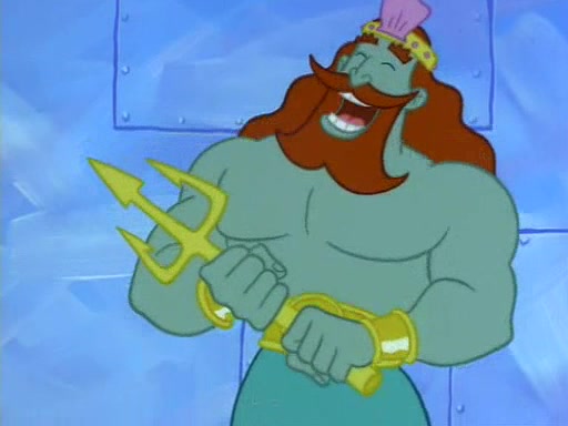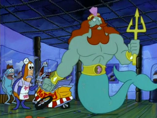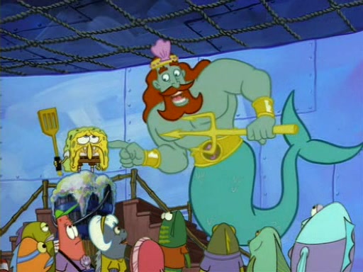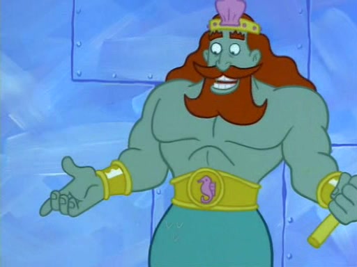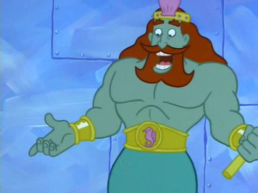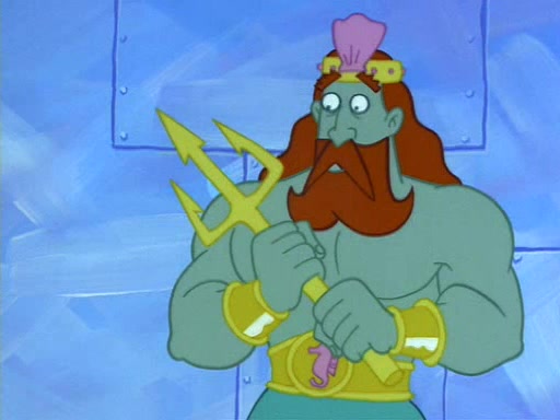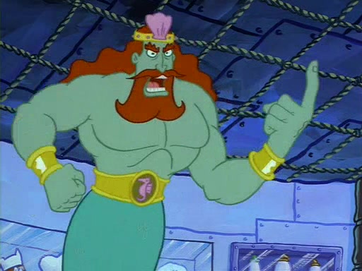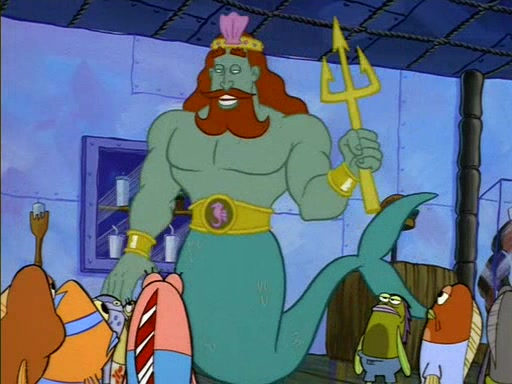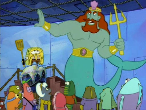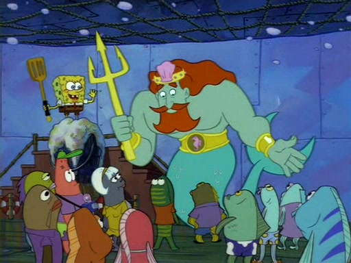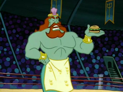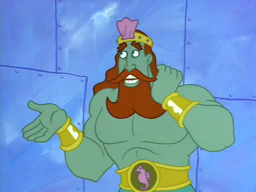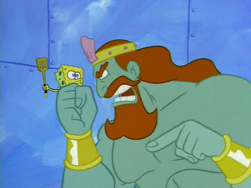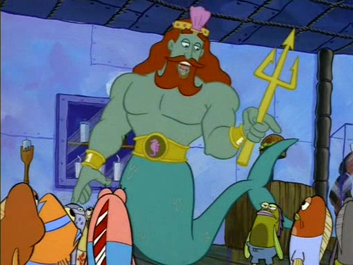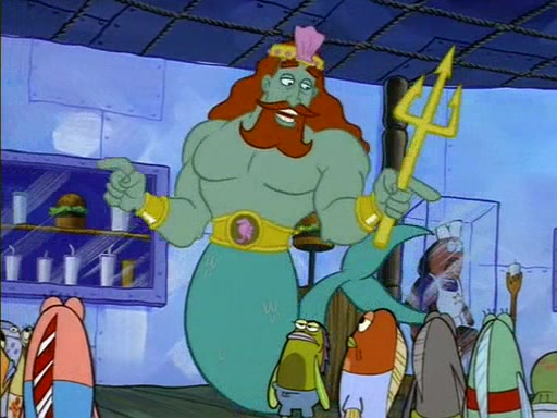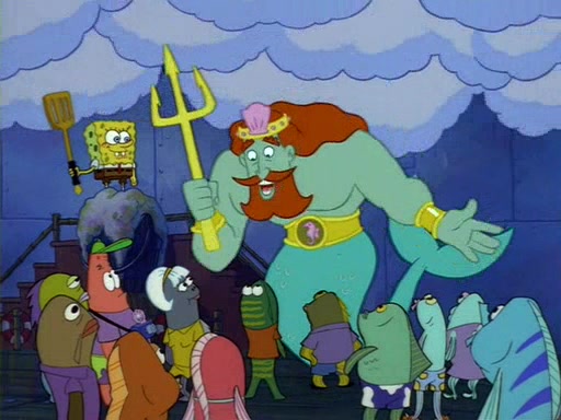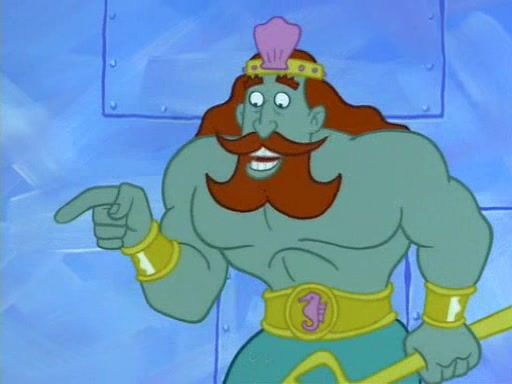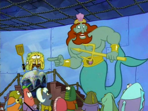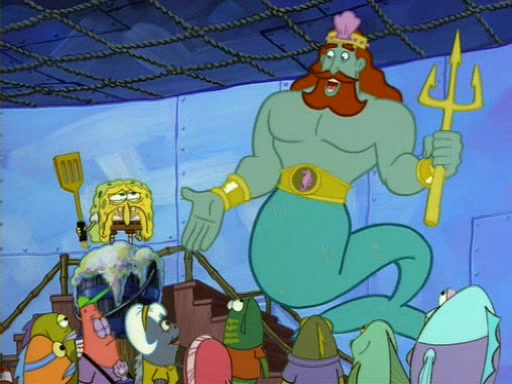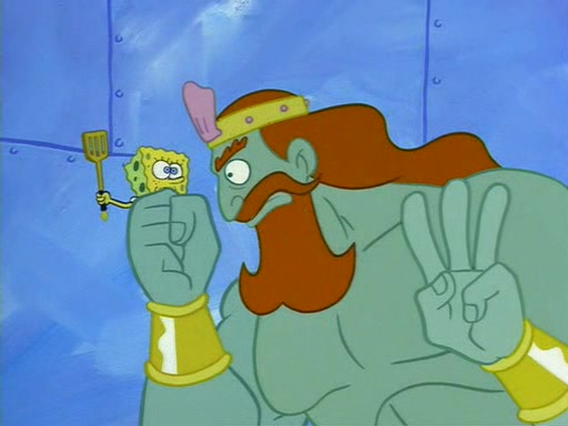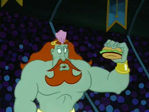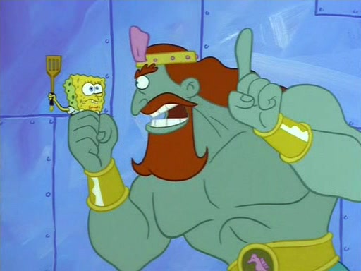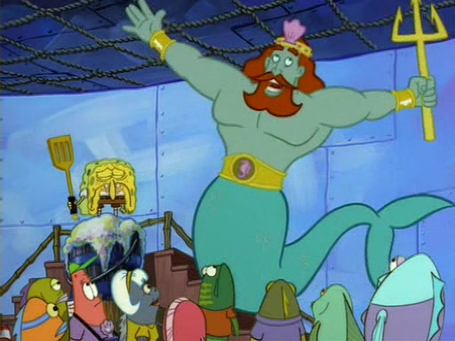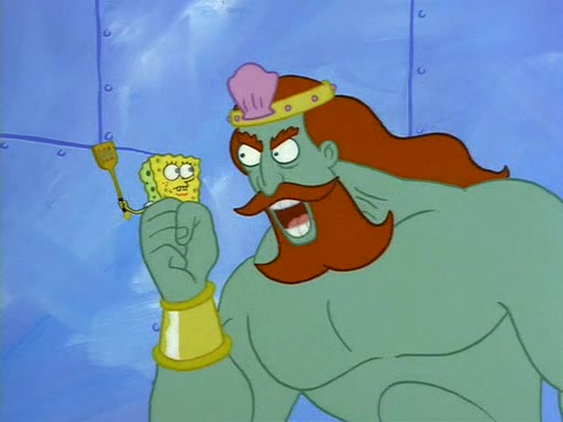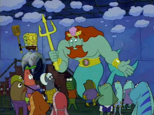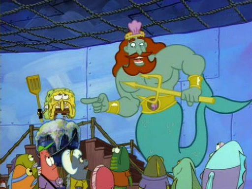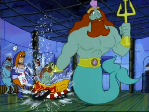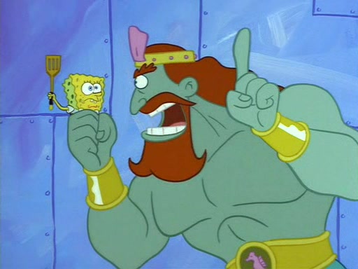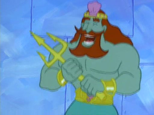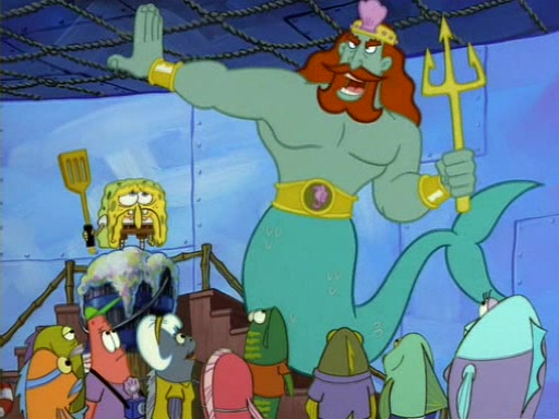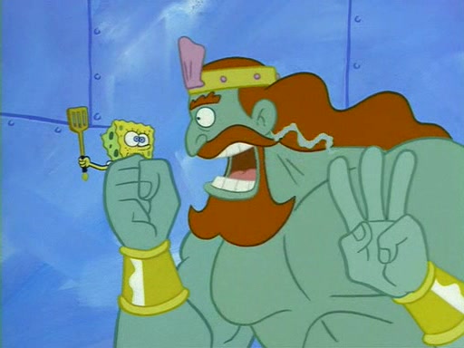SpongeBob and Patrick are visiting the Fry Cook Museum, where they see a greasy griddle with a golden spatula embedded in the grease. On it is a plaque, which says "Many have tried to pull this spatula out of this ancient grease, but all have failed. Larry the Lobster then attempted to pull it out but failed, SpongeBob then read, only a fry cook who's worthy of King Neptune himself can wield the golden spatula." SpongeBob, while posing for a photo, accidentally and effortlessly pulls it out, and King Neptune appears. He asks who pulled out the spatula, and everyone says SpongeBob. King Neptune refuses to believe this, and asks for proof. Patrick shows him the photograph he took, but Neptune still refuses to allow such a lowly being as SpongeBob to become the royal fry cook. He challenges SpongeBob to a patty-making competition. If SpongeBob wins, he will stay at Atlantis forever and become a god. If he loses, he has to give up fry-cooking forever. Patrick continually jeers to Neptune about SpongeBob's skills, and says that he could complete up to 500 challenges. He is repeatedly zapped by Neptune 3 times, until all that is left of him is a burnt mark on the floor. SpongeBob asks Neptune to revive Patrick, which he does (but with Patrick's face now on his butt). Neptune tried to show SpongeBob the Poseidome, but it shows Tom Kenny showering. In the Poseidome, King Neptune makes 1000 burgers, in the time it takes SpongeBob to make just one, winning the challenge. However, when Neptune shares his patties with the audience, they find that they taste awful. Neptune is angered by this, and asks why they would think that SpongeBob's would be any better. He tastes SpongeBob's patty, and finds it to be delicious. Neptune releases the Krabby Patty back to his stomach and re-eats it again and the audience is disgusted. SpongeBob is declared the winner, but when he finds out that his friends cannot come with him to Atlantis, he refuses to go, and instead arranges for King Neptune to be a trainee under SpongeBob at the Krusty Krab, teaching him that perfect Krabby Patties are made from love, not magic.
