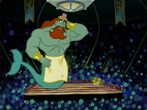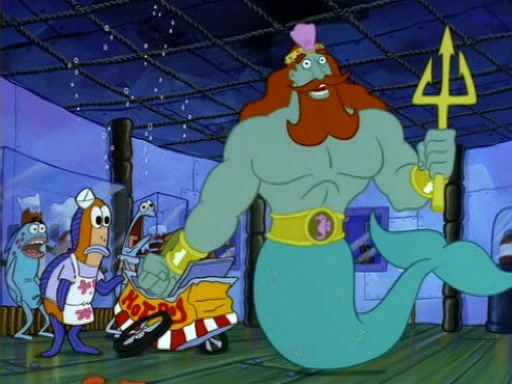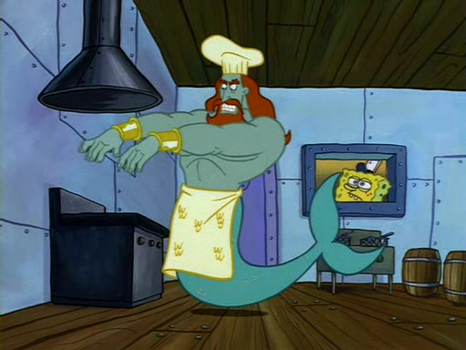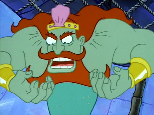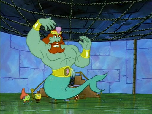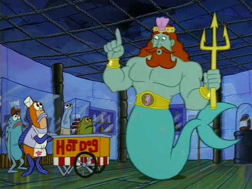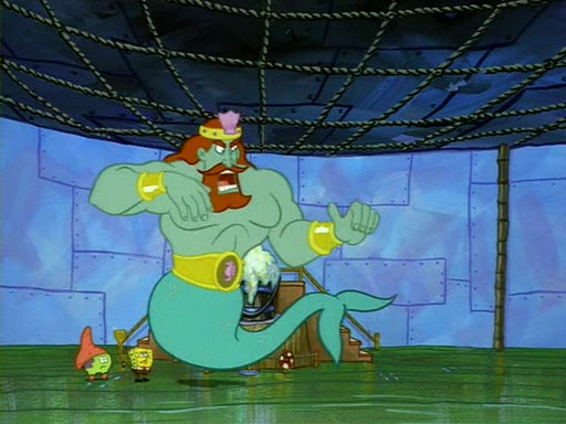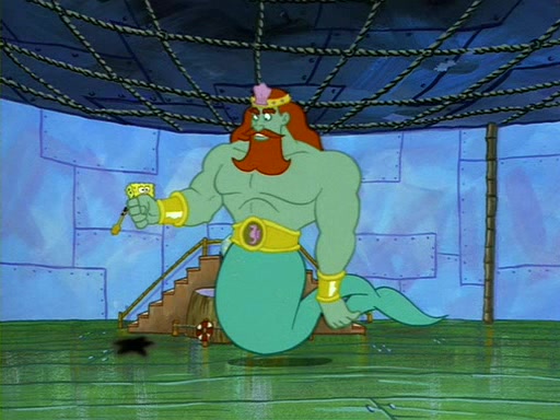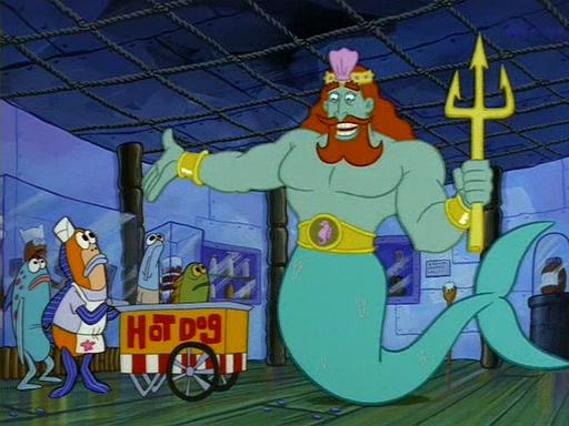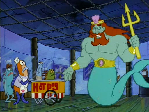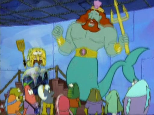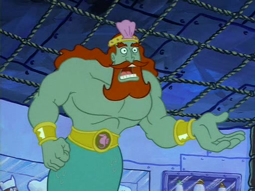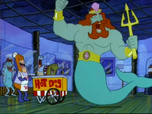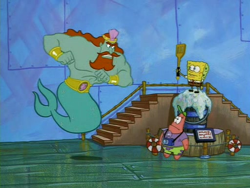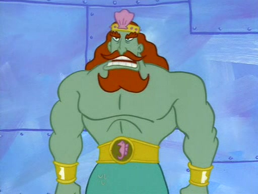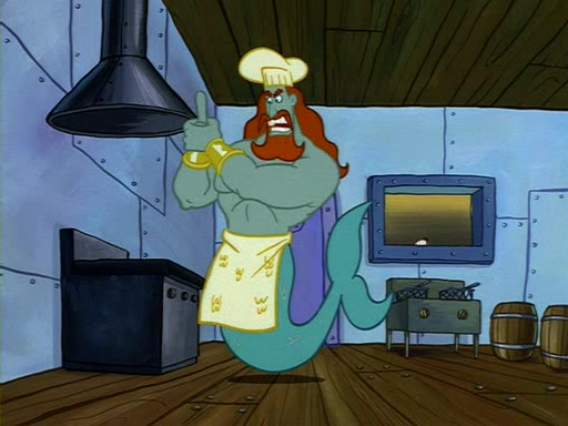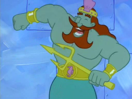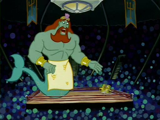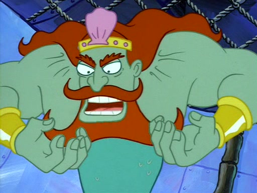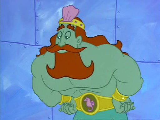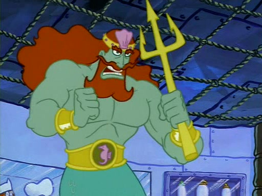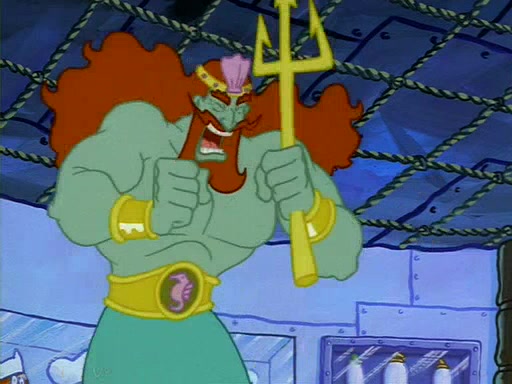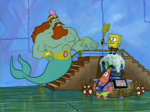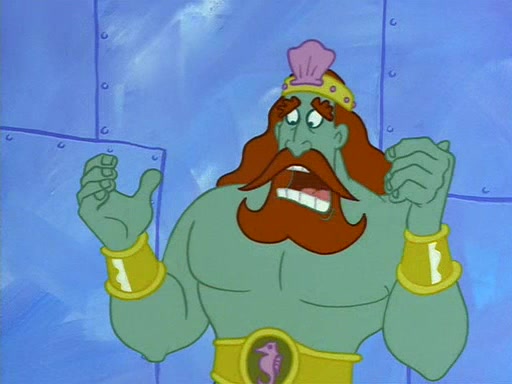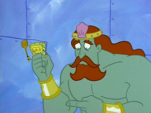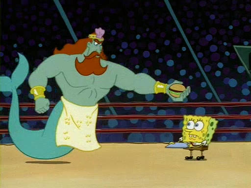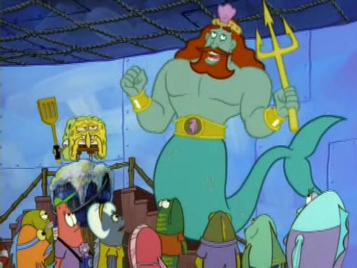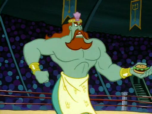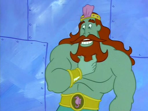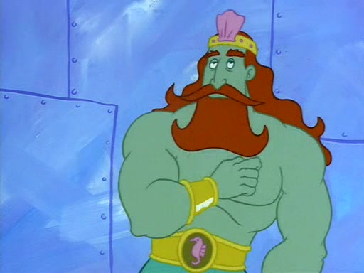 SpongeBob and Patrick are visiting the Fry Cook Museum, where they see a greasy griddle with a golden spatula embedded in the grease. On it is a plaque, which says "Many have tried to pull this spatula out of this ancient grease, but all have failed. Larry the Lobster then attempted to pull it out but failed, SpongeBob then read, only a fry cook who's worthy of King Neptune himself can wield the golden spatula." SpongeBob, while posing for a photo, accidentally and effortlessly pulls it out, and King Neptune appears. He asks who pulled out the spatula, and everyone says SpongeBob. King Neptune refuses to believe this, and asks for proof. Patrick shows him the photograph he took, but Neptune still refuses to allow such a lowly being as SpongeBob to become the royal fry cook. He challenges SpongeBob to a patty-making competition. If SpongeBob wins, he will stay at Atlantis forever and become a god. If he loses, he has to give up fry-cooking forever. Patrick continually jeers to Neptune about SpongeBob's skills, and says that he could complete up to 500 challenges. He is repeatedly zapped by Neptune 3 times, until all that is left of him is a burnt mark on the floor. SpongeBob asks Neptune to revive Patrick, which he does (but with Patrick's face now on his butt). Neptune tried to show SpongeBob the Poseidome, but it shows Tom Kenny showering. In the Poseidome, King Neptune makes 1000 burgers, in the time it takes SpongeBob to make just one, winning the challenge. However, when Neptune shares his patties with the audience, they find that they taste awful. Neptune is angered by this, and asks why they would think that SpongeBob's would be any better. He tastes SpongeBob's patty, and finds it to be delicious. Neptune releases the Krabby Patty back to his stomach and re-eats it again and the audience is disgusted. SpongeBob is declared the winner, but when he finds out that his friends cannot come with him to Atlantis, he refuses to go, and instead arranges for King Neptune to be a trainee under SpongeBob at the Krusty Krab, teaching him that perfect Krabby Patties are made from love, not magic.
