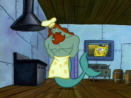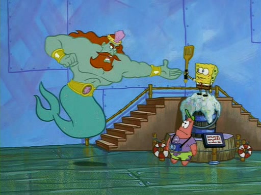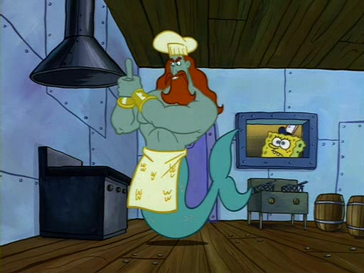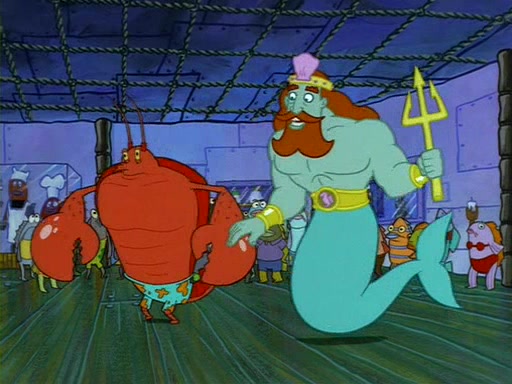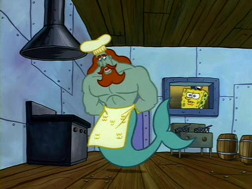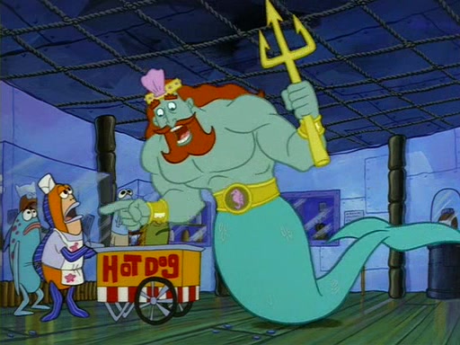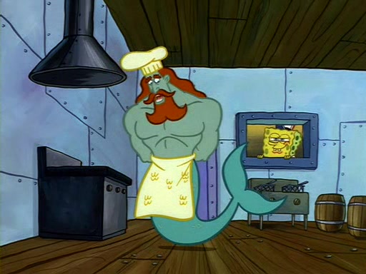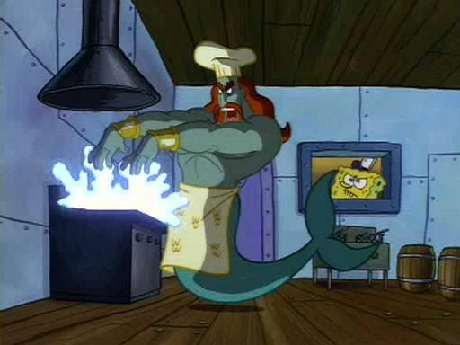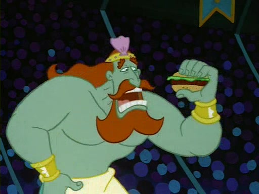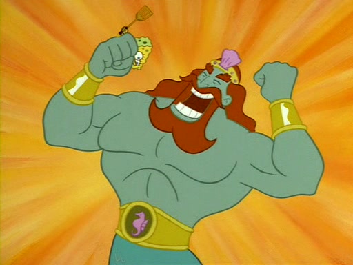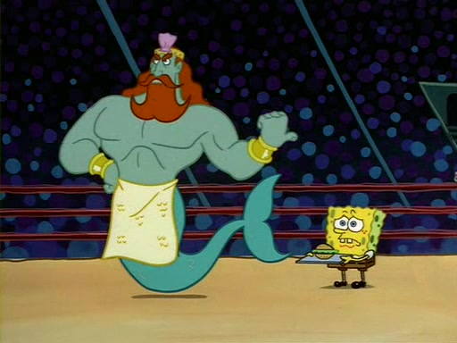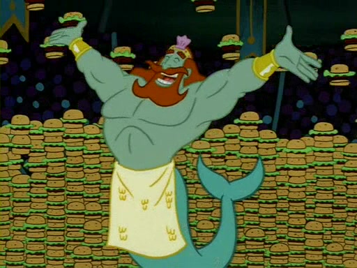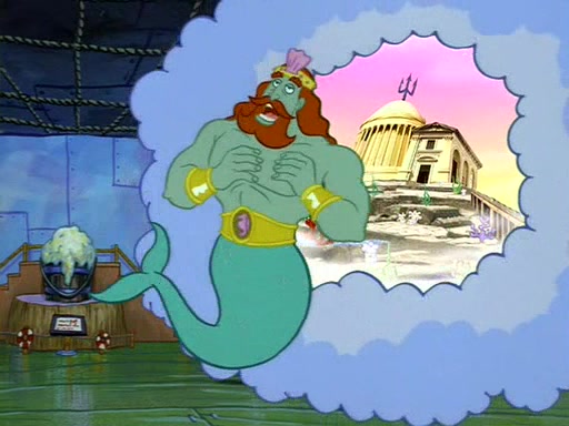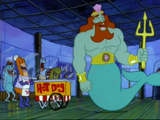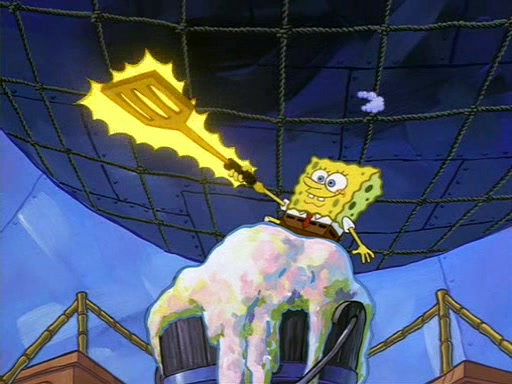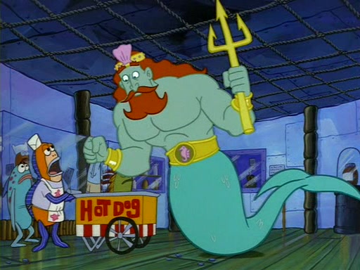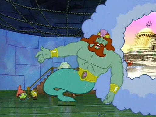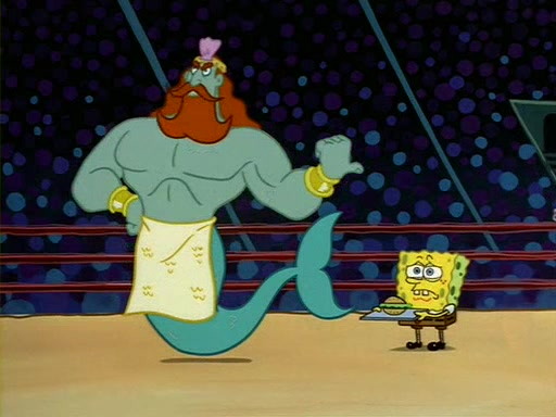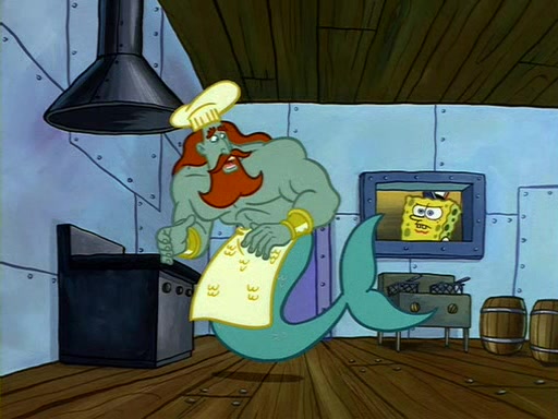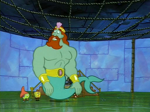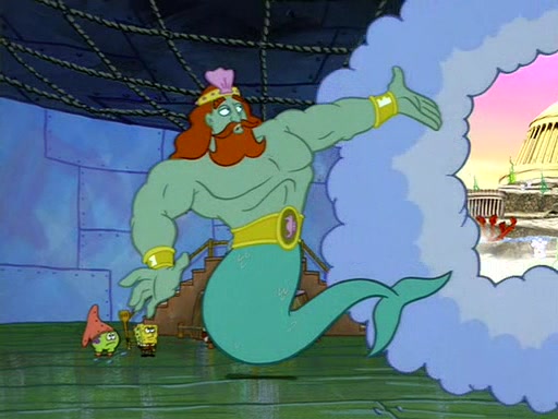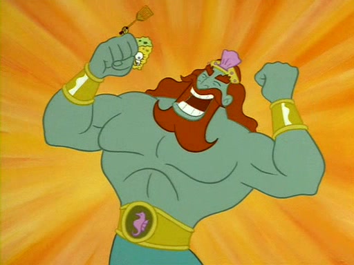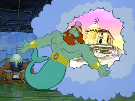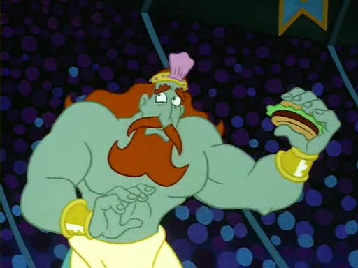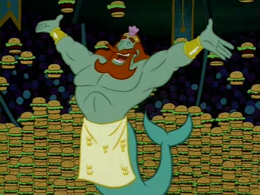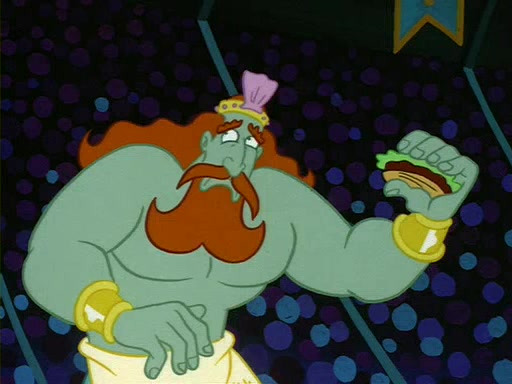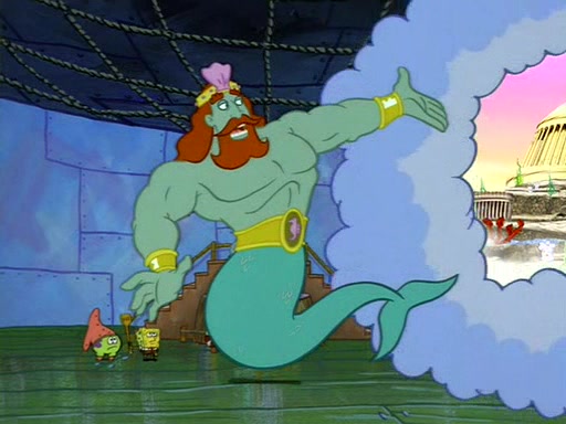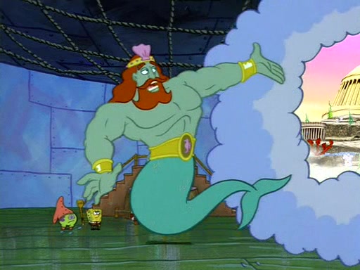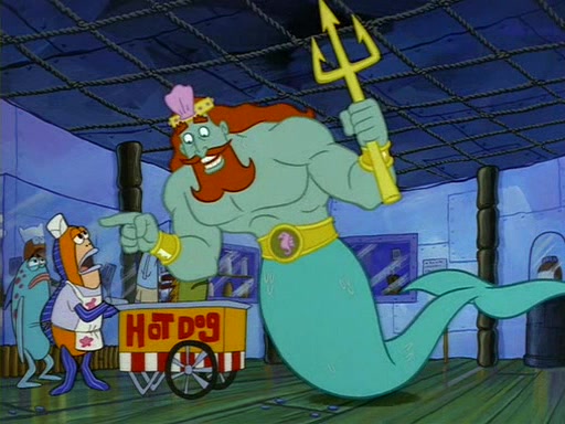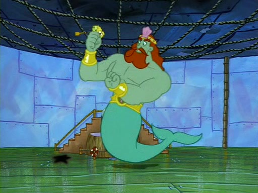 SpongeBob and Patrick are visiting the Fry Cook Museum, where they see a greasy griddle with a golden spatula embedded in the grease. On it is a plaque, which says "Many have tried to pull this spatula out of this ancient grease, but all have failed. Larry the Lobster then attempted to pull it out but failed, SpongeBob then read, only a fry cook who's worthy of King Neptune himself can wield the golden spatula." SpongeBob, while posing for a photo, accidentally and effortlessly pulls it out, and King Neptune appears. He asks who pulled out the spatula, and everyone says SpongeBob. King Neptune refuses to believe this, and asks for proof. Patrick shows him the photograph he took, but Neptune still refuses to allow such a lowly being as SpongeBob to become the royal fry cook. He challenges SpongeBob to a patty-making competition. If SpongeBob wins, he will stay at Atlantis forever and become a god. If he loses, he has to give up fry-cooking forever. Patrick continually jeers to Neptune about SpongeBob's skills, and says that he could complete up to 500 challenges. He is repeatedly zapped by Neptune 3 times, until all that is left of him is a burnt mark on the floor. SpongeBob asks Neptune to revive Patrick, which he does (but with Patrick's face now on his butt). Neptune tried to show SpongeBob the Poseidome, but it shows Tom Kenny showering. In the Poseidome, King Neptune makes 1000 burgers, in the time it takes SpongeBob to make just one, winning the challenge. However, when Neptune shares his patties with the audience, they find that they taste awful. Neptune is angered by this, and asks why they would think that SpongeBob's would be any better. He tastes SpongeBob's patty, and finds it to be delicious. Neptune releases the Krabby Patty back to his stomach and re-eats it again and the audience is disgusted. SpongeBob is declared the winner, but when he finds out that his friends cannot come with him to Atlantis, he refuses to go, and instead arranges for King Neptune to be a trainee under SpongeBob at the Krusty Krab, teaching him that perfect Krabby Patties are made from love, not magic.