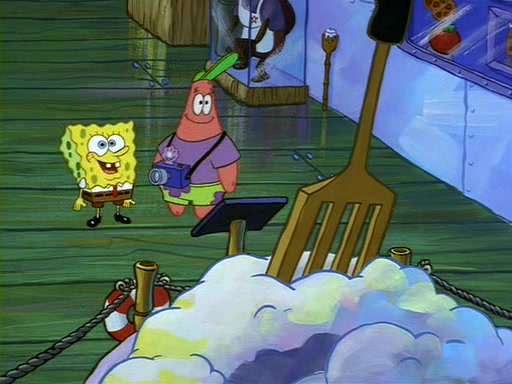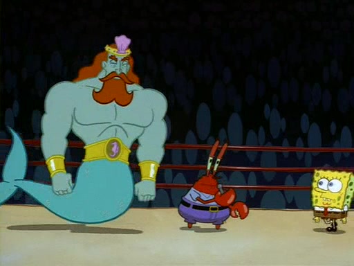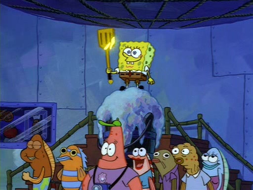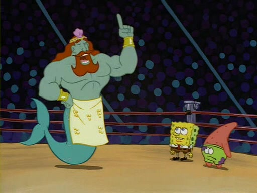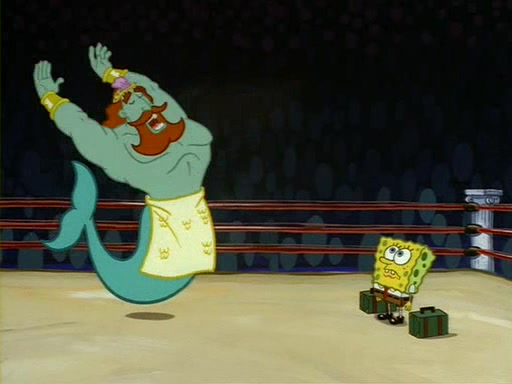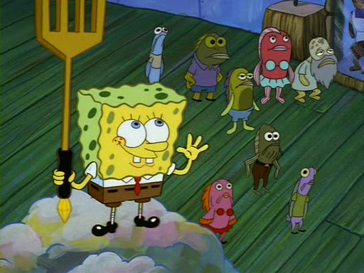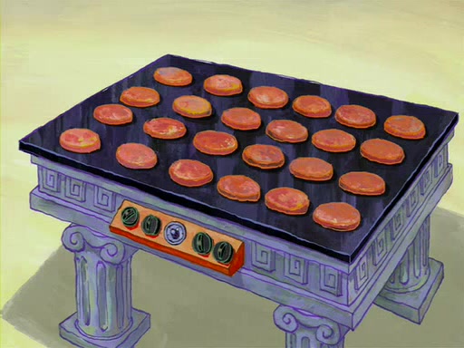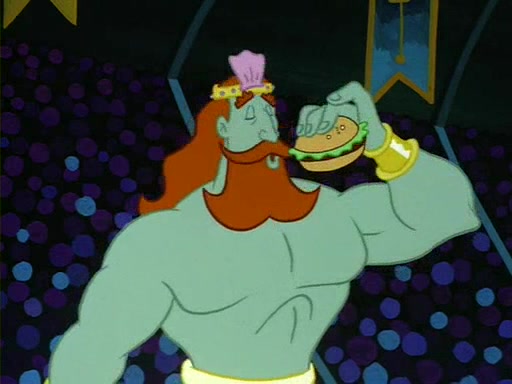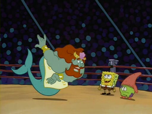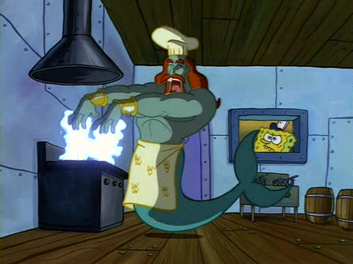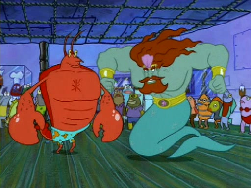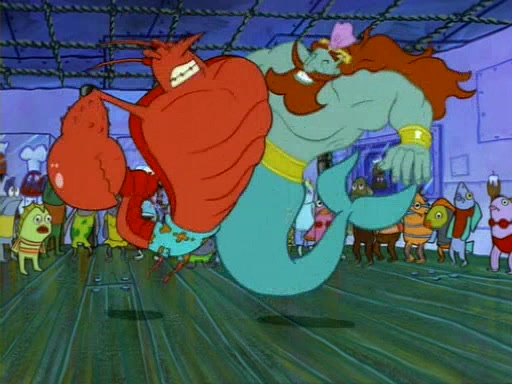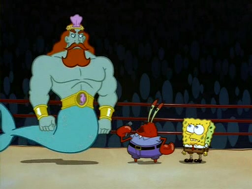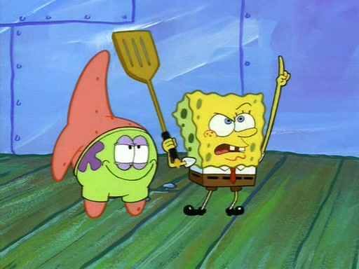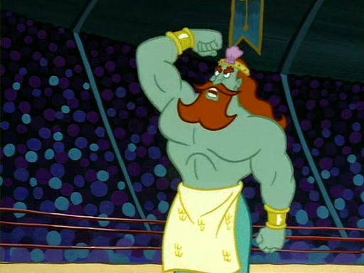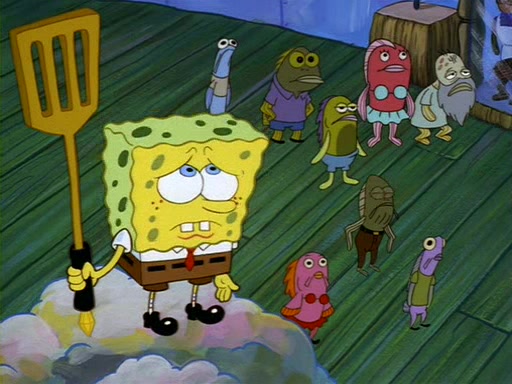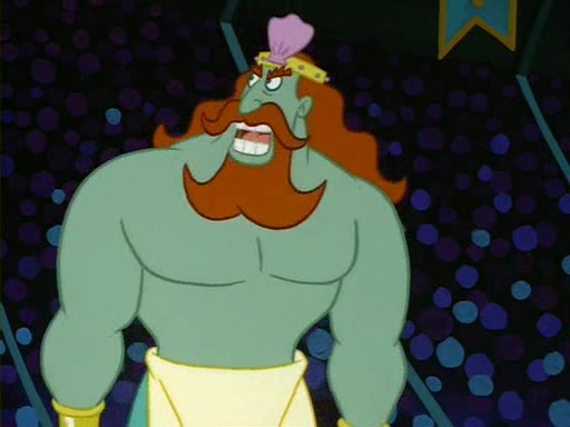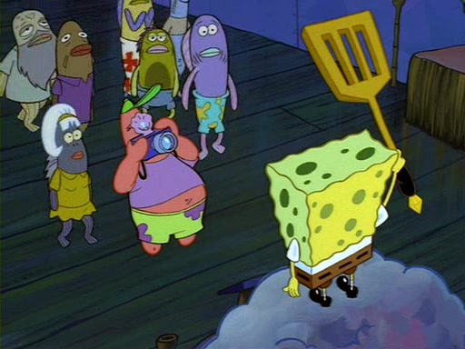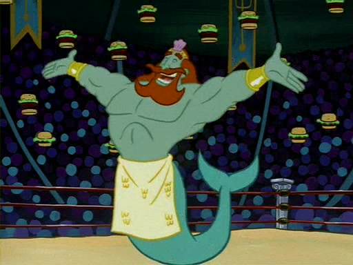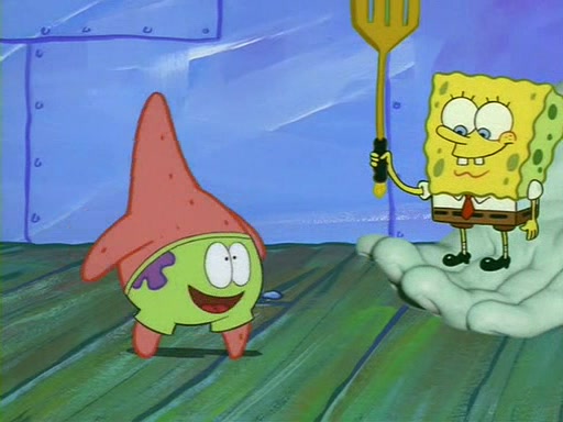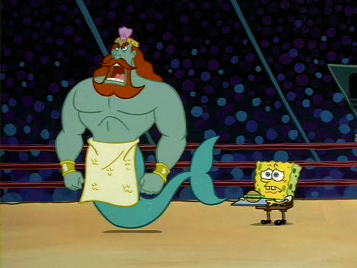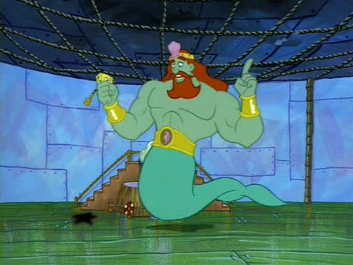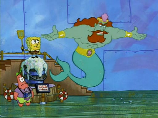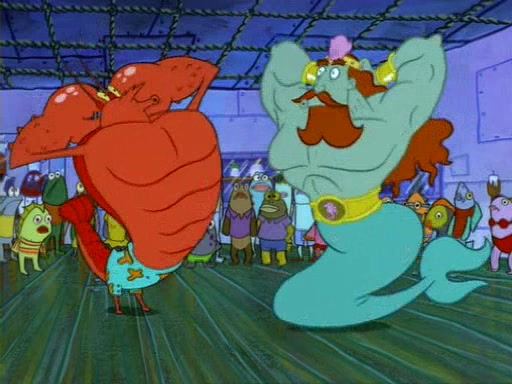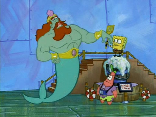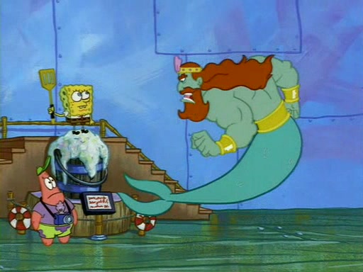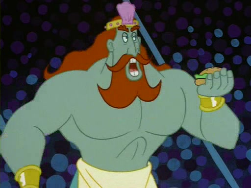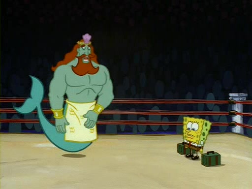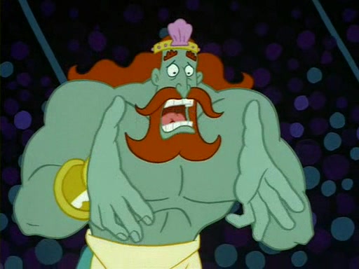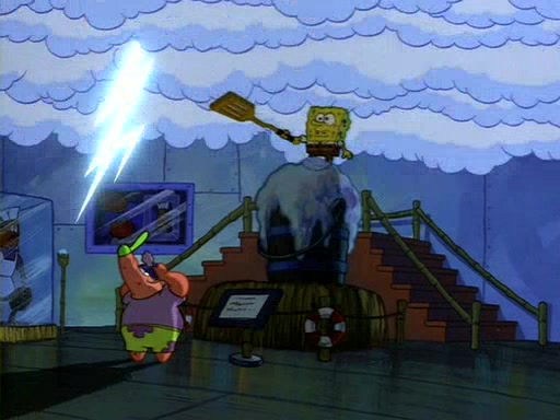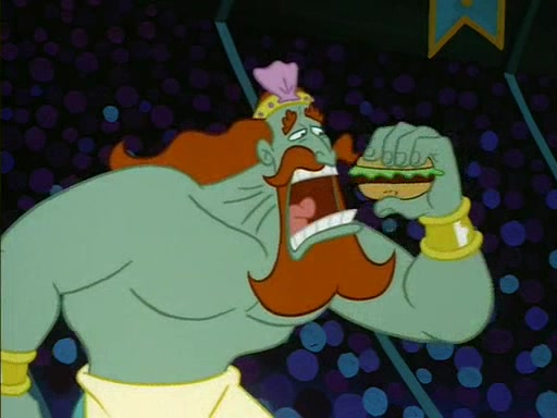 SpongeBob and Patrick are visiting the Fry Cook Museum, where they see a greasy griddle with a golden spatula embedded in the grease. On it is a plaque, which says "Many have tried to pull this spatula out of this ancient grease, but all have failed. Larry the Lobster then attempted to pull it out but failed, SpongeBob then read, only a fry cook who's worthy of King Neptune himself can wield the golden spatula." SpongeBob, while posing for a photo, accidentally and effortlessly pulls it out, and King Neptune appears. He asks who pulled out the spatula, and everyone says SpongeBob. King Neptune refuses to believe this, and asks for proof. Patrick shows him the photograph he took, but Neptune still refuses to allow such a lowly being as SpongeBob to become the royal fry cook. He challenges SpongeBob to a patty-making competition. If SpongeBob wins, he will stay at Atlantis forever and become a god. If he loses, he has to give up fry-cooking forever. Patrick continually jeers to Neptune about SpongeBob's skills, and says that he could complete up to 500 challenges. He is repeatedly zapped by Neptune 3 times, until all that is left of him is a burnt mark on the floor. SpongeBob asks Neptune to revive Patrick, which he does (but with Patrick's face now on his butt). Neptune tried to show SpongeBob the Poseidome, but it shows Tom Kenny showering. In the Poseidome, King Neptune makes 1000 burgers, in the time it takes SpongeBob to make just one, winning the challenge. However, when Neptune shares his patties with the audience, they find that they taste awful. Neptune is angered by this, and asks why they would think that SpongeBob's would be any better. He tastes SpongeBob's patty, and finds it to be delicious. Neptune releases the Krabby Patty back to his stomach and re-eats it again and the audience is disgusted. SpongeBob is declared the winner, but when he finds out that his friends cannot come with him to Atlantis, he refuses to go, and instead arranges for King Neptune to be a trainee under SpongeBob at the Krusty Krab, teaching him that perfect Krabby Patties are made from love, not magic.