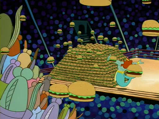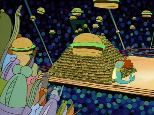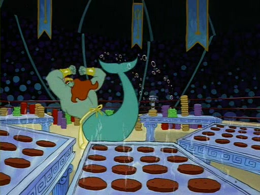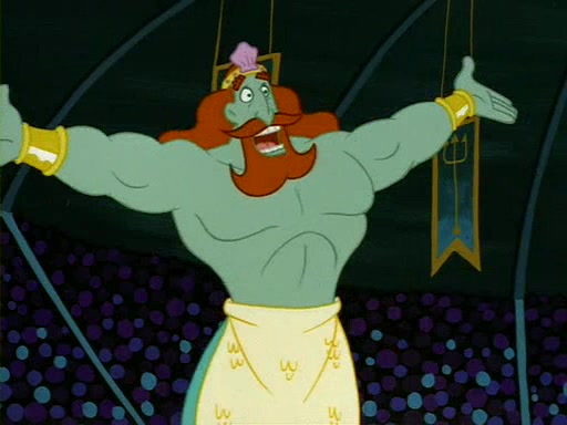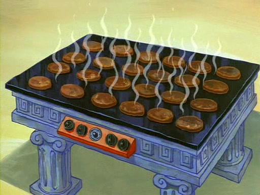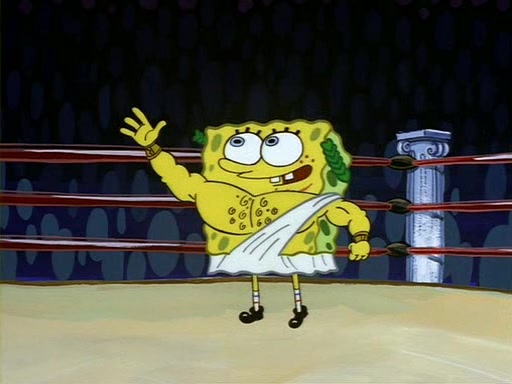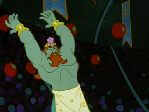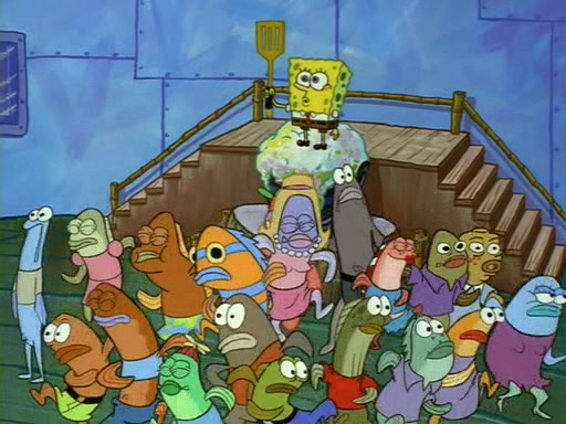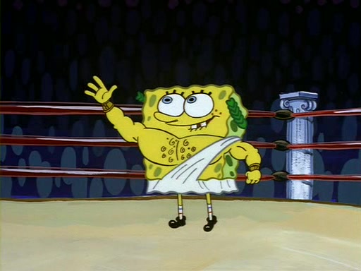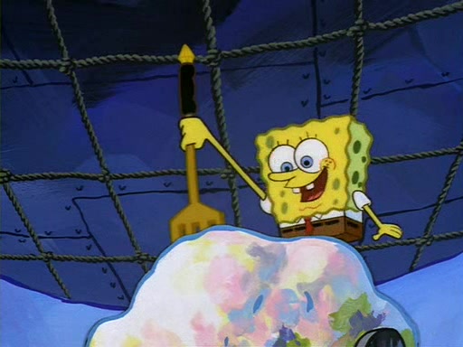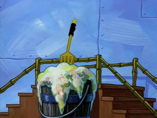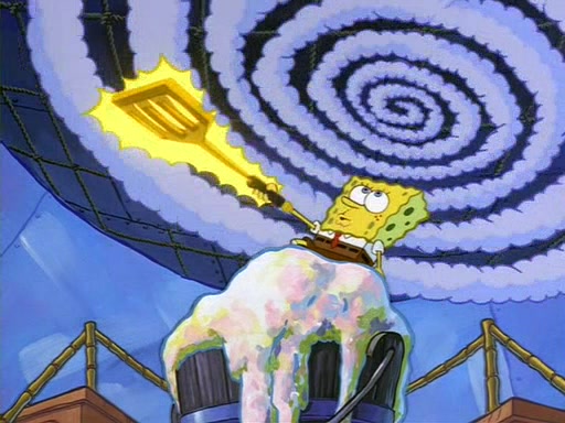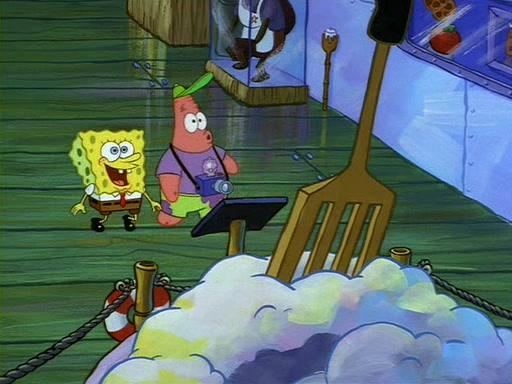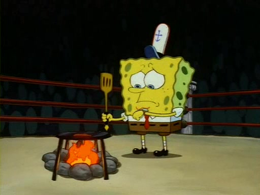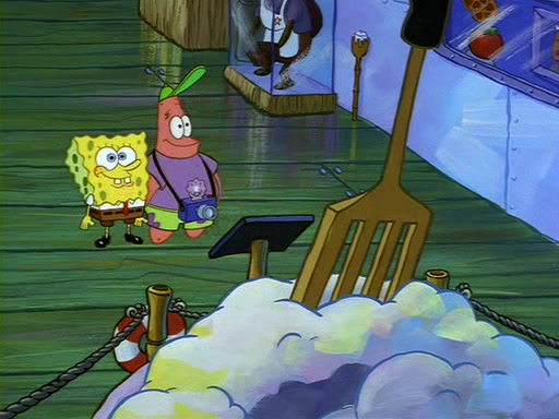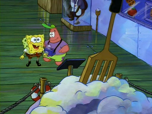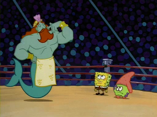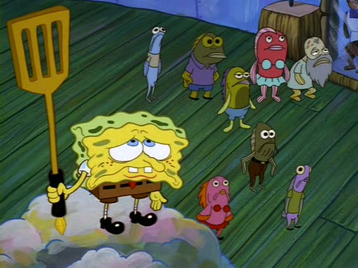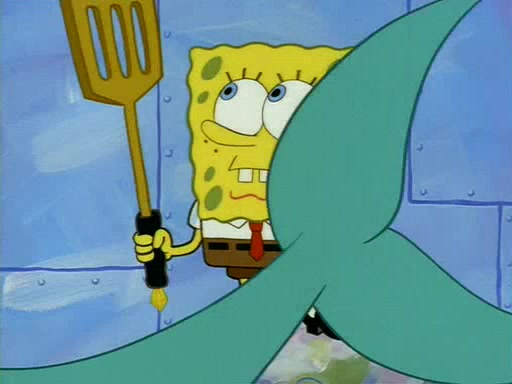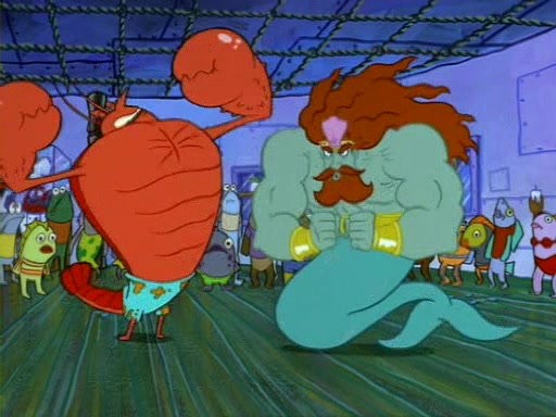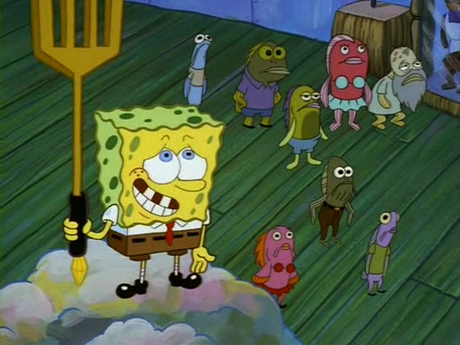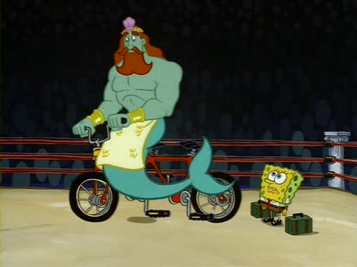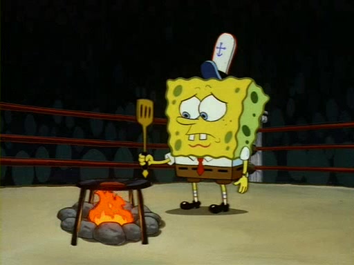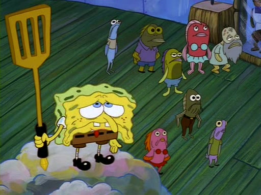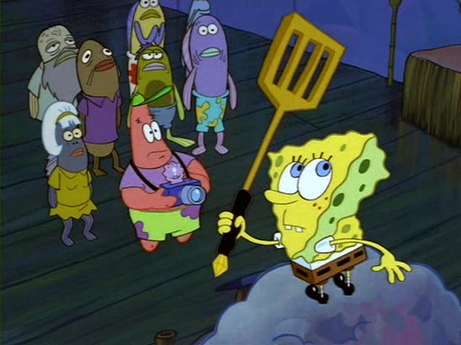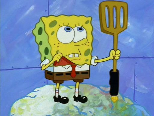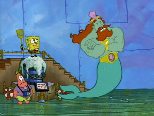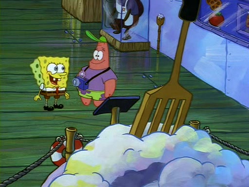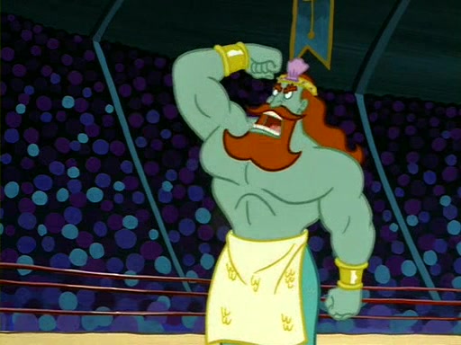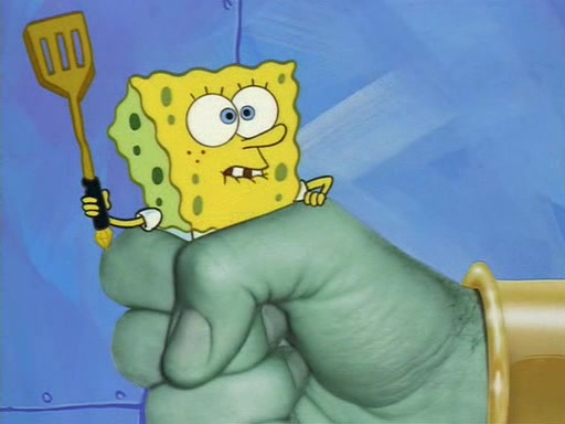 SpongeBob and Patrick are visiting the Fry Cook Museum, where they see a greasy griddle with a golden spatula embedded in the grease. On it is a plaque, which says "Many have tried to pull this spatula out of this ancient grease, but all have failed. Larry the Lobster then attempted to pull it out but failed, SpongeBob then read, only a fry cook who's worthy of King Neptune himself can wield the golden spatula." SpongeBob, while posing for a photo, accidentally and effortlessly pulls it out, and King Neptune appears. He asks who pulled out the spatula, and everyone says SpongeBob. King Neptune refuses to believe this, and asks for proof. Patrick shows him the photograph he took, but Neptune still refuses to allow such a lowly being as SpongeBob to become the royal fry cook. He challenges SpongeBob to a patty-making competition. If SpongeBob wins, he will stay at Atlantis forever and become a god. If he loses, he has to give up fry-cooking forever. Patrick continually jeers to Neptune about SpongeBob's skills, and says that he could complete up to 500 challenges. He is repeatedly zapped by Neptune 3 times, until all that is left of him is a burnt mark on the floor. SpongeBob asks Neptune to revive Patrick, which he does (but with Patrick's face now on his butt). Neptune tried to show SpongeBob the Poseidome, but it shows Tom Kenny showering. In the Poseidome, King Neptune makes 1000 burgers, in the time it takes SpongeBob to make just one, winning the challenge. However, when Neptune shares his patties with the audience, they find that they taste awful. Neptune is angered by this, and asks why they would think that SpongeBob's would be any better. He tastes SpongeBob's patty, and finds it to be delicious. Neptune releases the Krabby Patty back to his stomach and re-eats it again and the audience is disgusted. SpongeBob is declared the winner, but when he finds out that his friends cannot come with him to Atlantis, he refuses to go, and instead arranges for King Neptune to be a trainee under SpongeBob at the Krusty Krab, teaching him that perfect Krabby Patties are made from love, not magic.