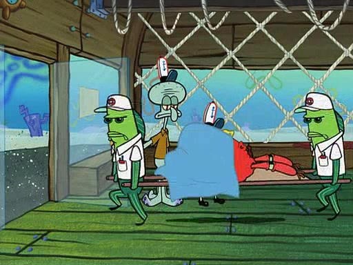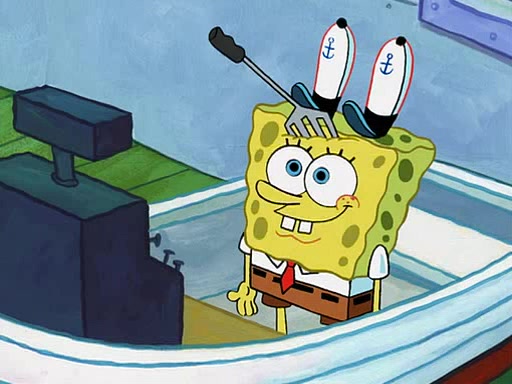 He gets taken away to the hospital, leaving Squidward in charge. Squidward decides to take the day off and leave SpongeBob in charge of the grill and the cash register. As he's walking home, he remembers that he forgot to tell SpongeBob how to make change and that he could bankrupt the establishment. He goes to the Krusty Krab to test SpongeBob's ability to make change (for a dollar, in this case). SpongeBob passes the test.