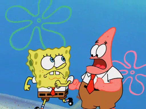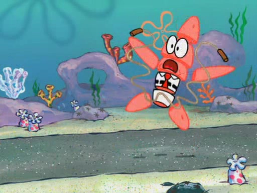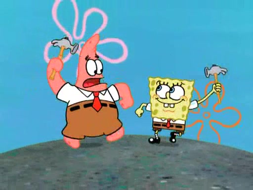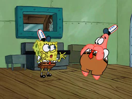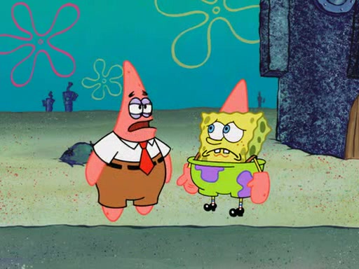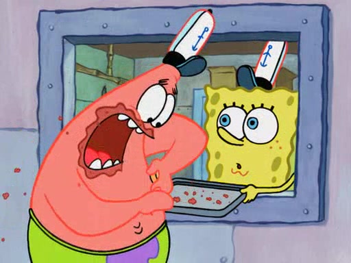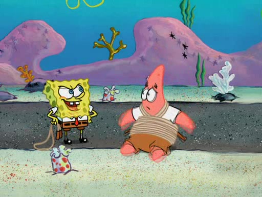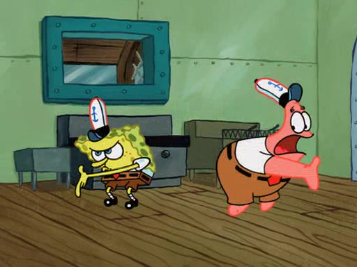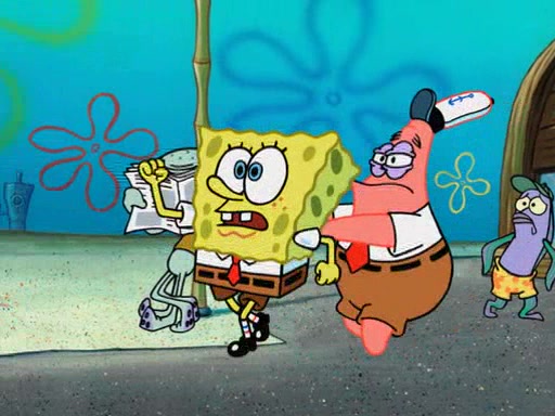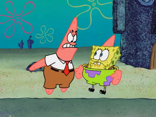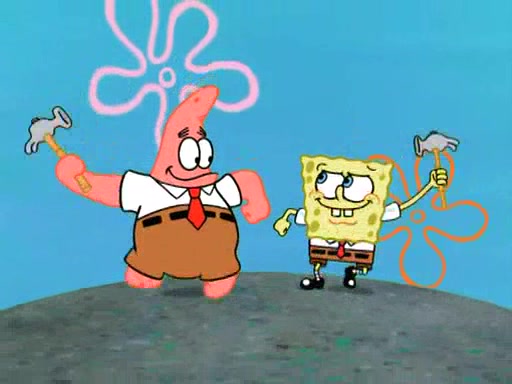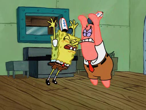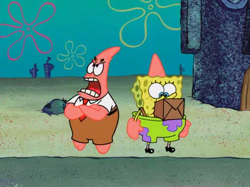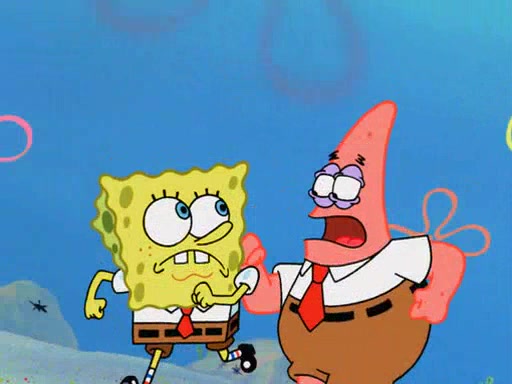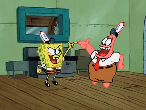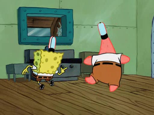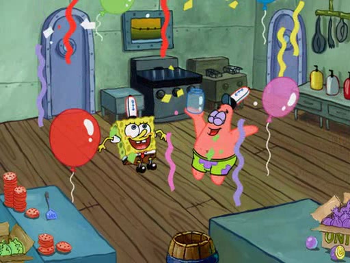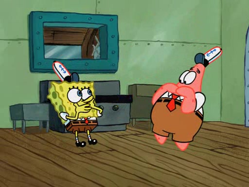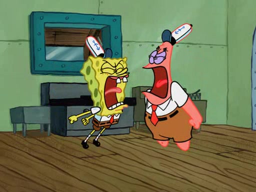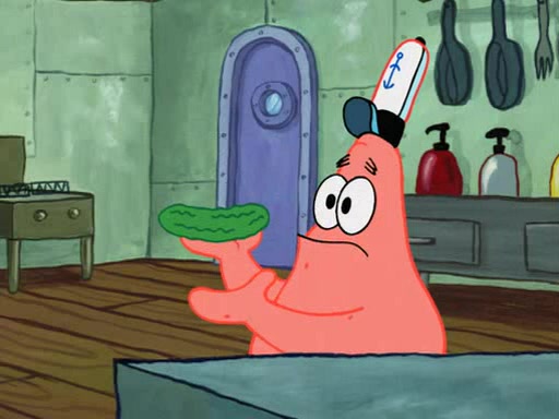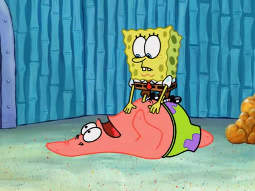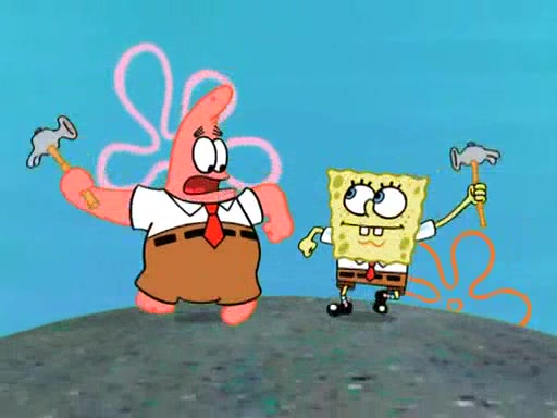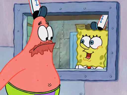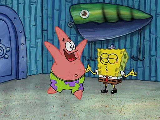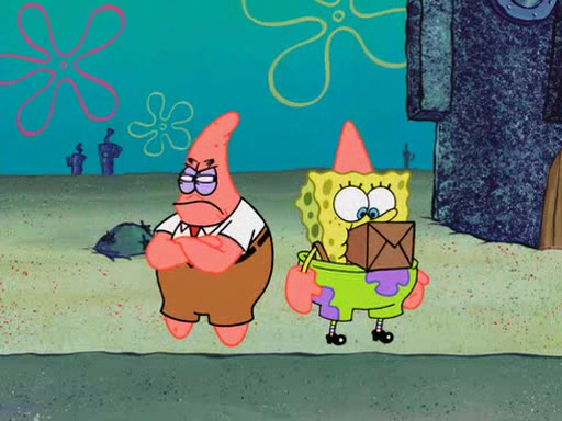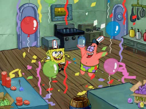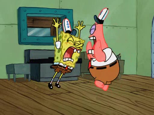 SpongeBob presents him with the extremely basic task of opening a jar. But Patrick keeps taking out the wrong thing, putting the jar in his mouth, and placing his hand wrong. SpongeBob tells him to do it exactly as he does, which gives Patrick an idea. He opens the jar, then bursts into tears, thinking that he broke it. SpongeBob shouts out that Patrick succeeded in opening the jar, and he and SpongeBob begin celebrating.