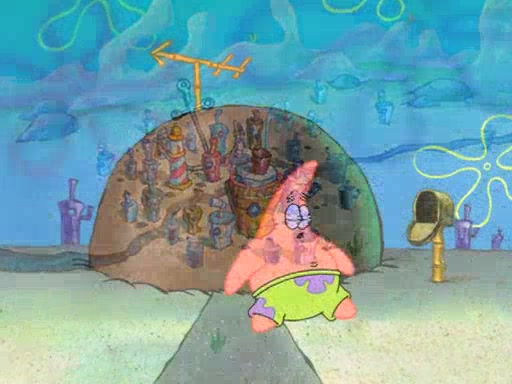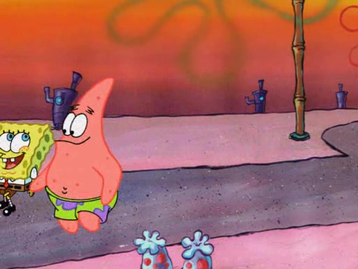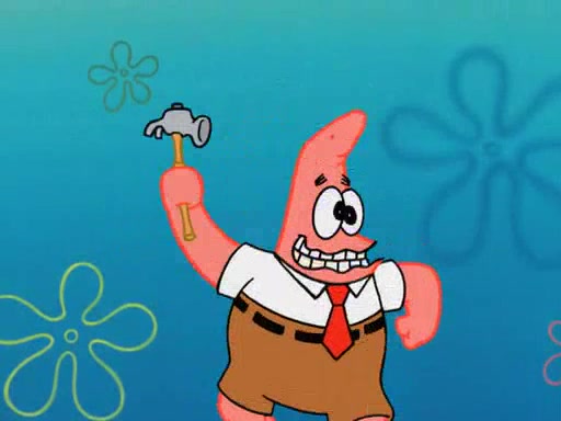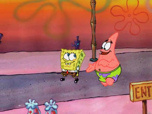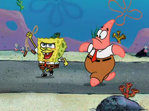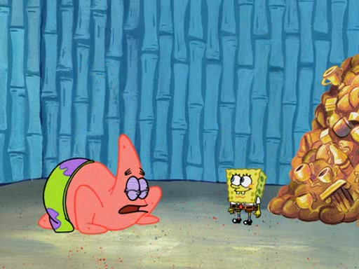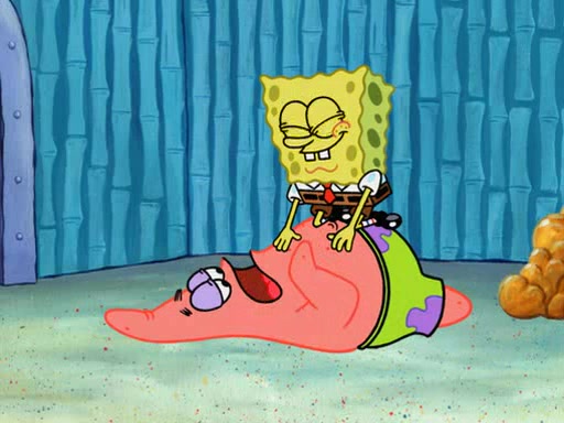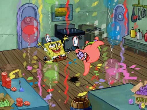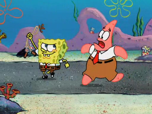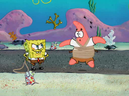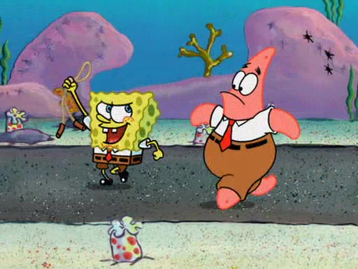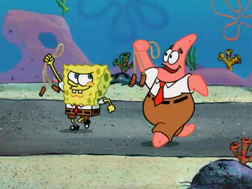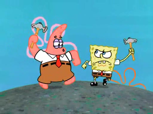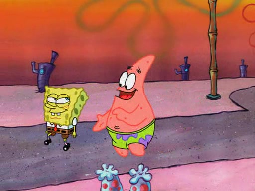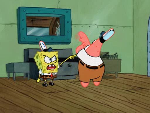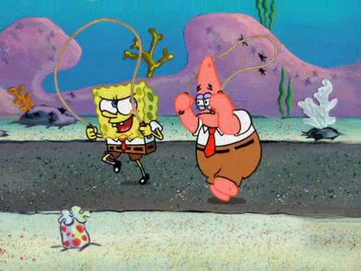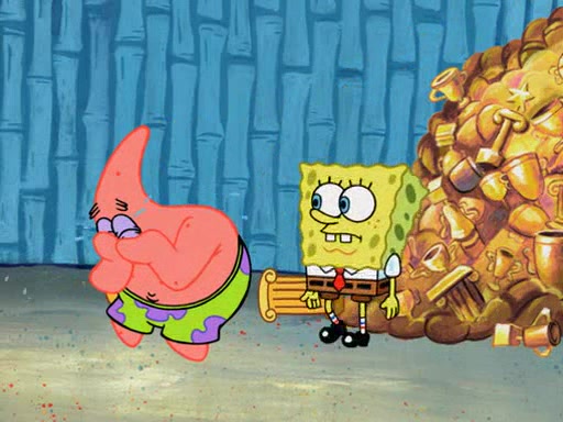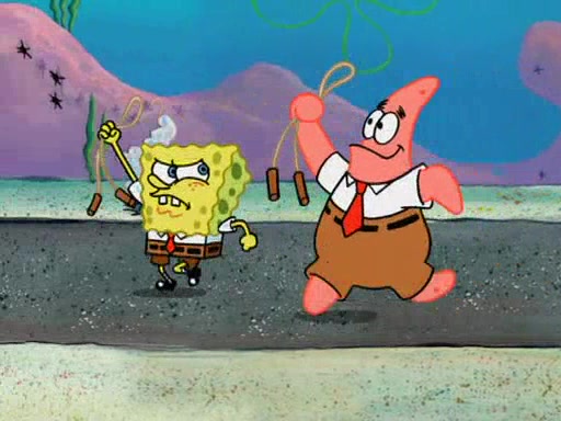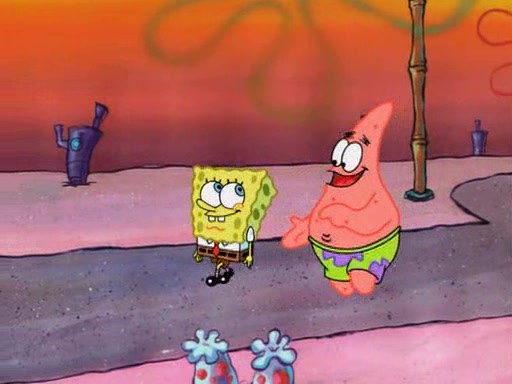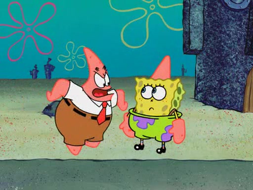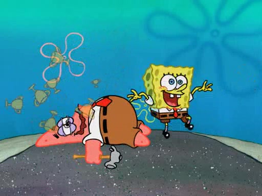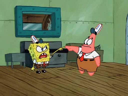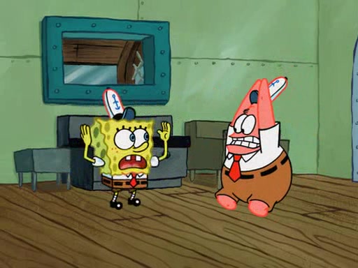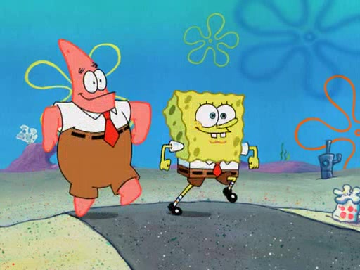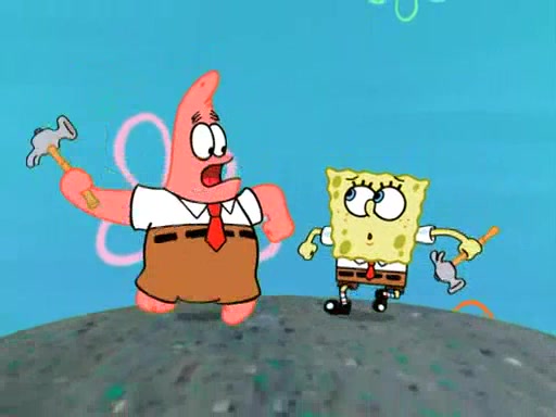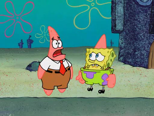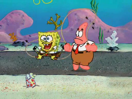 SpongeBob presents him with the extremely basic task of opening a jar. But Patrick keeps taking out the wrong thing, putting the jar in his mouth, and placing his hand wrong. SpongeBob tells him to do it exactly as he does, which gives Patrick an idea. He opens the jar, then bursts into tears, thinking that he broke it. SpongeBob shouts out that Patrick succeeded in opening the jar, and he and SpongeBob begin celebrating.