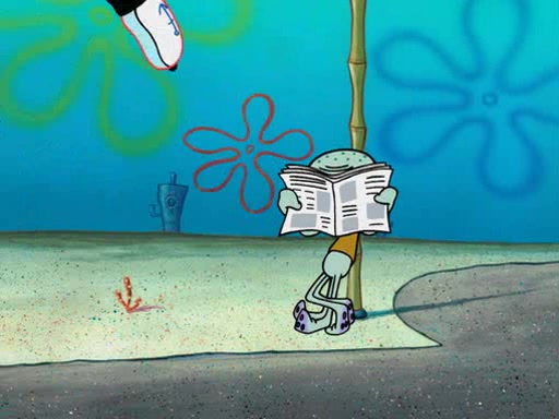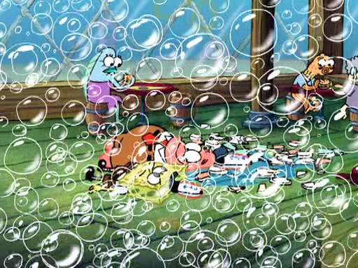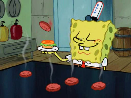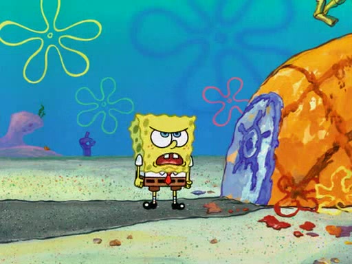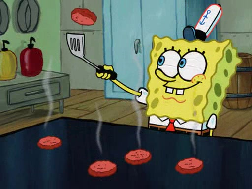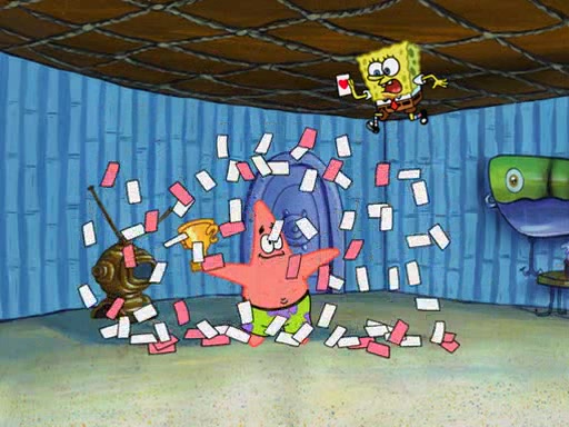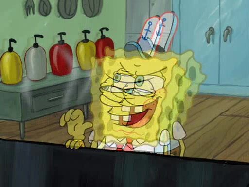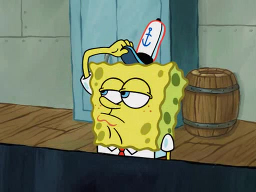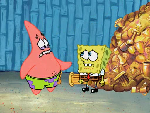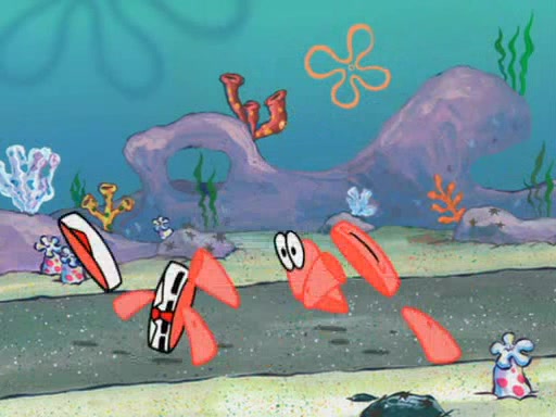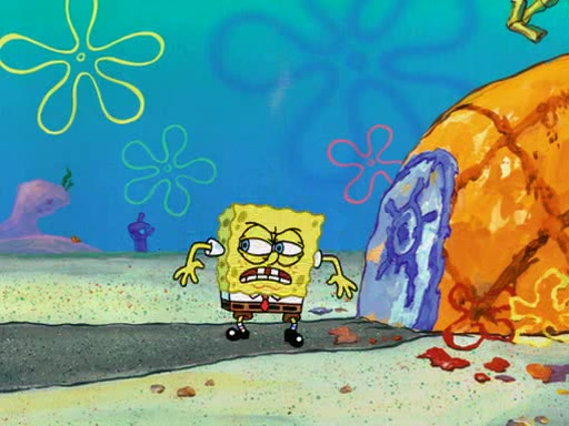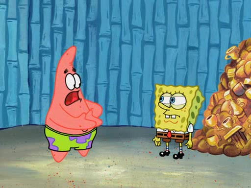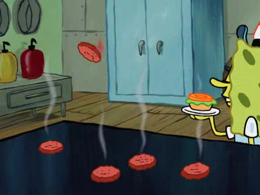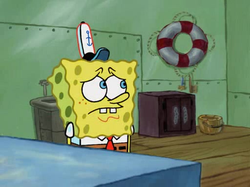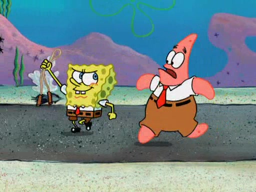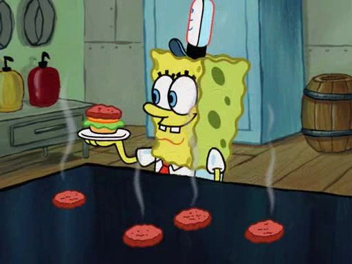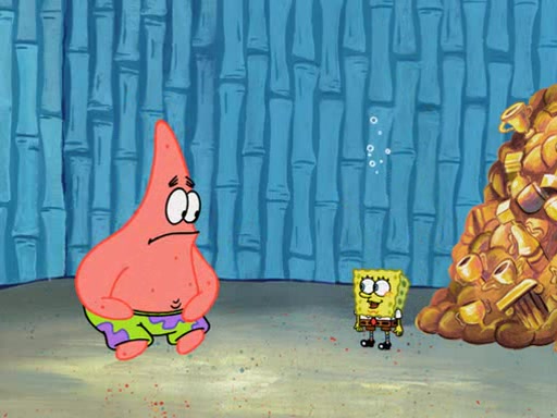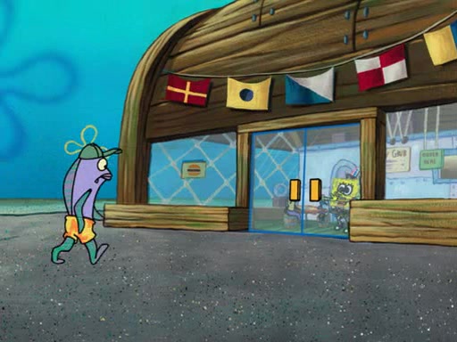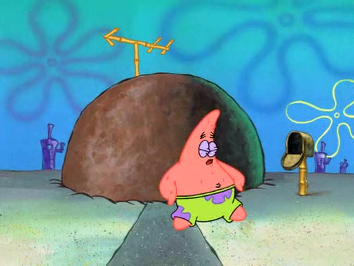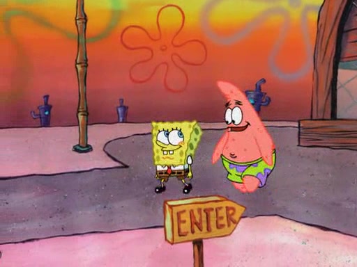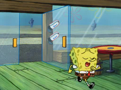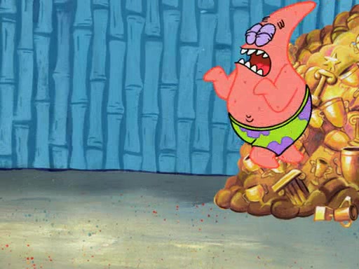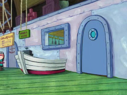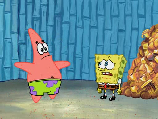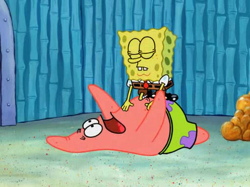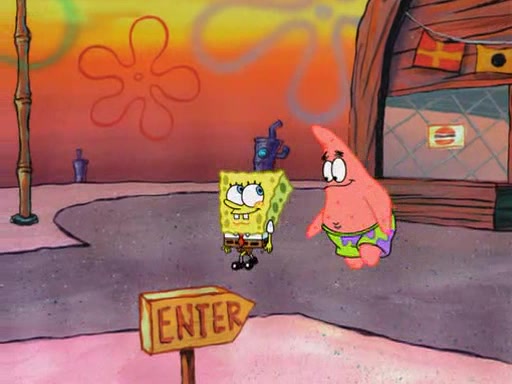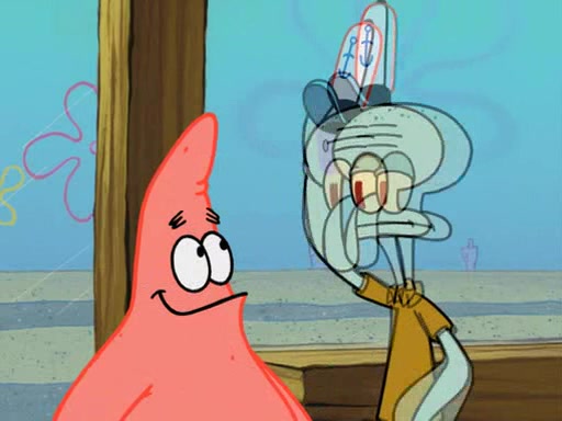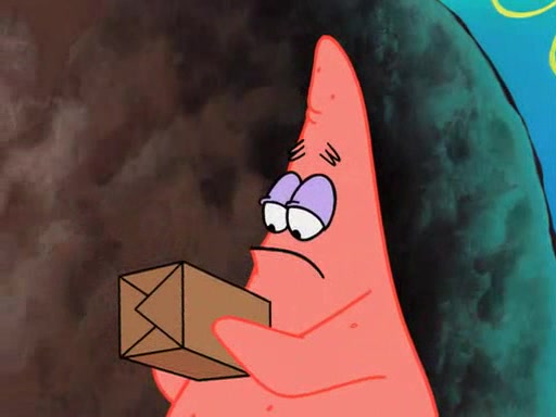 First Patrick has to deliver some food to a customer; however, he keeps eating the customer's order, so SpongeBob gives him an explanation on how to do it right. Then he starts answering the phone, but ends up getting really angry when he thinks everyone is calling him the Krusty Krab. SpongeBob tells him that's the name of the restaurant, leaving Patrick ashamed. His next task is to sweep the floor near table 3. Patrick states he can't do anything right, but SpongeBob assures him that he'll do fine. Unfortunately, he sweeps the floor with the top part of the broom. Suddenly, a delivery man comes in, saying he has a load of awards for SpongeBob SquarePants. Patrick is so angry that he hits the floor with the broom making dust fly everywhere, making everyone cough. SpongeBob then pushes Patrick into the kitchen.