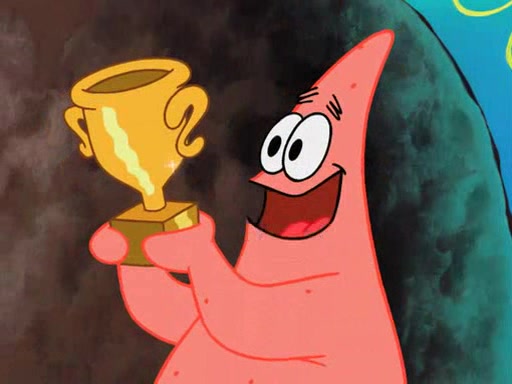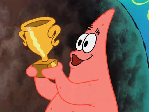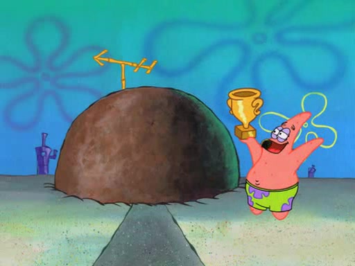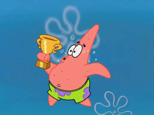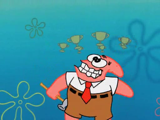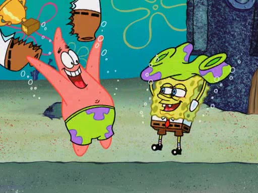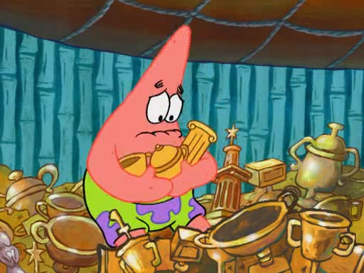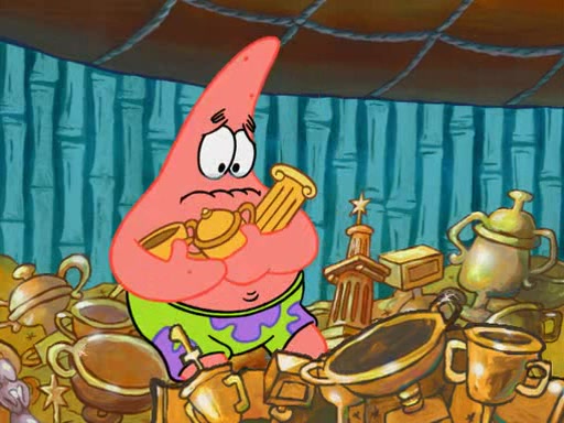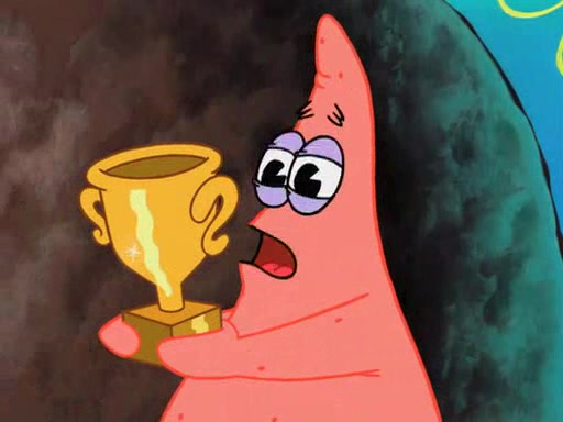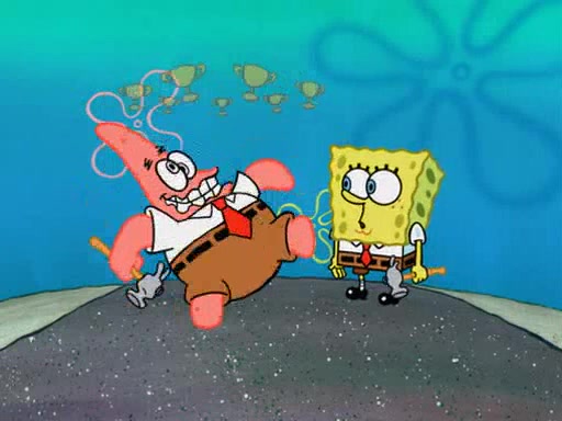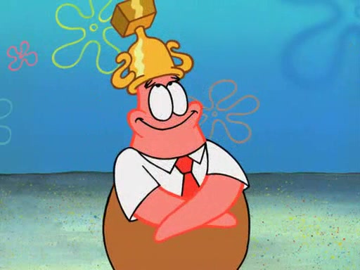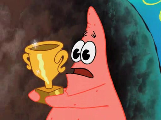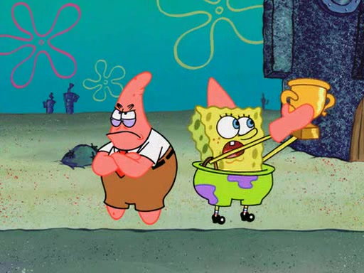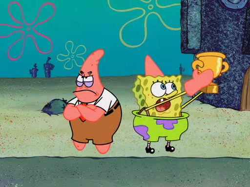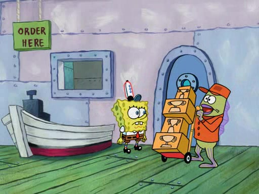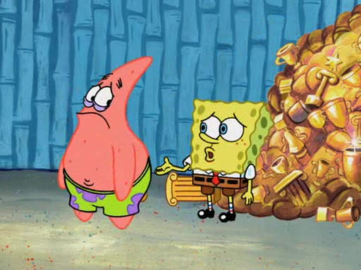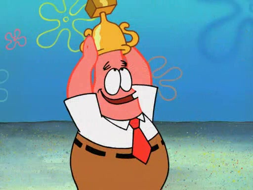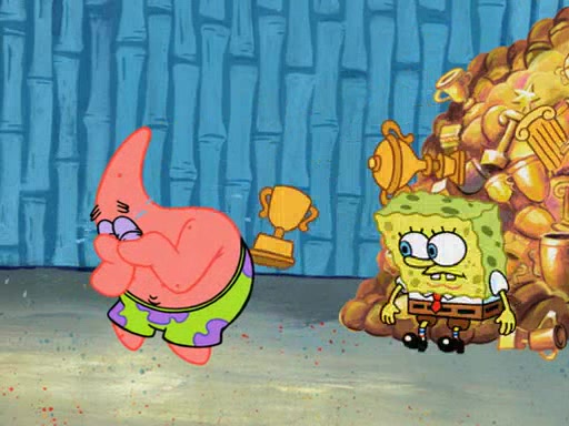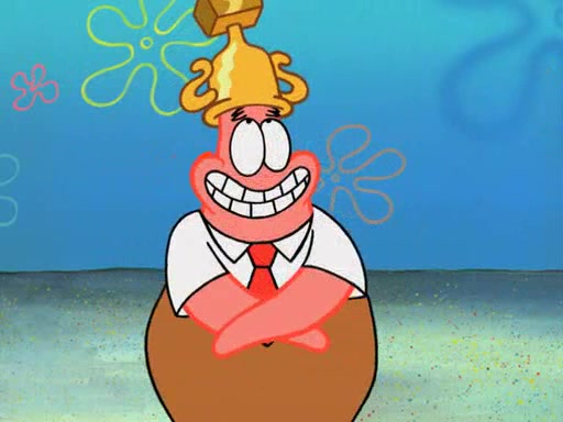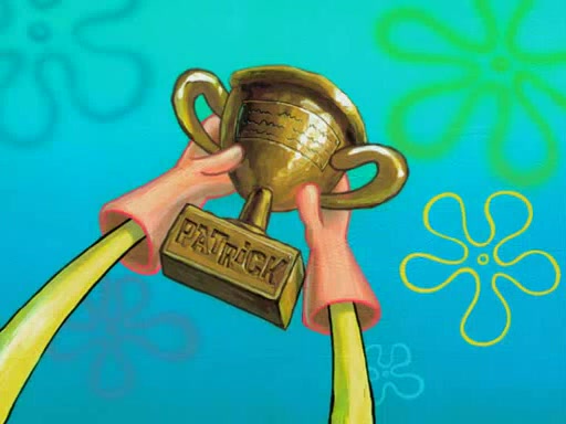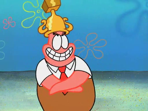 As Patrick wakes up, a mailfish gives him a package. Curious, he then opens it, and finds a trophy inside. Excited, he starts showing everyone that he has a trophy (even the jellyfish and Bikini Atoll). He shows SpongeBob, who then realizes that the trophy is actually for him. Patrick is disappointed, even more so when he sees the contents of SpongeBob's special award closet. SpongeBob tries to help him find a way to win an award, and eventually Patrick decides to get a job at the Krusty Krab.