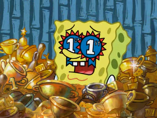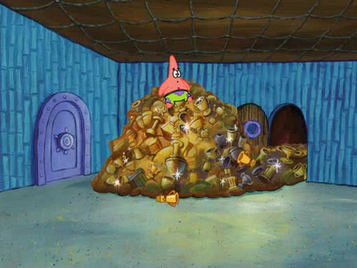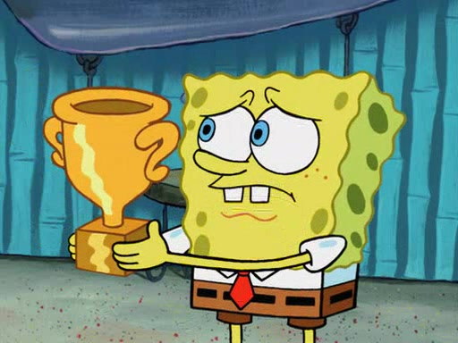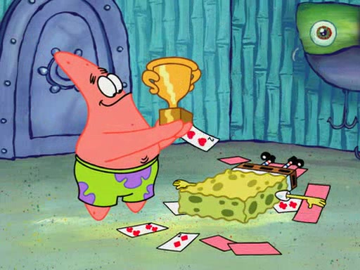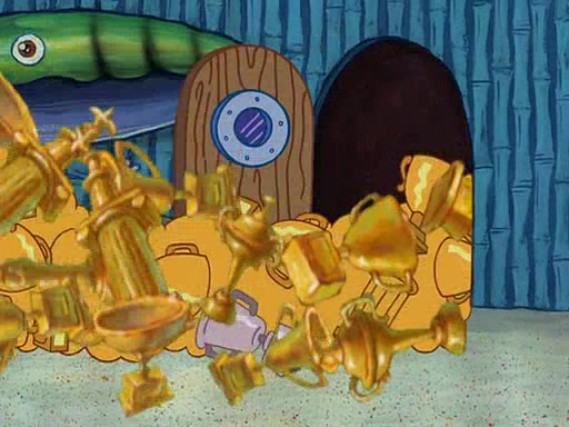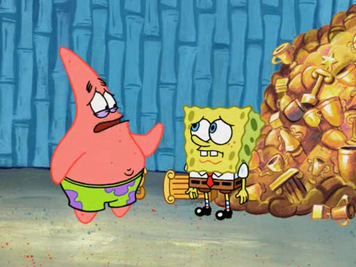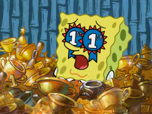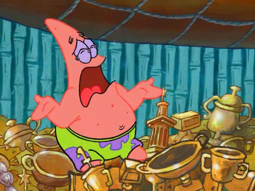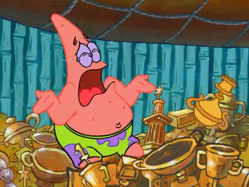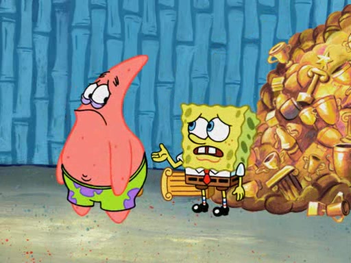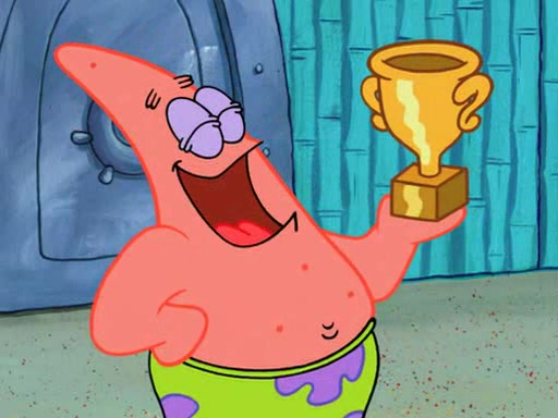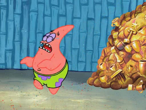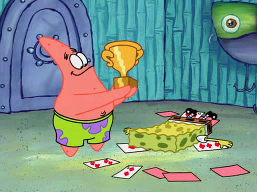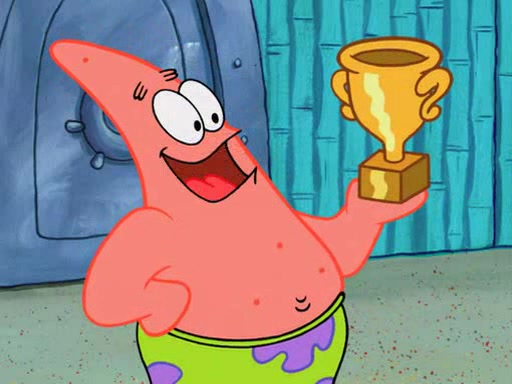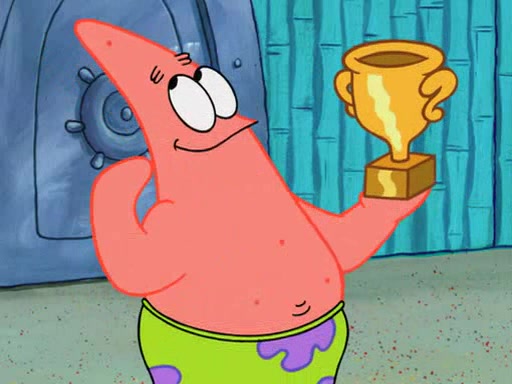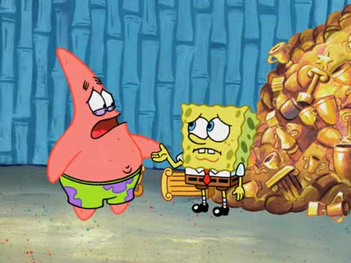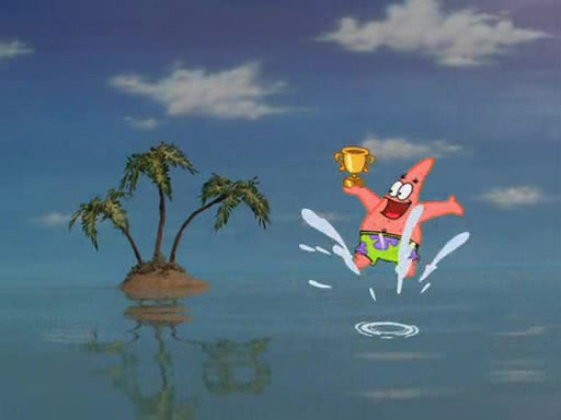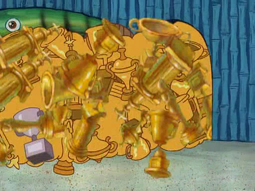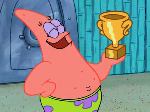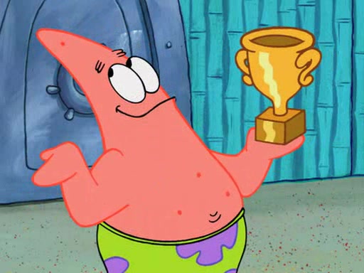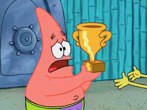 As Patrick wakes up, a mailfish gives him a package. Curious, he then opens it, and finds a trophy inside. Excited, he starts showing everyone that he has a trophy (even the jellyfish and Bikini Atoll). He shows SpongeBob, who then realizes that the trophy is actually for him. Patrick is disappointed, even more so when he sees the contents of SpongeBob's special award closet. SpongeBob tries to help him find a way to win an award, and eventually Patrick decides to get a job at the Krusty Krab.