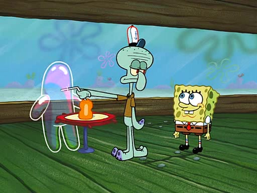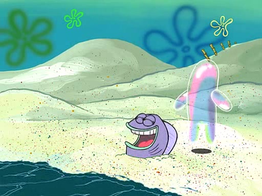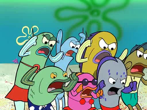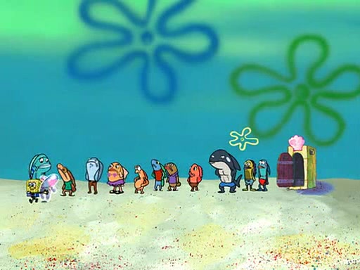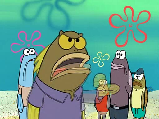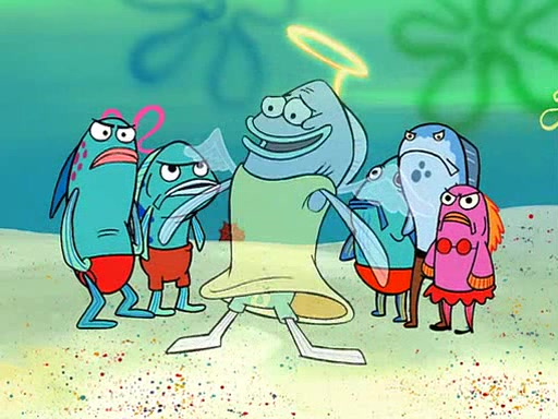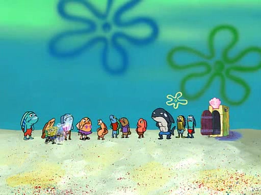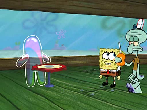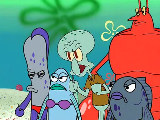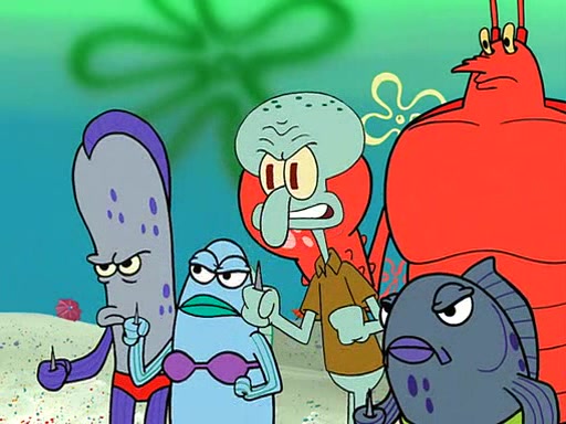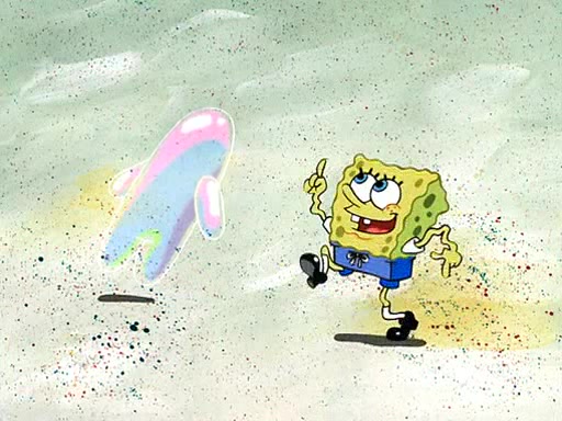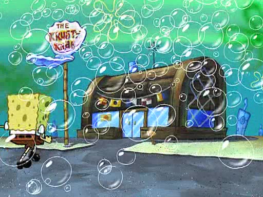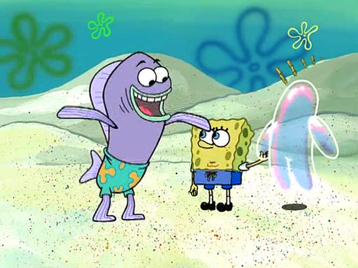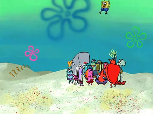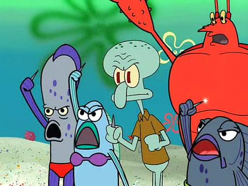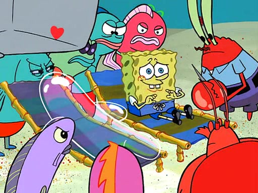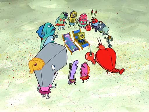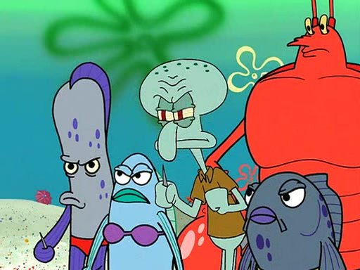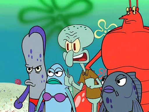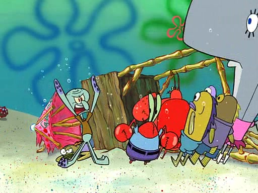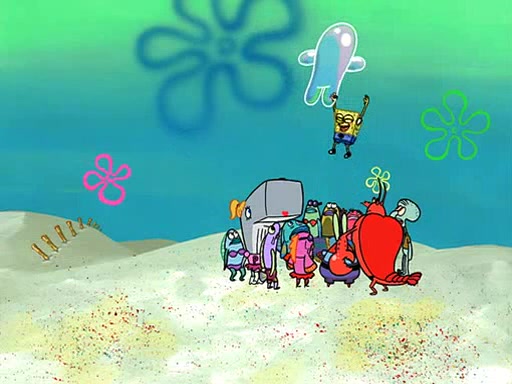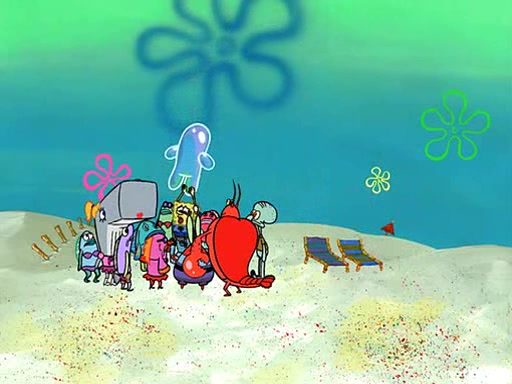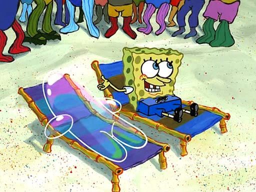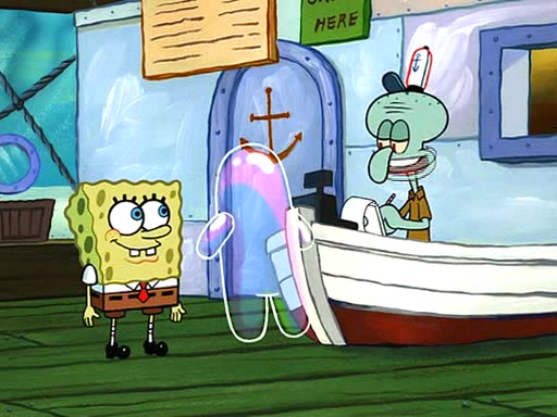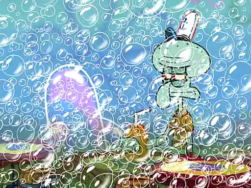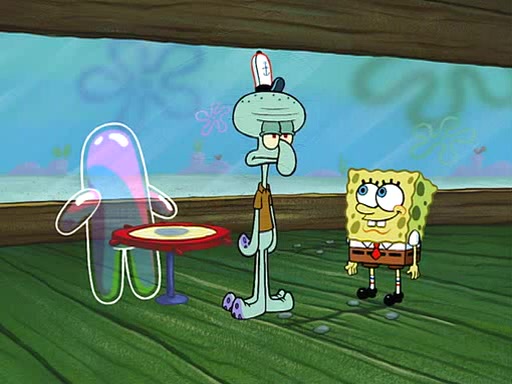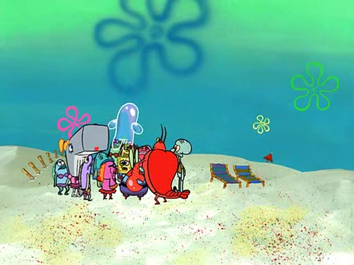 SpongeBob and Bubble Buddy then go to the Goo Lagoon, where they continue to cause trouble, even resulting in the demise of one fish. Eventually, the Bikini Bottomites become fed up with Bubble Buddy and begin to riot, even tipping over the lifeguard tower. Squidward steps in and blames SpongeBob and the bubble he has created, causing the mob to direct their efforts towards popping Bubble Buddy. They surround SpongeBob and Bubble Buddy, brandishing sewing needles. SpongeBob tries to inform the crowd that Bubble Buddy is uncomfortable around their pointy needles, but they tell him that they are done with Bubble Buddy. SpongeBob tries to escape by inflating Bubble Buddy, but he flies weakly back into the crowd's grasp. SpongeBob says Bubble Buddy is his special friend and tries to ask if they ever had a special friend. Although some do reveal that they do have a special friend, it isn't enough to change their mind. So they throw SpongeBob out of the way. Squidward begins to stab Bubble Buddy, but he suddenly comes to life and catches the needle before it reaches him, much to the shock of Squidward and the other crowd members. Bubble Buddy then tells SpongeBob that "things are getting a little weird around here," and leaves in a bubble taxi, flipping into the sky, wishing SpongeBob a Happy Leif Erikson Day. Everyone appears to be OK with Bubble Buddy leaving Bikini Bottom except Squidward who is still shocked at what happened. The rest of the crowd then leave to go on with their regular lives and SpongeBob happily cries that people grow up so fast before leaving in a flurry of bubbles. All but one of them pop, and Squidward greets it.