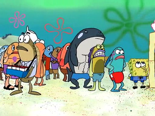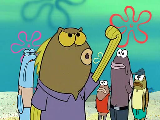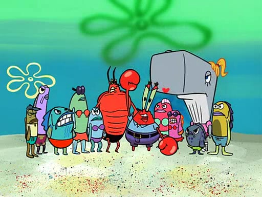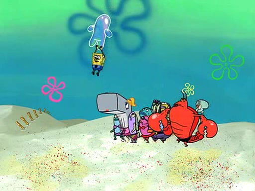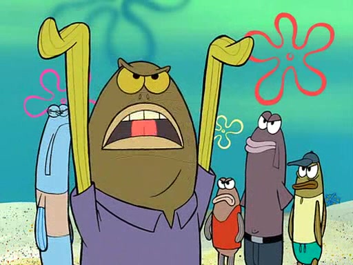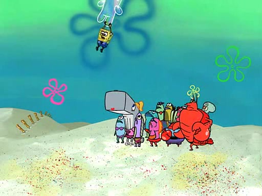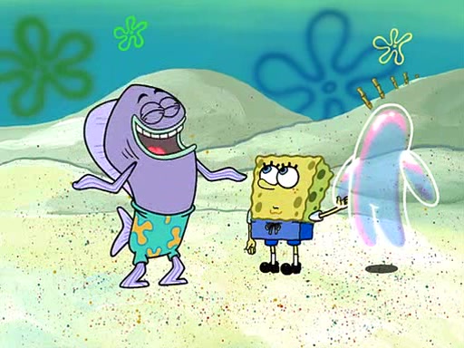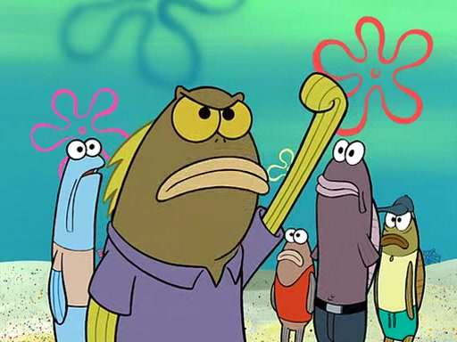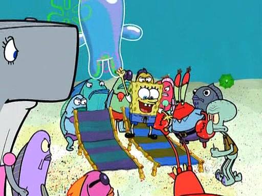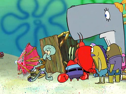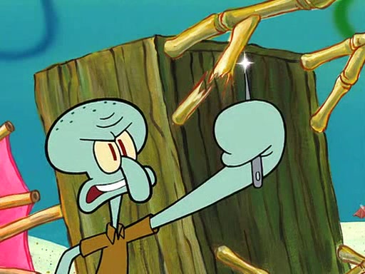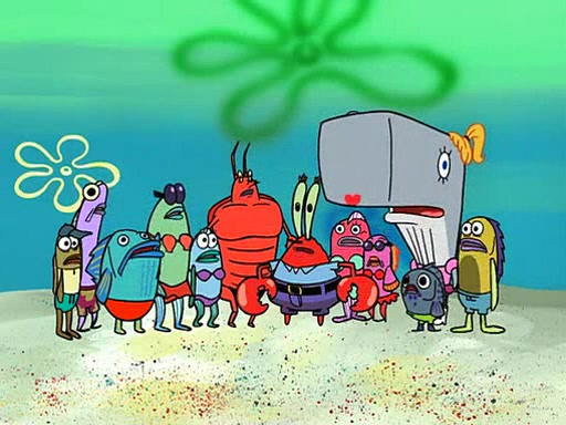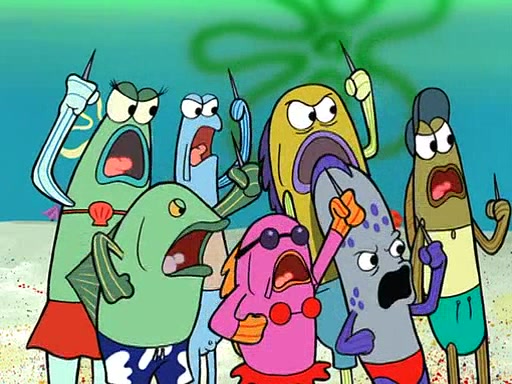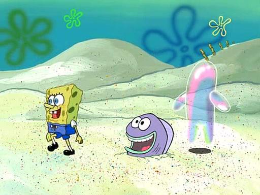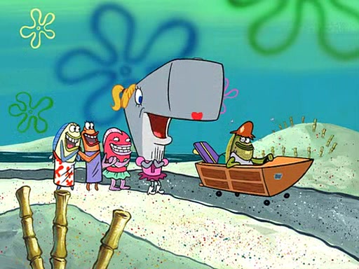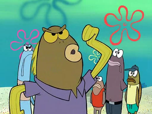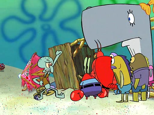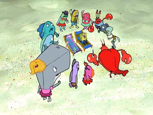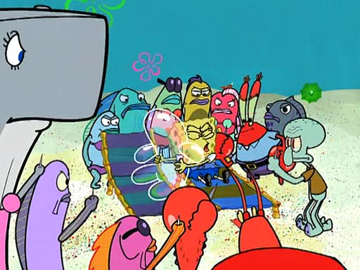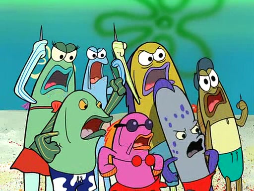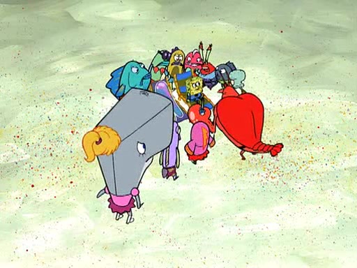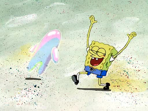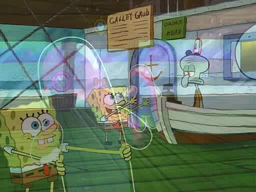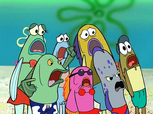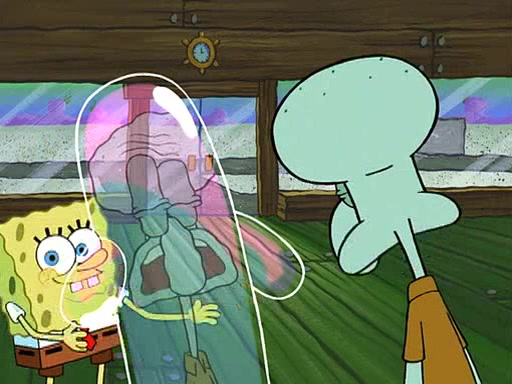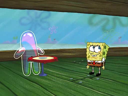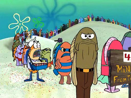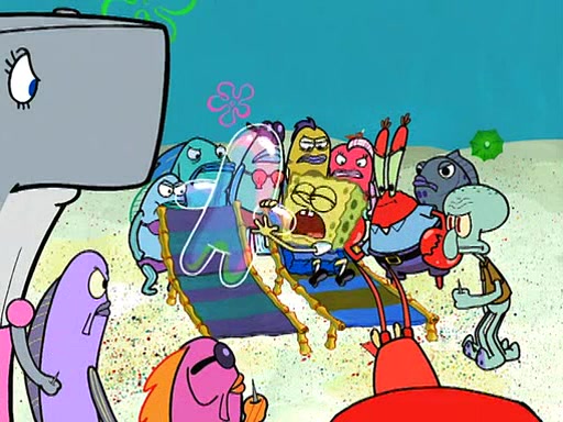 SpongeBob and Bubble Buddy then go to the Goo Lagoon, where they continue to cause trouble, even resulting in the demise of one fish. Eventually, the Bikini Bottomites become fed up with Bubble Buddy and begin to riot, even tipping over the lifeguard tower. Squidward steps in and blames SpongeBob and the bubble he has created, causing the mob to direct their efforts towards popping Bubble Buddy. They surround SpongeBob and Bubble Buddy, brandishing sewing needles. SpongeBob tries to inform the crowd that Bubble Buddy is uncomfortable around their pointy needles, but they tell him that they are done with Bubble Buddy. SpongeBob tries to escape by inflating Bubble Buddy, but he flies weakly back into the crowd's grasp. SpongeBob says Bubble Buddy is his special friend and tries to ask if they ever had a special friend. Although some do reveal that they do have a special friend, it isn't enough to change their mind. So they throw SpongeBob out of the way. Squidward begins to stab Bubble Buddy, but he suddenly comes to life and catches the needle before it reaches him, much to the shock of Squidward and the other crowd members. Bubble Buddy then tells SpongeBob that "things are getting a little weird around here," and leaves in a bubble taxi, flipping into the sky, wishing SpongeBob a Happy Leif Erikson Day. Everyone appears to be OK with Bubble Buddy leaving Bikini Bottom except Squidward who is still shocked at what happened. The rest of the crowd then leave to go on with their regular lives and SpongeBob happily cries that people grow up so fast before leaving in a flurry of bubbles. All but one of them pop, and Squidward greets it.