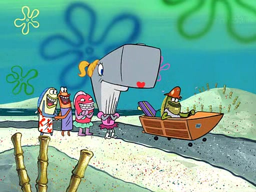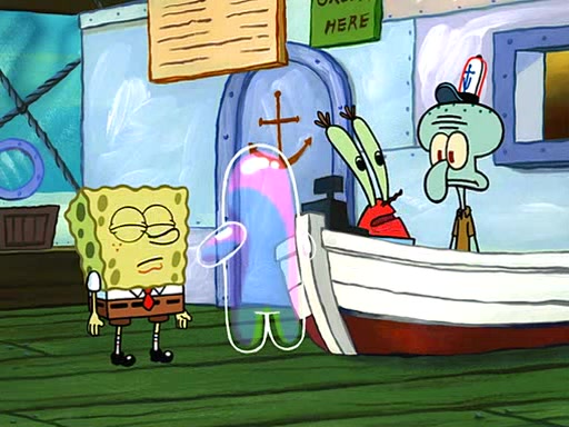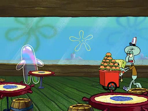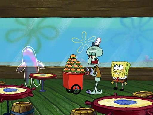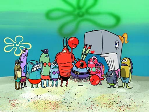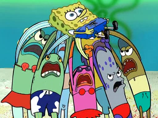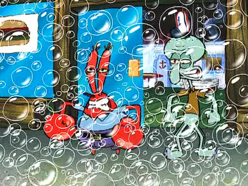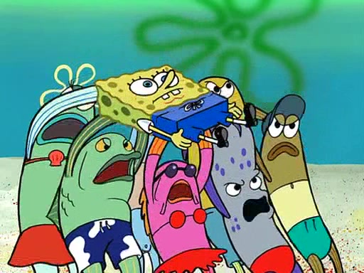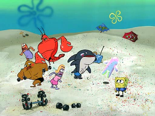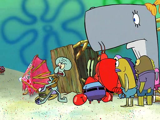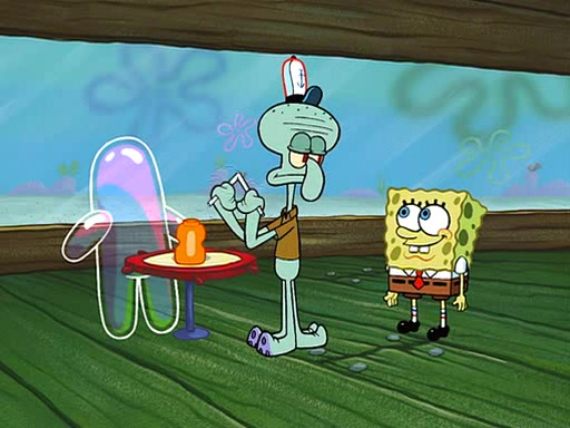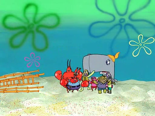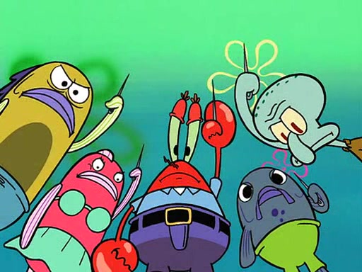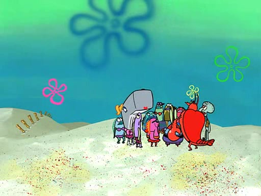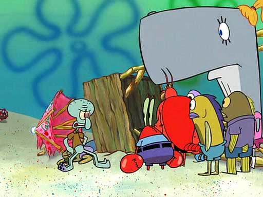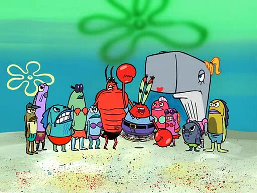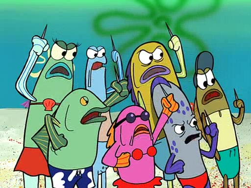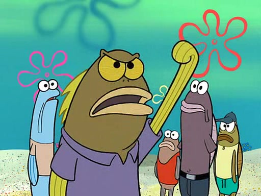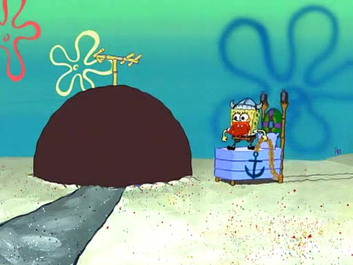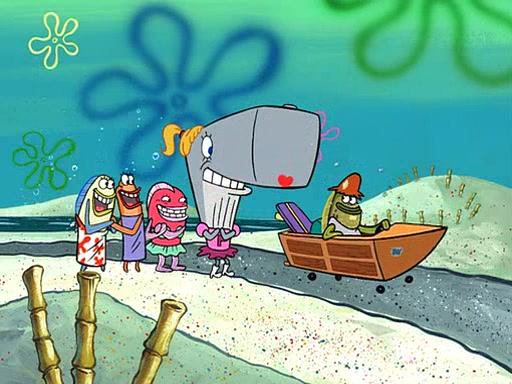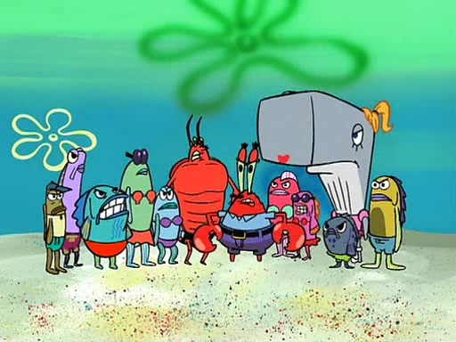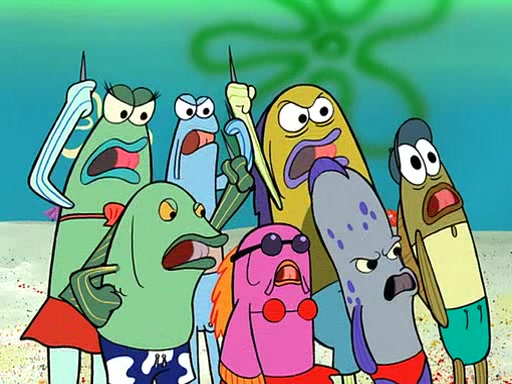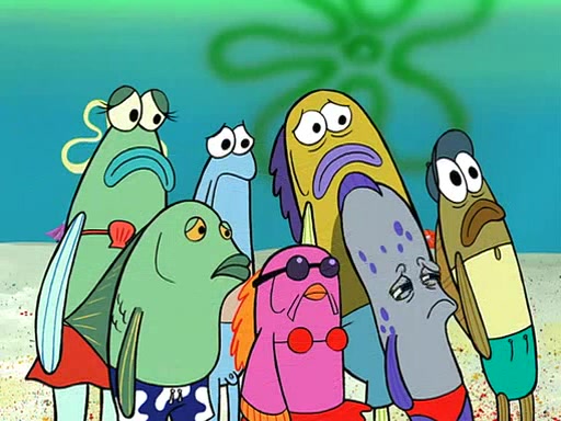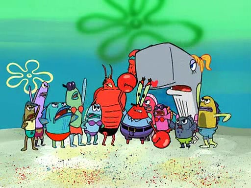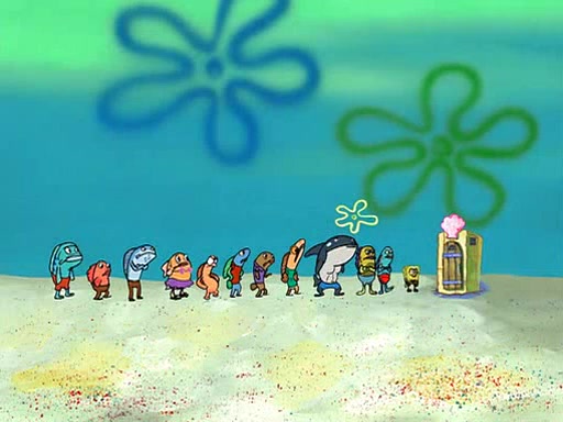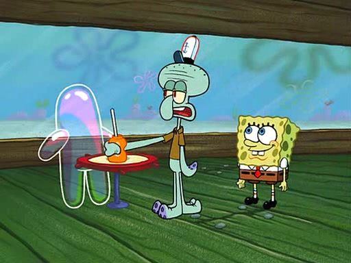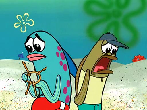 SpongeBob and Bubble Buddy then go to the Goo Lagoon, where they continue to cause trouble, even resulting in the demise of one fish. Eventually, the Bikini Bottomites become fed up with Bubble Buddy and begin to riot, even tipping over the lifeguard tower. Squidward steps in and blames SpongeBob and the bubble he has created, causing the mob to direct their efforts towards popping Bubble Buddy. They surround SpongeBob and Bubble Buddy, brandishing sewing needles. SpongeBob tries to inform the crowd that Bubble Buddy is uncomfortable around their pointy needles, but they tell him that they are done with Bubble Buddy. SpongeBob tries to escape by inflating Bubble Buddy, but he flies weakly back into the crowd's grasp. SpongeBob says Bubble Buddy is his special friend and tries to ask if they ever had a special friend. Although some do reveal that they do have a special friend, it isn't enough to change their mind. So they throw SpongeBob out of the way. Squidward begins to stab Bubble Buddy, but he suddenly comes to life and catches the needle before it reaches him, much to the shock of Squidward and the other crowd members. Bubble Buddy then tells SpongeBob that "things are getting a little weird around here," and leaves in a bubble taxi, flipping into the sky, wishing SpongeBob a Happy Leif Erikson Day. Everyone appears to be OK with Bubble Buddy leaving Bikini Bottom except Squidward who is still shocked at what happened. The rest of the crowd then leave to go on with their regular lives and SpongeBob happily cries that people grow up so fast before leaving in a flurry of bubbles. All but one of them pop, and Squidward greets it.