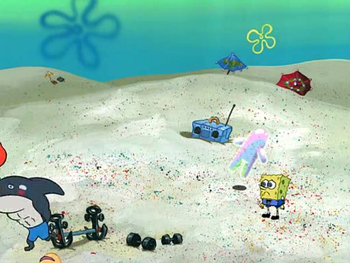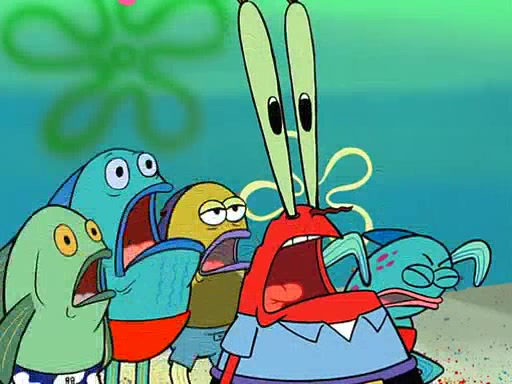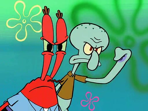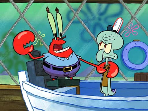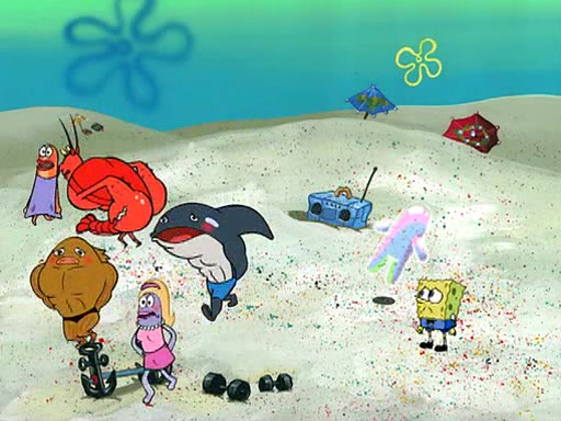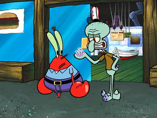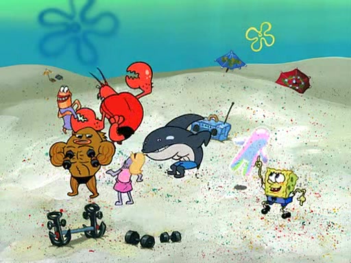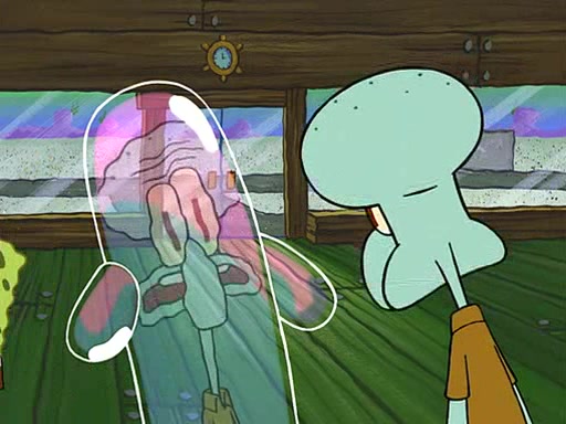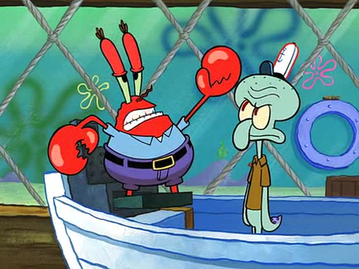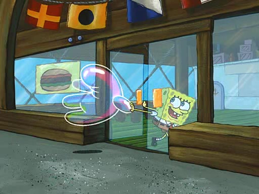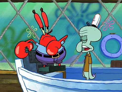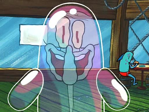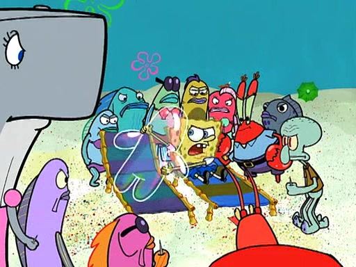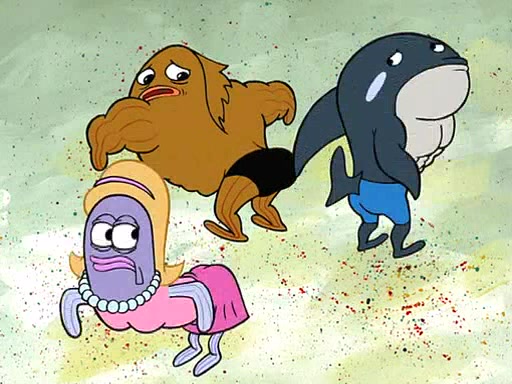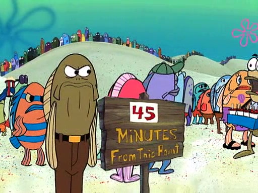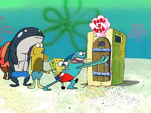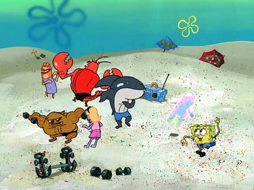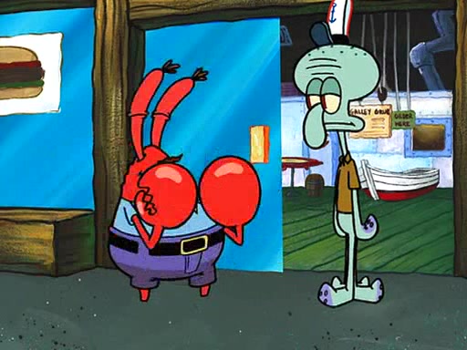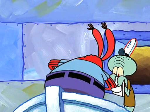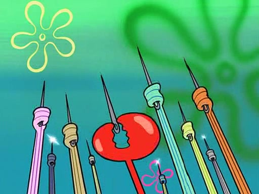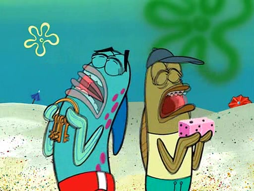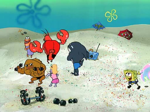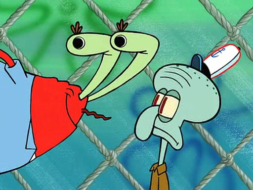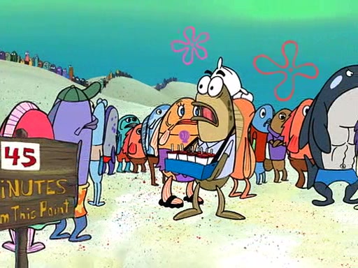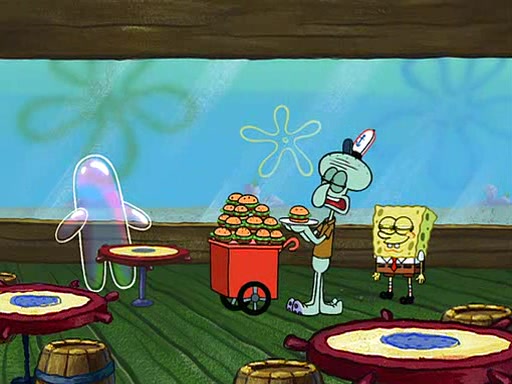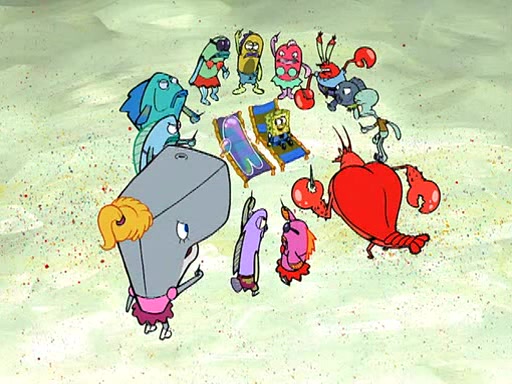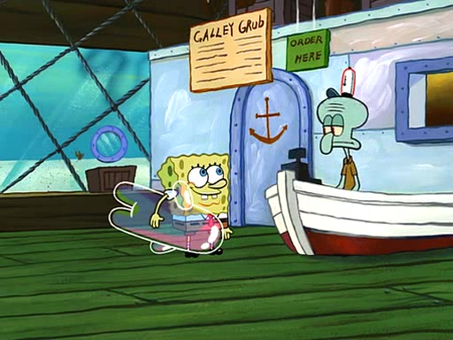 SpongeBob and Bubble Buddy then go to the Goo Lagoon, where they continue to cause trouble, even resulting in the demise of one fish. Eventually, the Bikini Bottomites become fed up with Bubble Buddy and begin to riot, even tipping over the lifeguard tower. Squidward steps in and blames SpongeBob and the bubble he has created, causing the mob to direct their efforts towards popping Bubble Buddy. They surround SpongeBob and Bubble Buddy, brandishing sewing needles. SpongeBob tries to inform the crowd that Bubble Buddy is uncomfortable around their pointy needles, but they tell him that they are done with Bubble Buddy. SpongeBob tries to escape by inflating Bubble Buddy, but he flies weakly back into the crowd's grasp. SpongeBob says Bubble Buddy is his special friend and tries to ask if they ever had a special friend. Although some do reveal that they do have a special friend, it isn't enough to change their mind. So they throw SpongeBob out of the way. Squidward begins to stab Bubble Buddy, but he suddenly comes to life and catches the needle before it reaches him, much to the shock of Squidward and the other crowd members. Bubble Buddy then tells SpongeBob that "things are getting a little weird around here," and leaves in a bubble taxi, flipping into the sky, wishing SpongeBob a Happy Leif Erikson Day. Everyone appears to be OK with Bubble Buddy leaving Bikini Bottom except Squidward who is still shocked at what happened. The rest of the crowd then leave to go on with their regular lives and SpongeBob happily cries that people grow up so fast before leaving in a flurry of bubbles. All but one of them pop, and Squidward greets it.