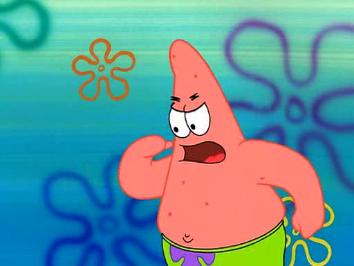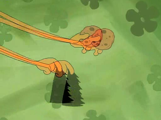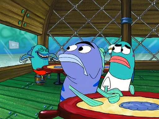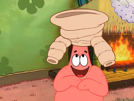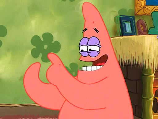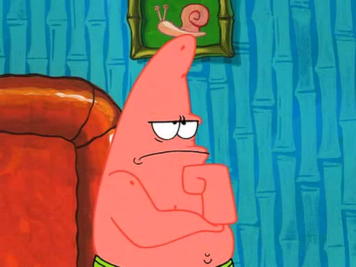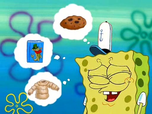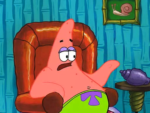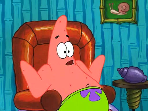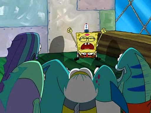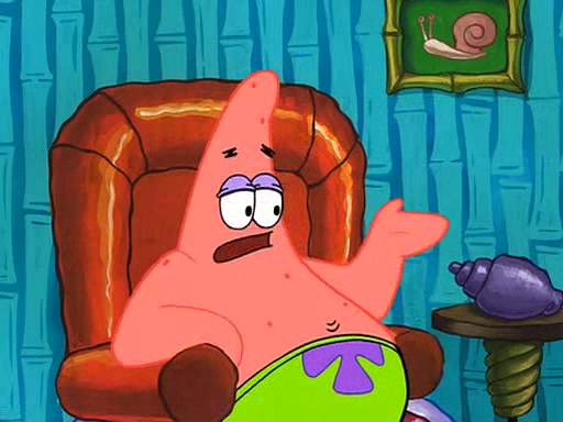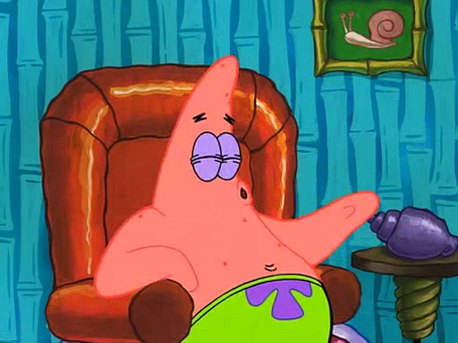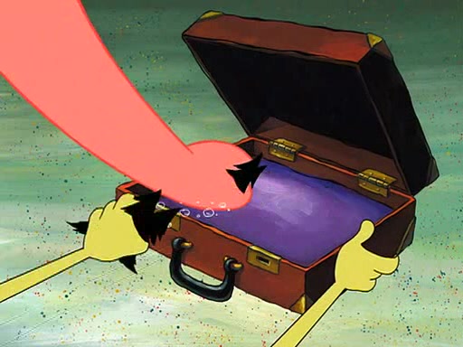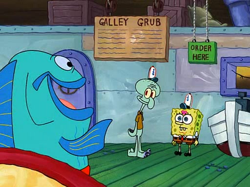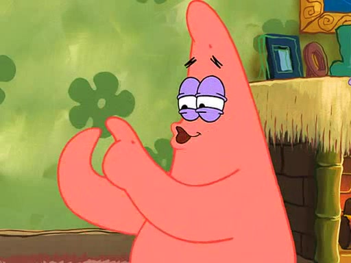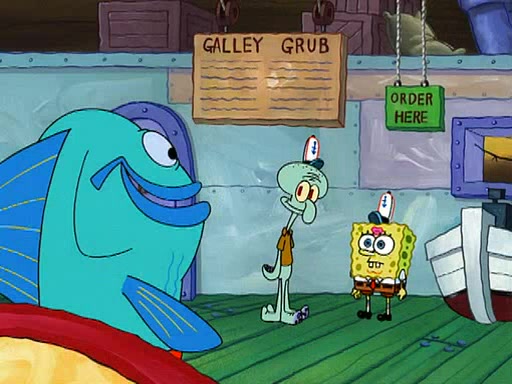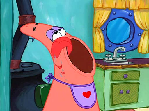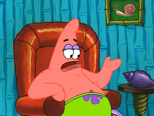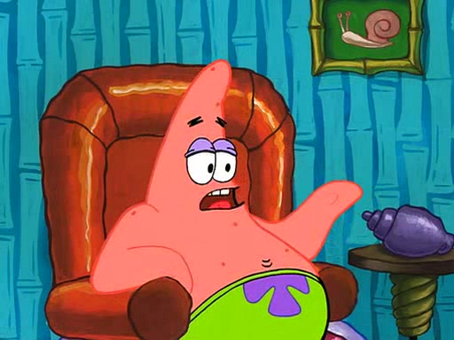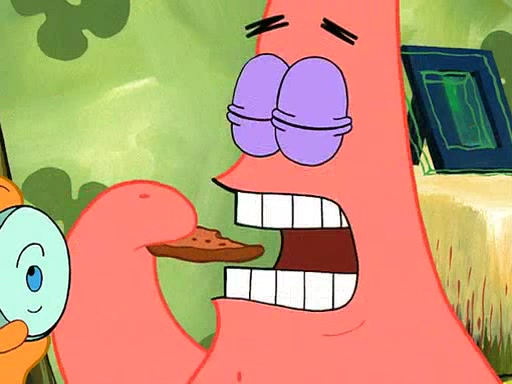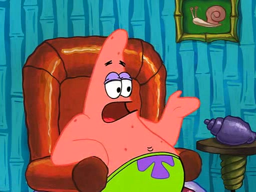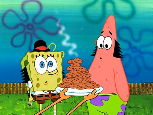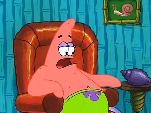 Grandma offers them cookies, which SpongeBob refuses, but Patrick gladly accepts. Patrick begins acting like a baby and when SpongeBob confronts him, he says that being a "grown-up" is boring and that he likes being a baby. SpongeBob attempts to eat a cookie, but Grandma stops him, instead giving him steamed coral from his grandma. Then she tells Patrick a baby story and gives SpongeBob a giant technical manual; later she gives Patrick a sweater "with love in every stitch," and gives SpongeBob unwrapped office supplies. Soon, the clock strikes 3:00 PM., time for SpongeBob to go to work.