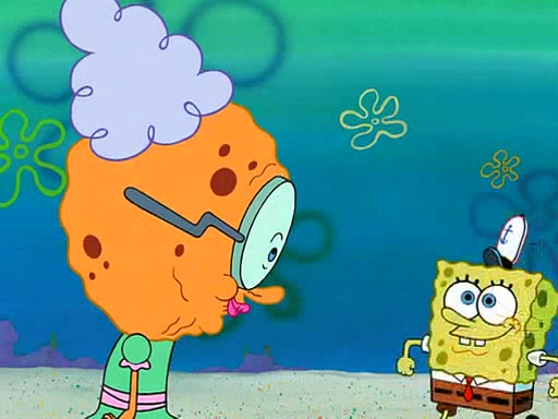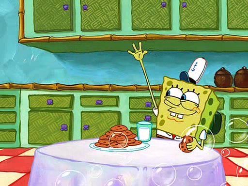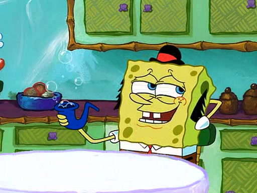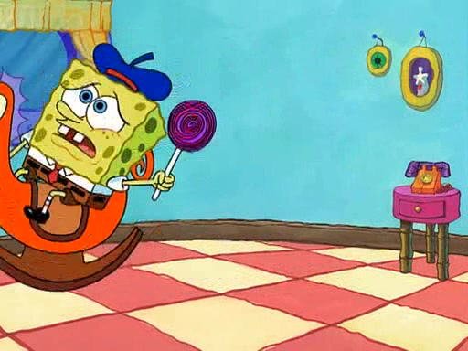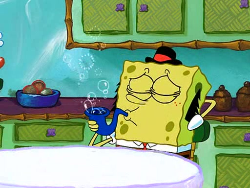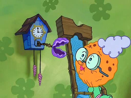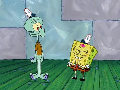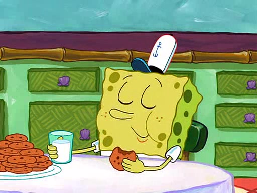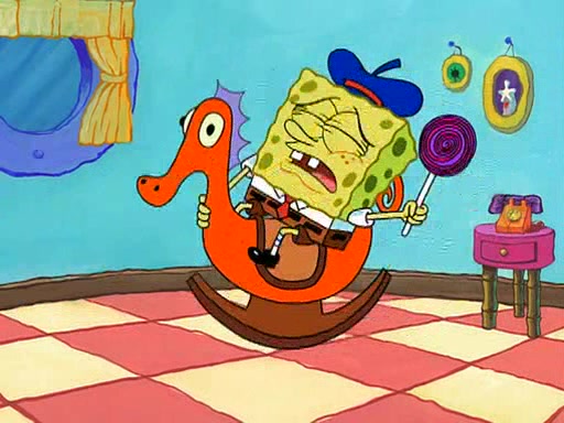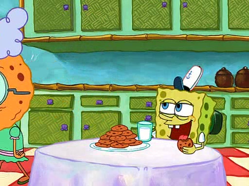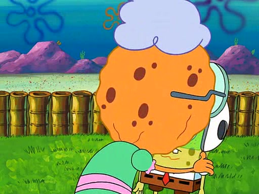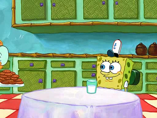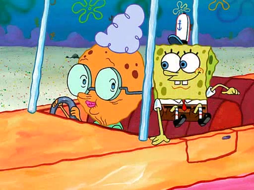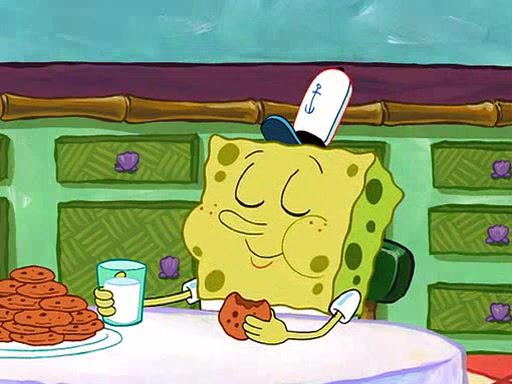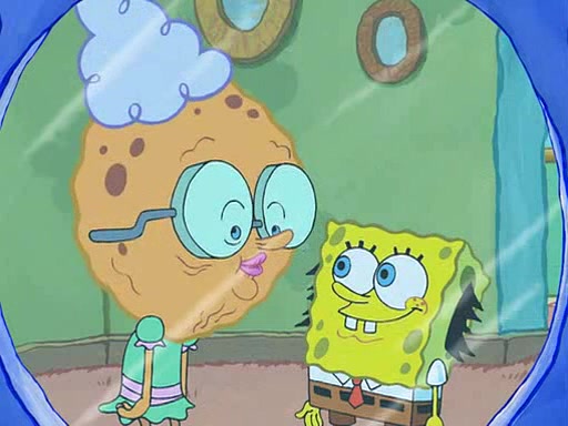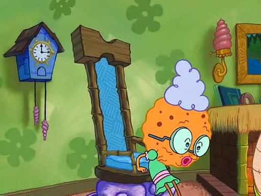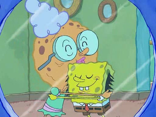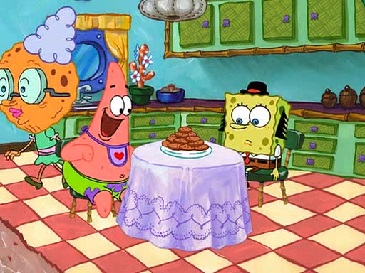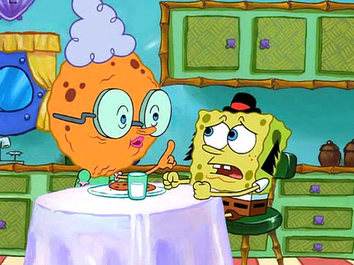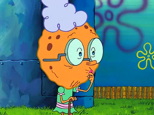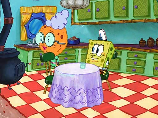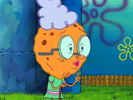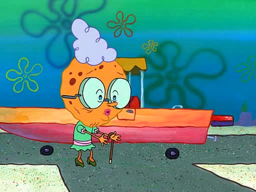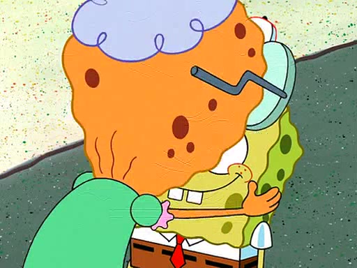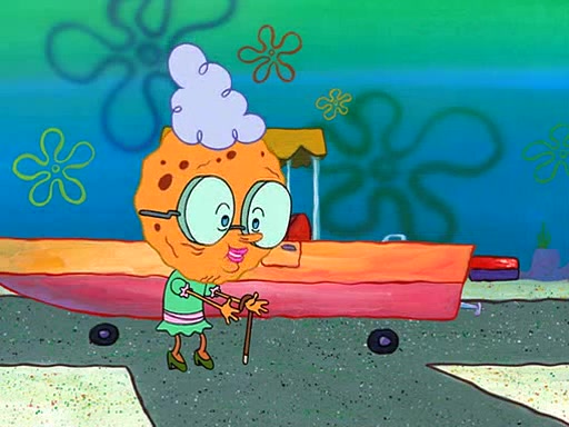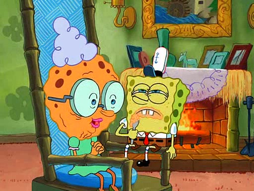 SpongeBob visits his Grandmother's house, where he acts and is treated like a small child, engaging in such babyish activities as eating cookies and being read stories. As soon as the clock strikes 3:00 PM, SpongeBob has to go back to work and is given a ride there by his Grandma. When they get there, she kisses him goodbye, leaving a kissy mark that is visible on his forehead.
