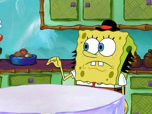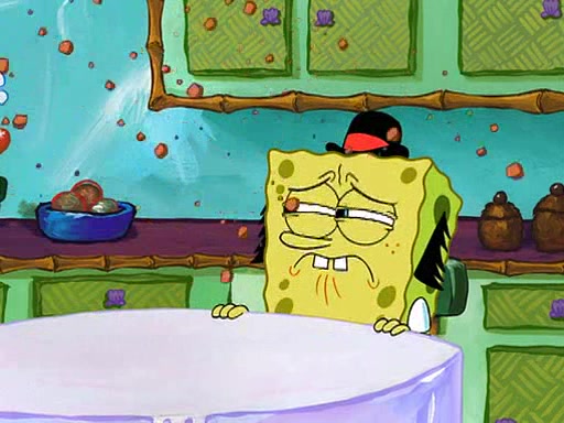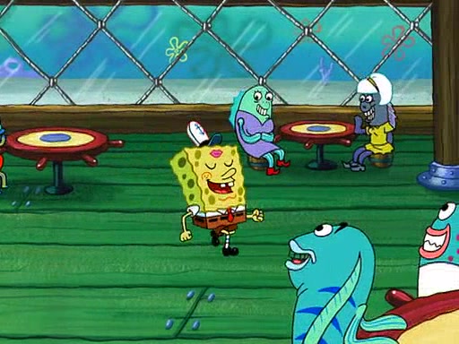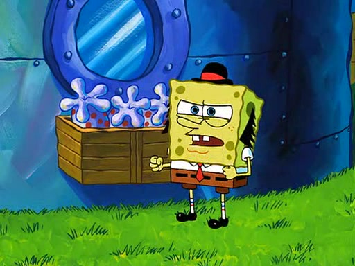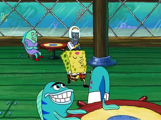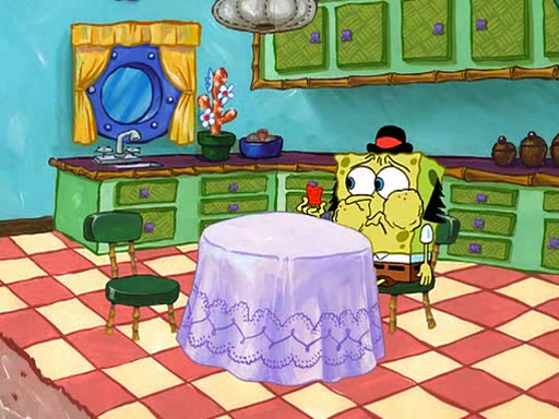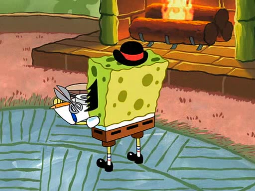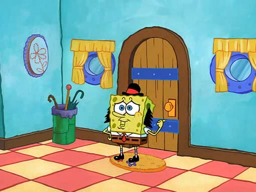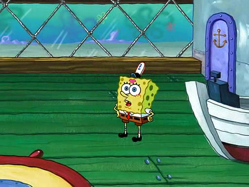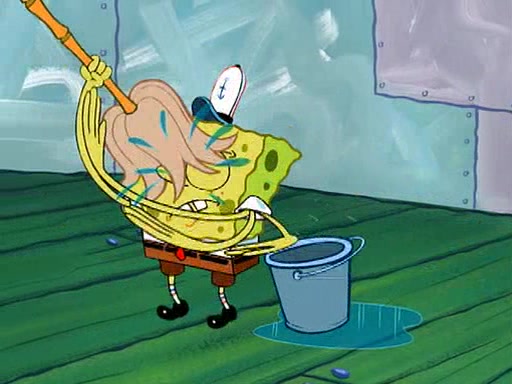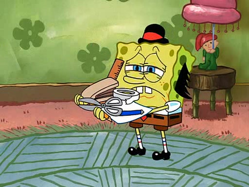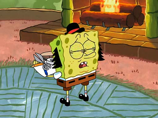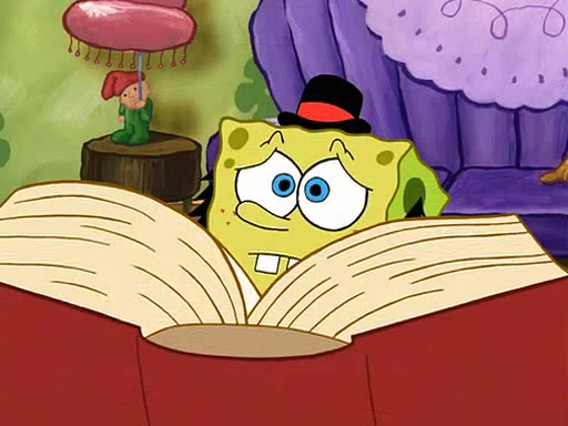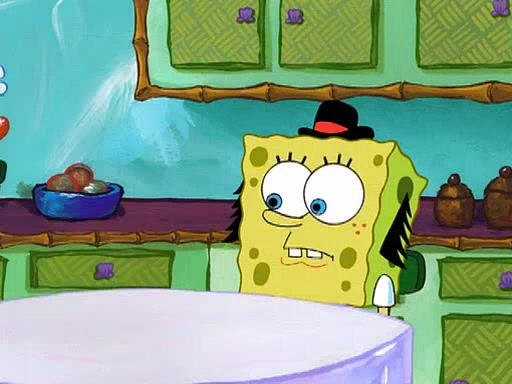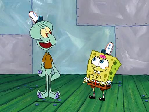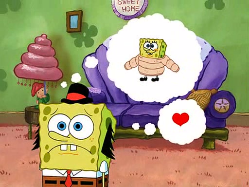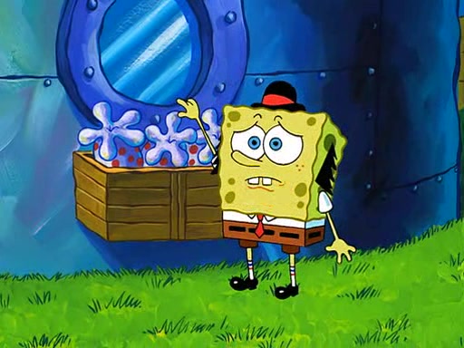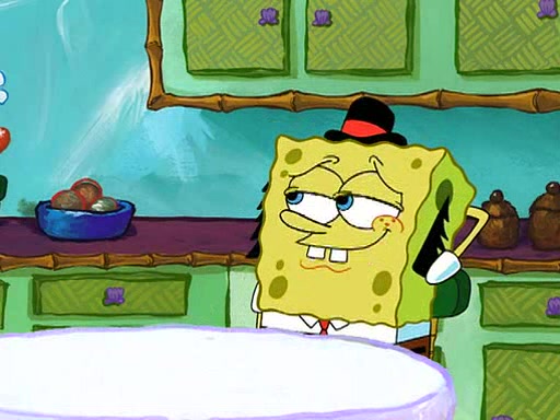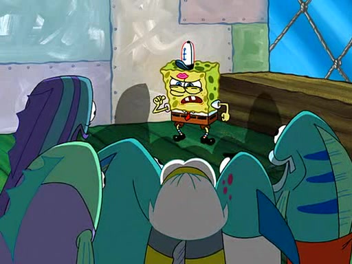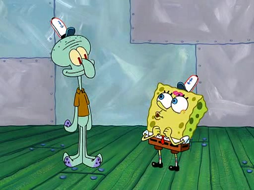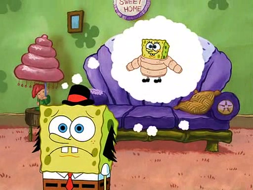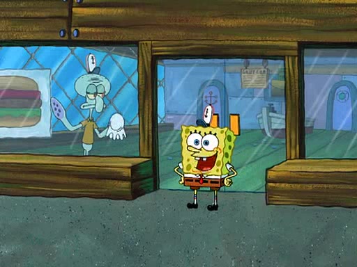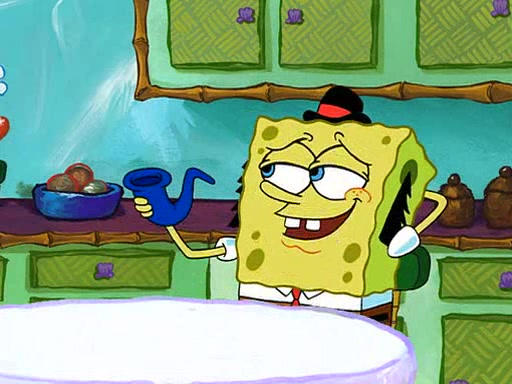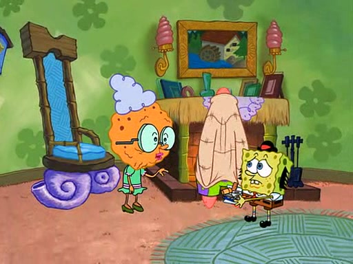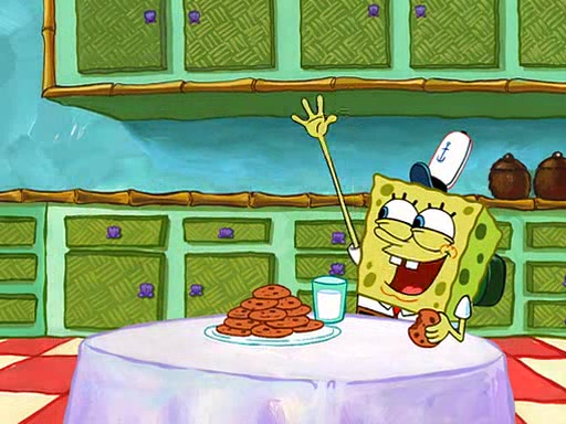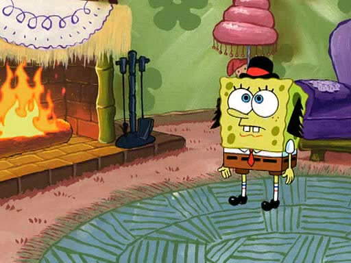 SpongeBob visits his Grandmother's house, where he acts and is treated like a small child, engaging in such babyish activities as eating cookies and being read stories. As soon as the clock strikes 3:00 PM, SpongeBob has to go back to work and is given a ride there by his Grandma. When they get there, she kisses him goodbye, leaving a kissy mark that is visible on his forehead.