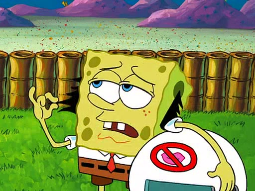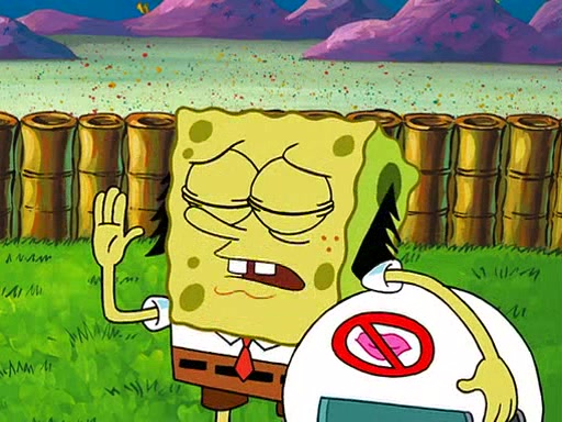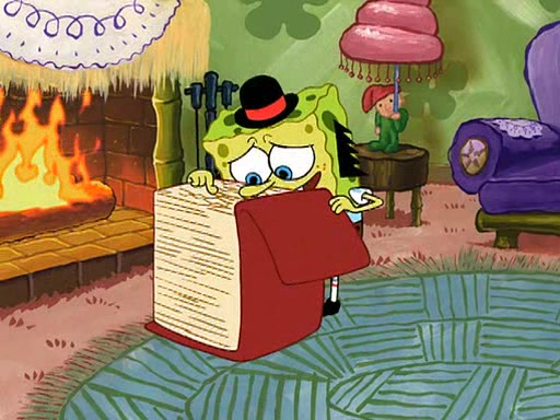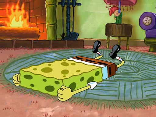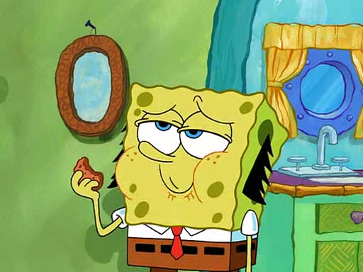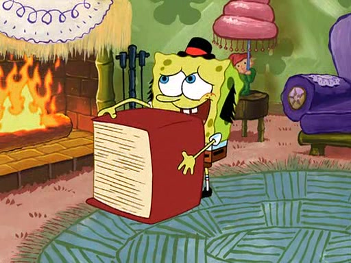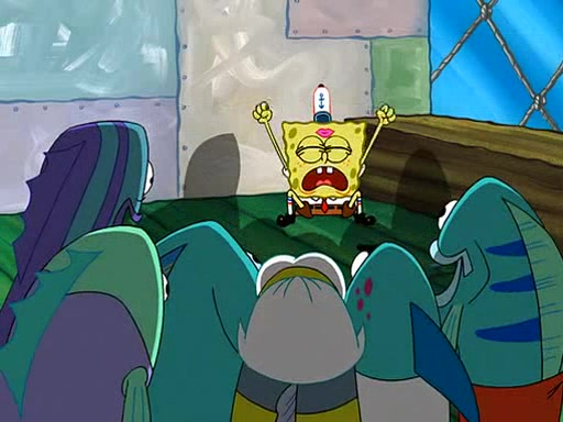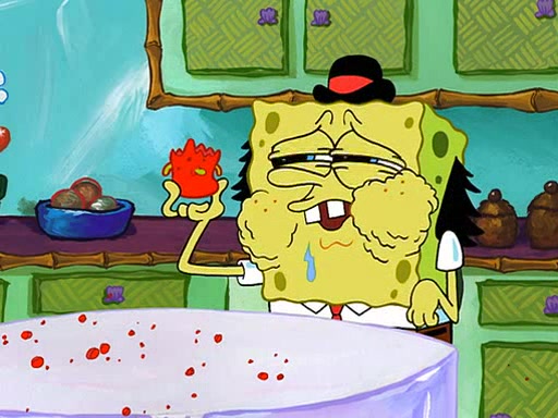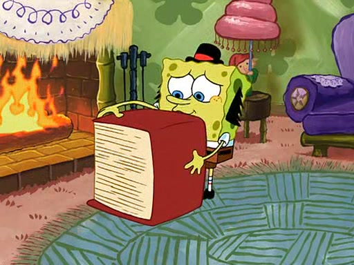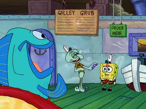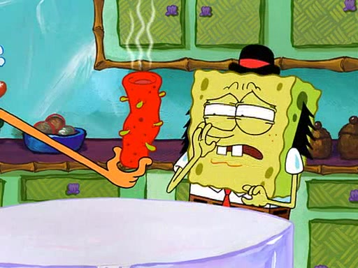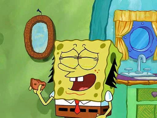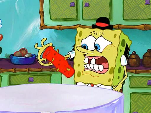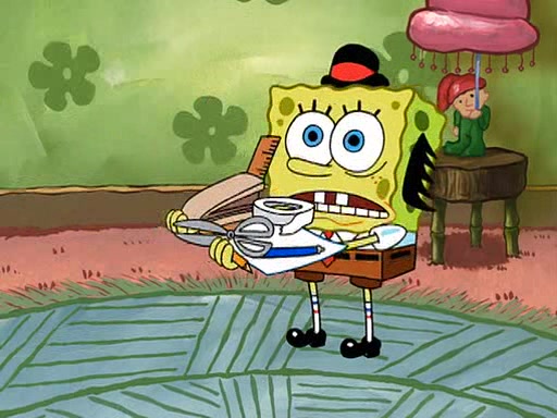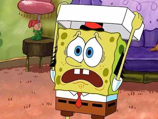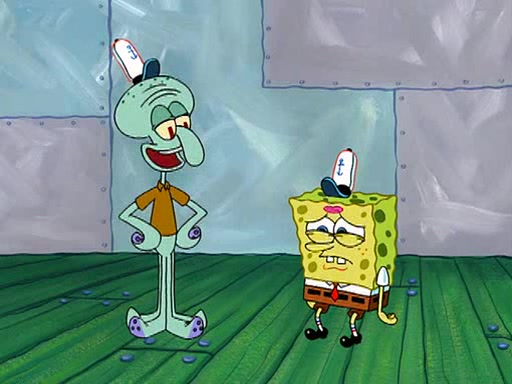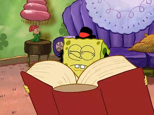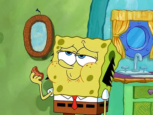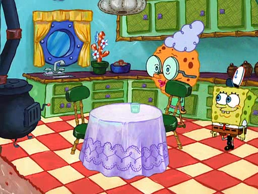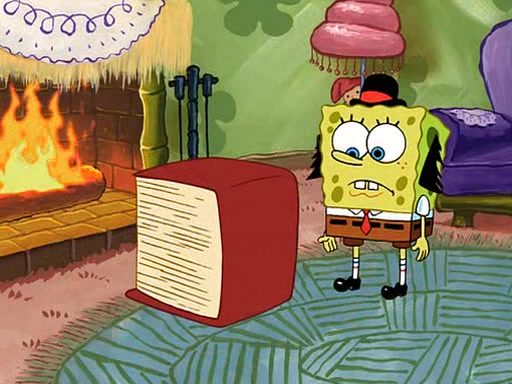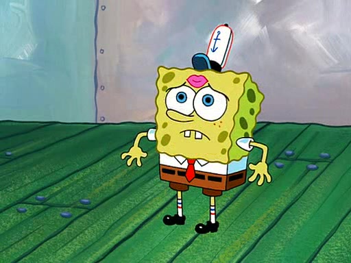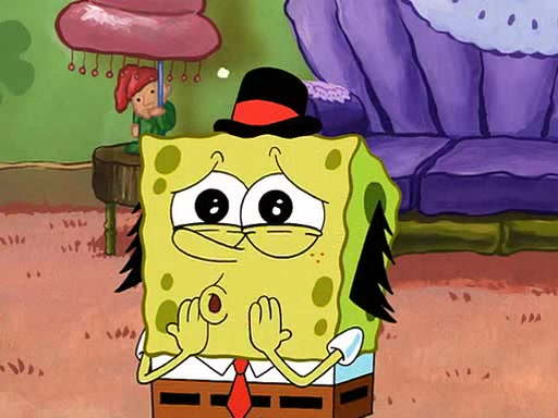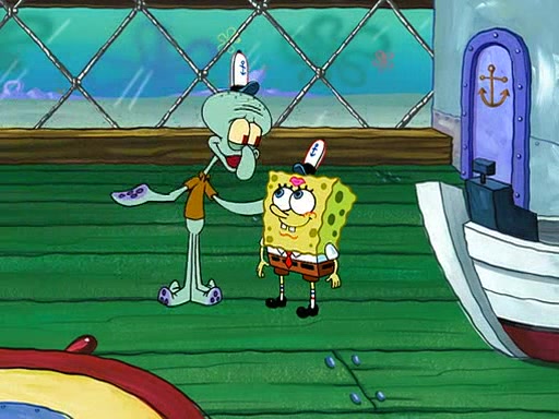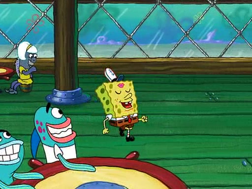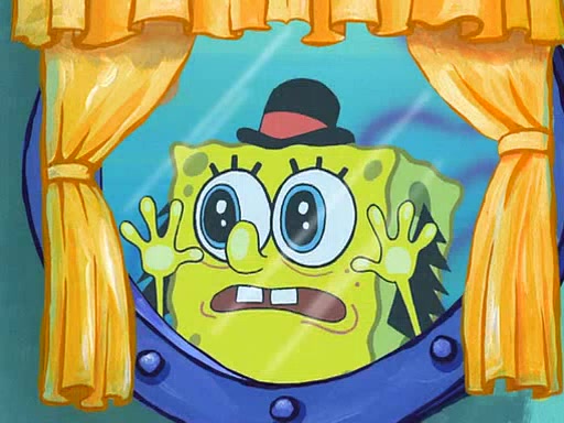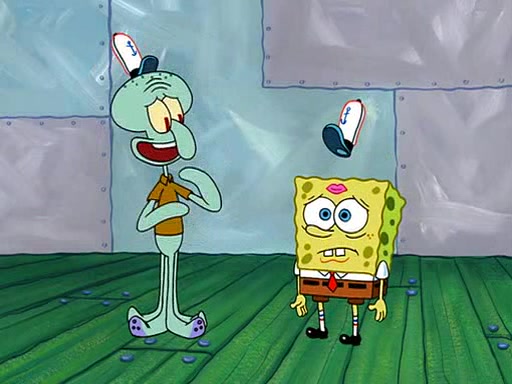 SpongeBob visits his Grandmother's house, where he acts and is treated like a small child, engaging in such babyish activities as eating cookies and being read stories. As soon as the clock strikes 3:00 PM, SpongeBob has to go back to work and is given a ride there by his Grandma. When they get there, she kisses him goodbye, leaving a kissy mark that is visible on his forehead.