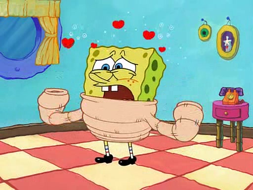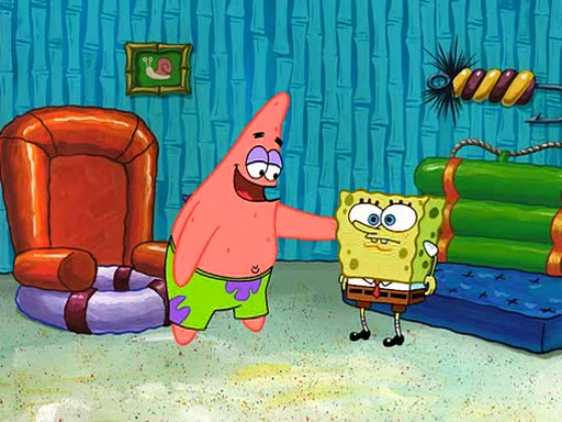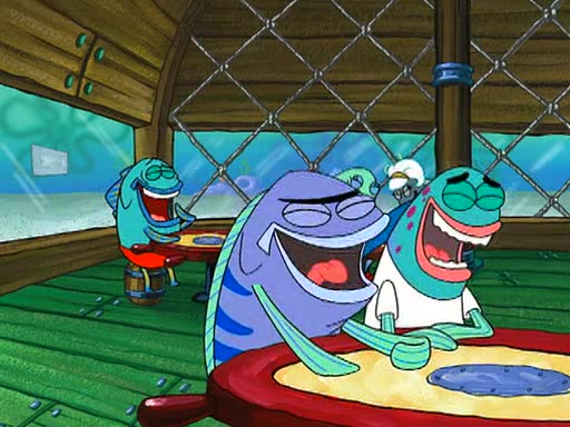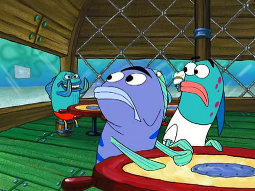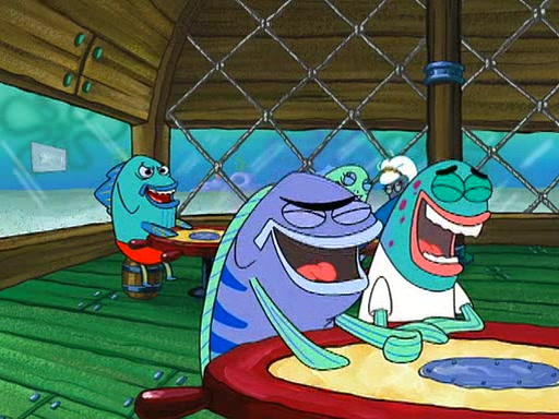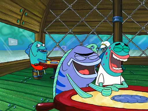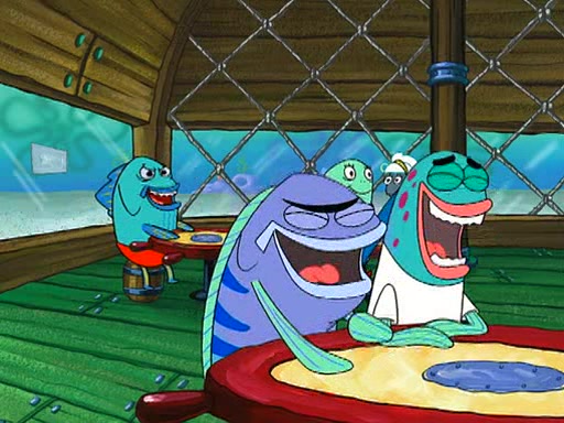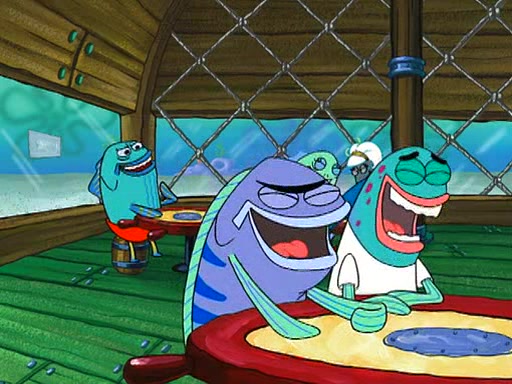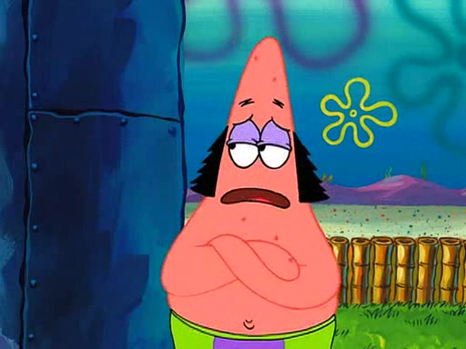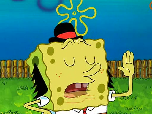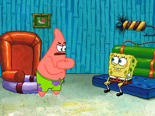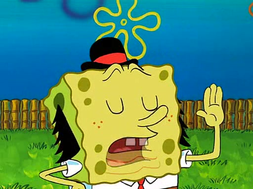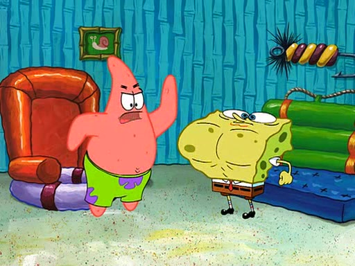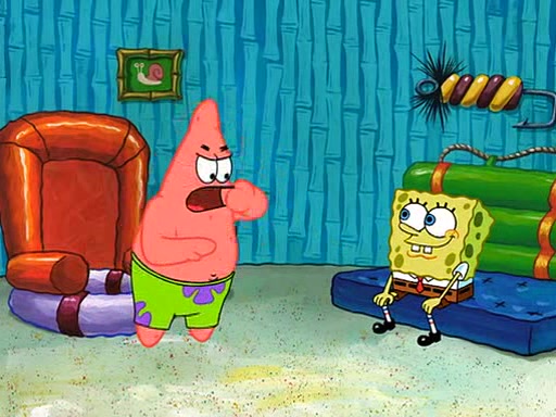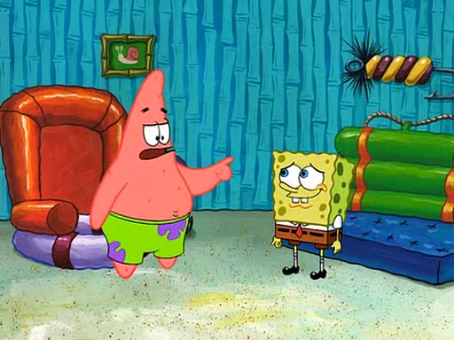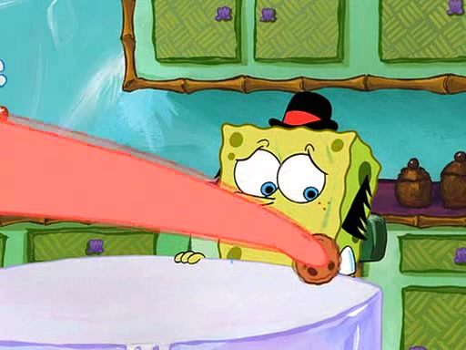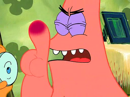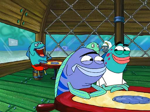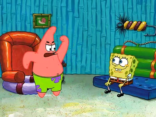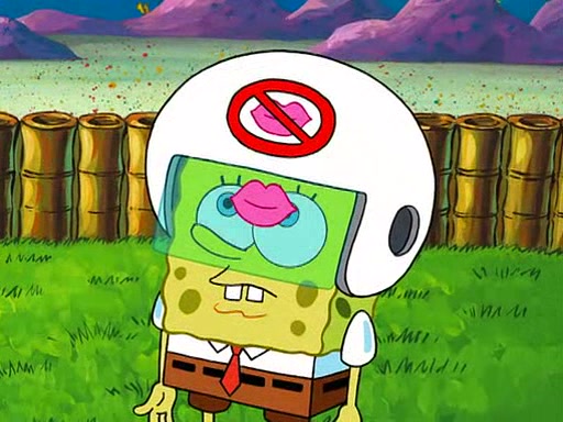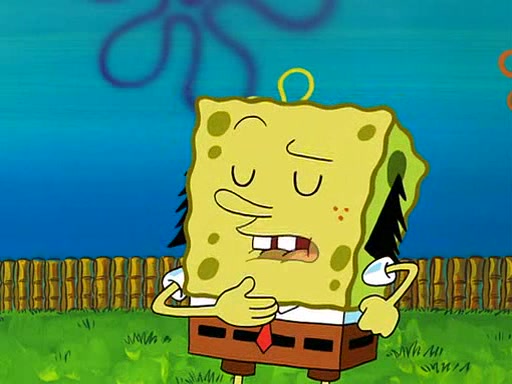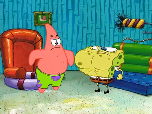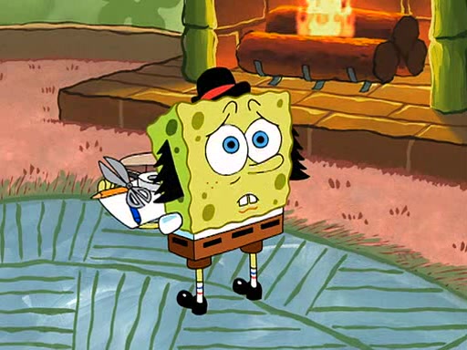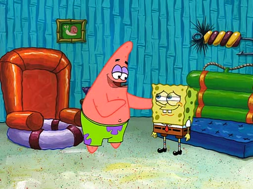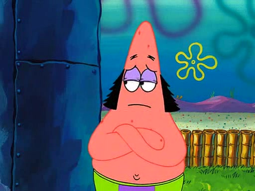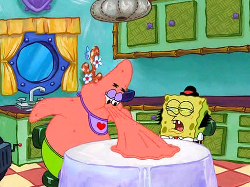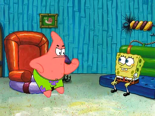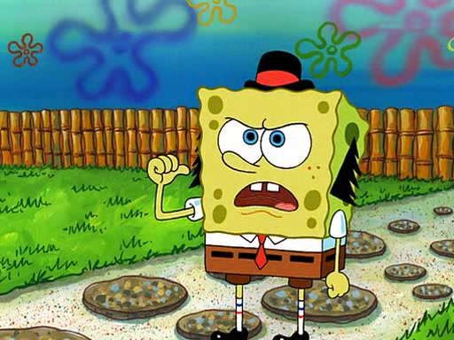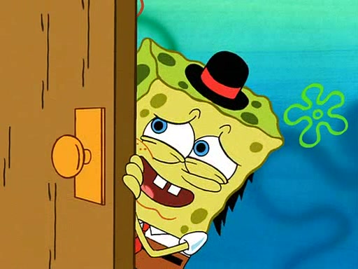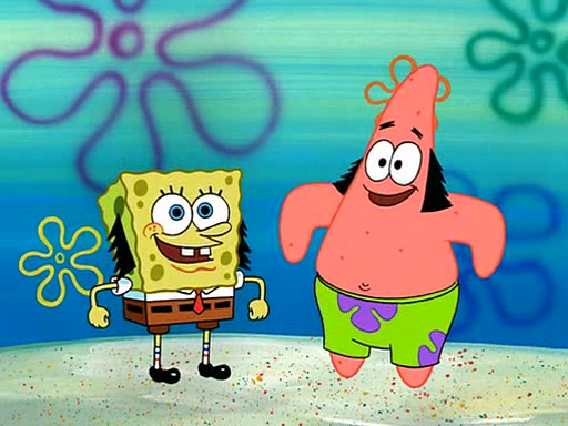 SpongeBob is then teased by everyone at the Krusty Krab, and runs home crying. At home, SpongeBob consoles Patrick about this, and Patrick tells him that he should show his Grandma that he is not a baby anymore by acting like an adult. SpongeBob and Patrick go to Grandma's house wearing fake sideburns, and when she answers the door and tries to kiss him, he refuses to be kissed, explaining to her that he is an adult now.