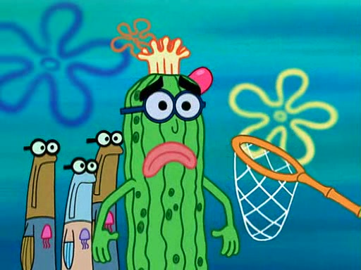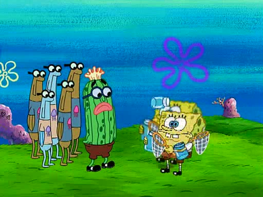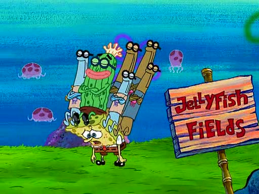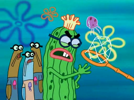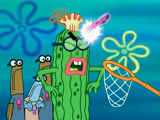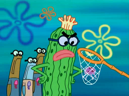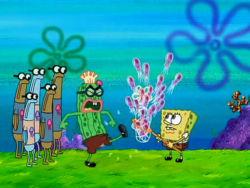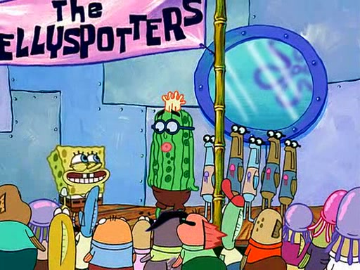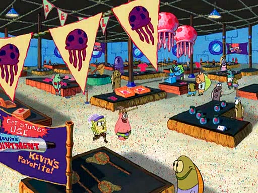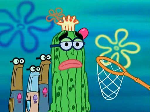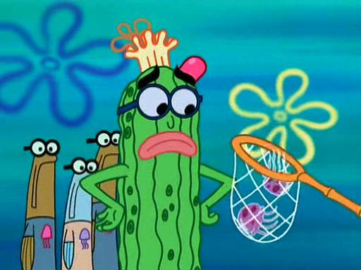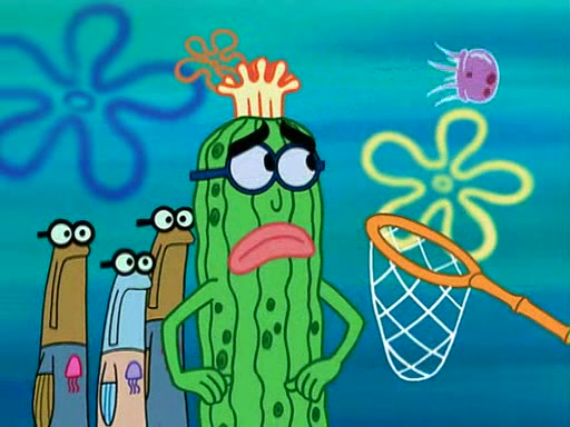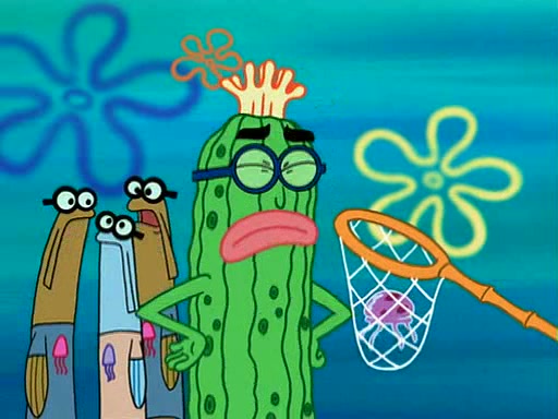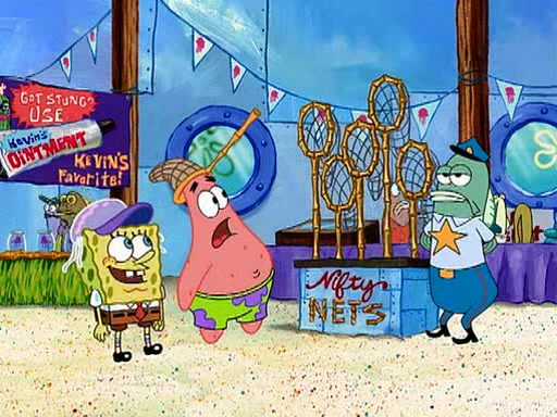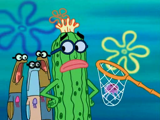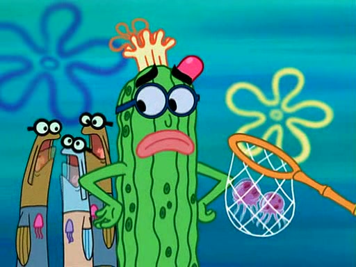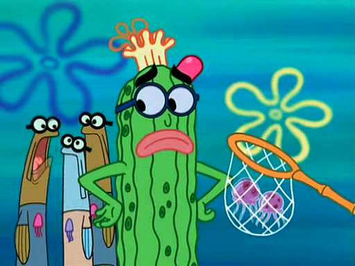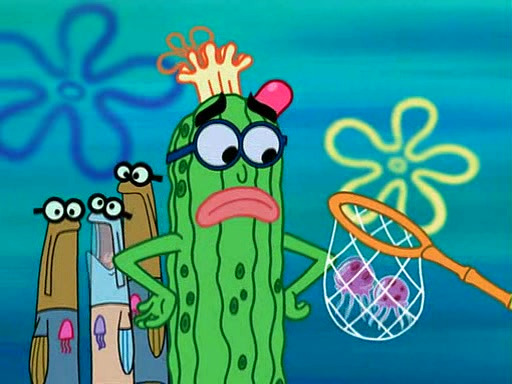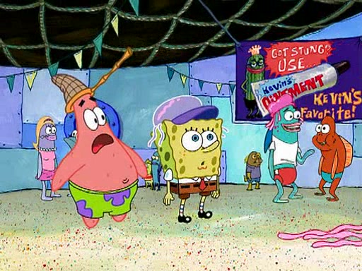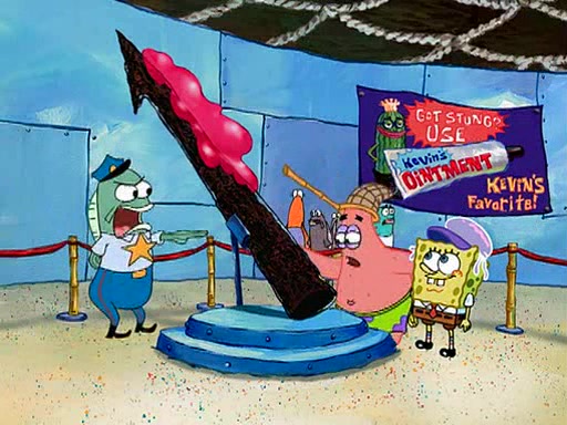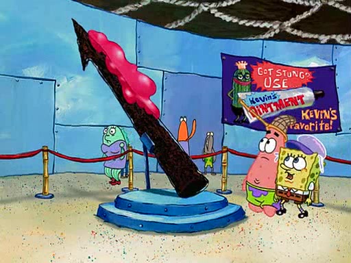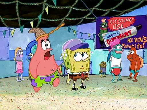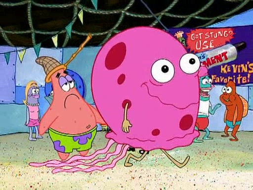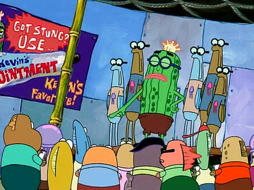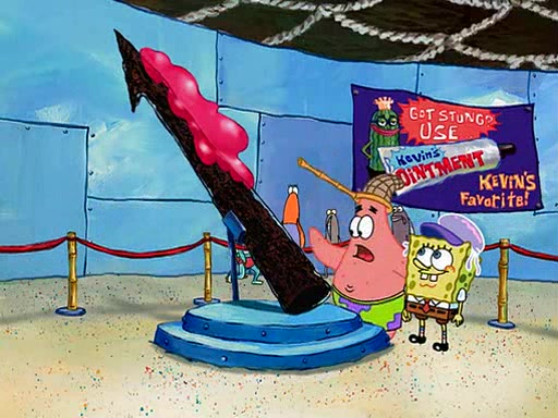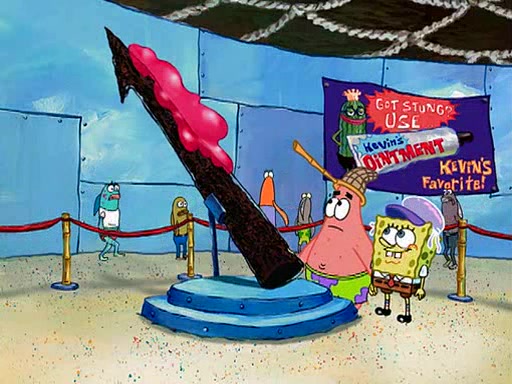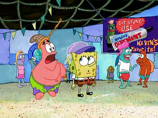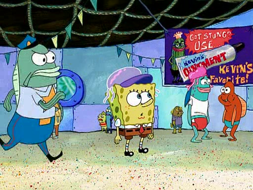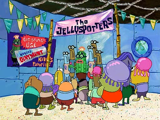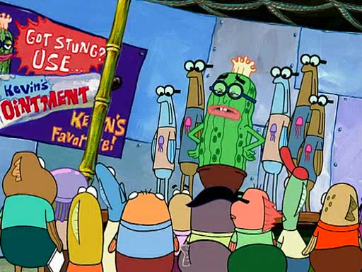 At the Bi-Annual Jellyfishing Convention, SpongeBob and Patrick are enjoying the convention. While Patrick touches every display in sight, much to the dismay of the security guard, SpongeBob spots the "Jelly Spotters," the world's premiere jellyfish enthusiast club, whose membership consists entirely of Anchovies, except for their leader Kevin the Sea Cucumber. SpongeBob continuously tries to get Kevin's attention, and Kevin tells him to jump off a building, which he actually does. Realizing that he'll do anything for him, he asks SpongeBob if he wants to join the jellyspotters, to which he excitedly says yes. Kevin tells him that he must first pass a "rigorous test," intending to get him hurt.
