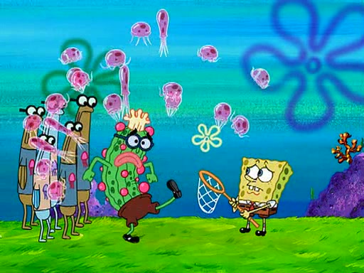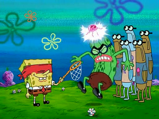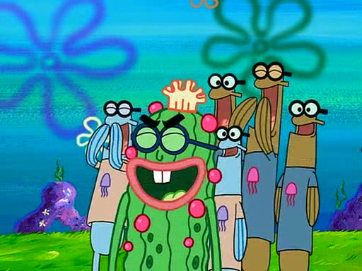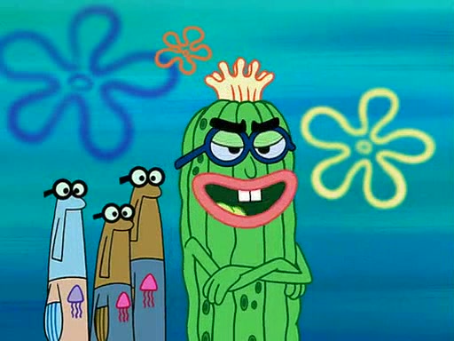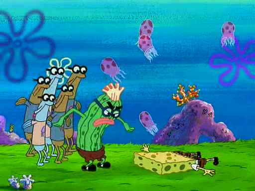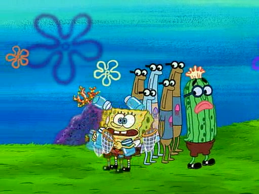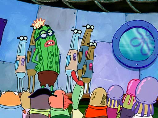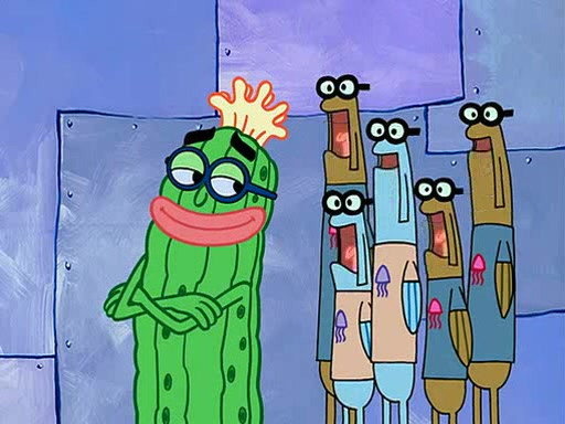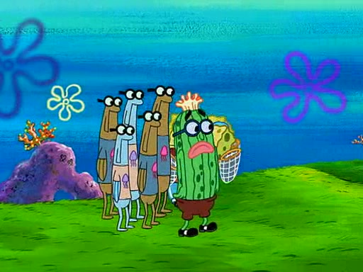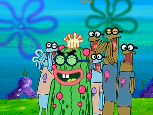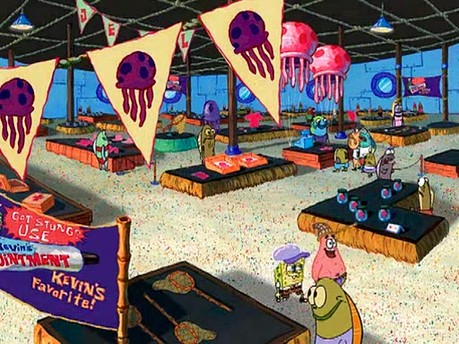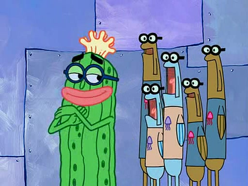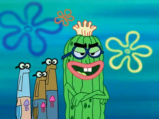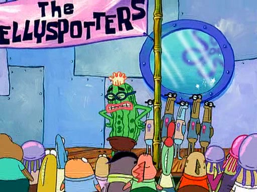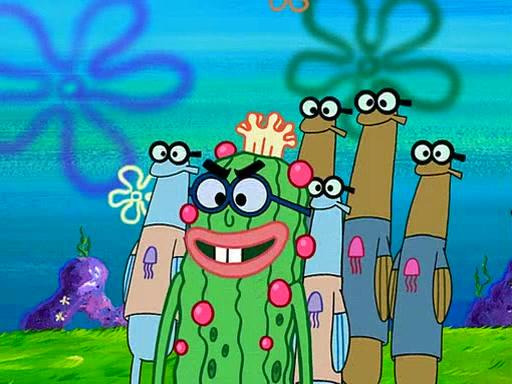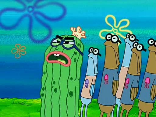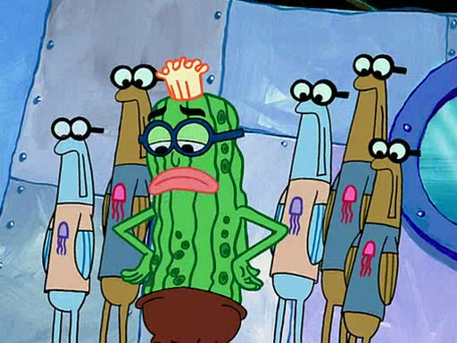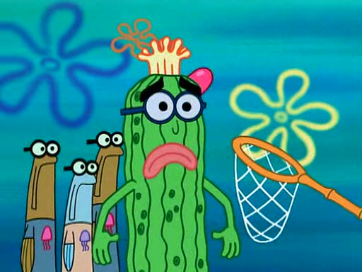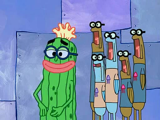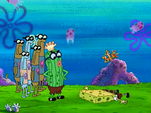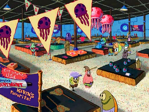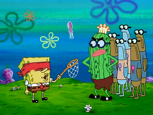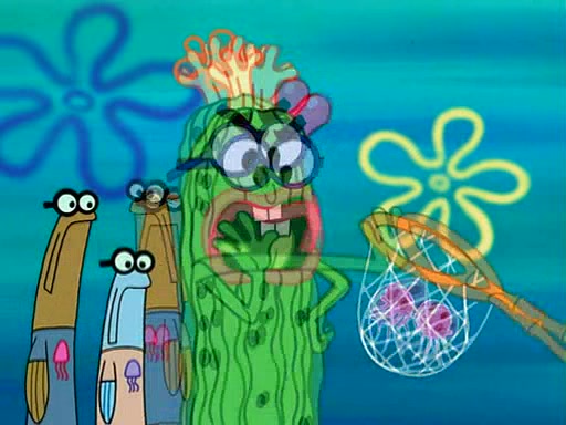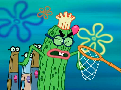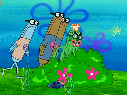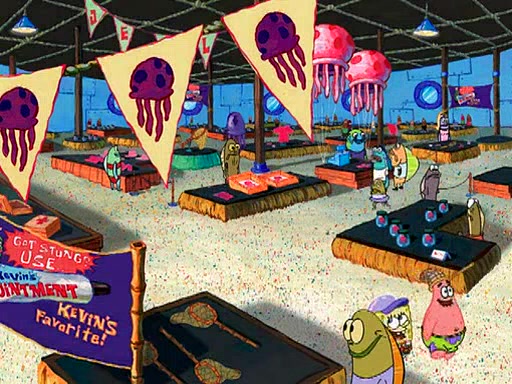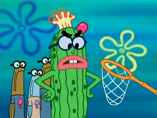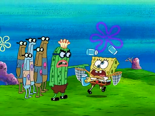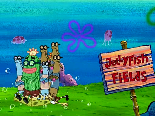 At the Bi-Annual Jellyfishing Convention, SpongeBob and Patrick are enjoying the convention. While Patrick touches every display in sight, much to the dismay of the security guard, SpongeBob spots the "Jelly Spotters," the world's premiere jellyfish enthusiast club, whose membership consists entirely of Anchovies, except for their leader Kevin the Sea Cucumber. SpongeBob continuously tries to get Kevin's attention, and Kevin tells him to jump off a building, which he actually does. Realizing that he'll do anything for him, he asks SpongeBob if he wants to join the jellyspotters, to which he excitedly says yes. Kevin tells him that he must first pass a "rigorous test," intending to get him hurt.