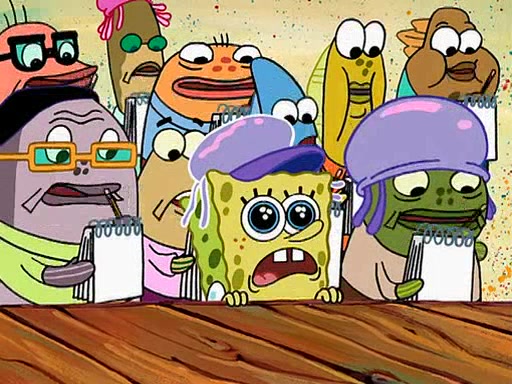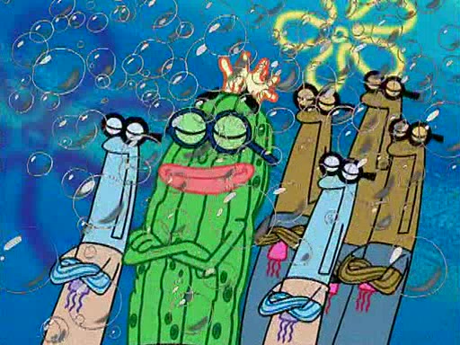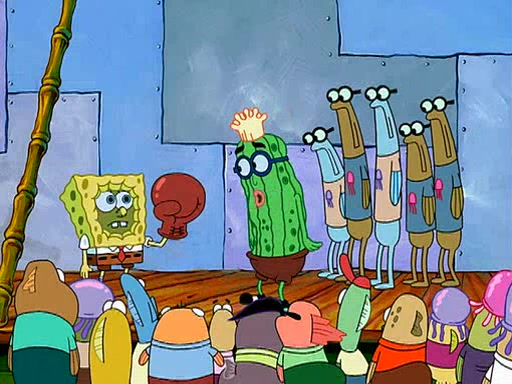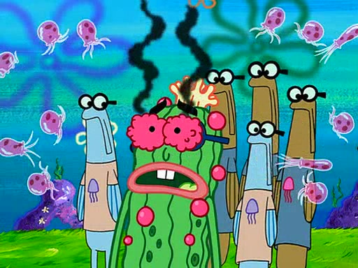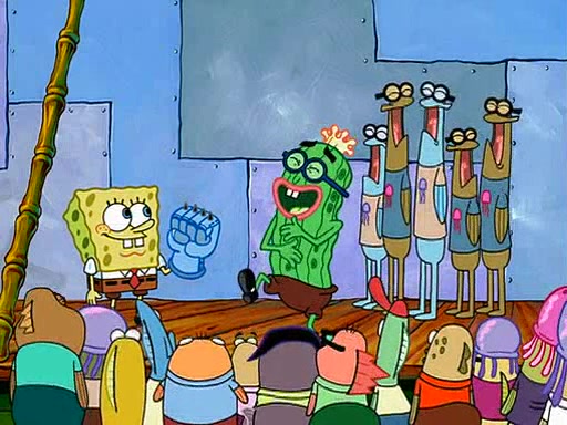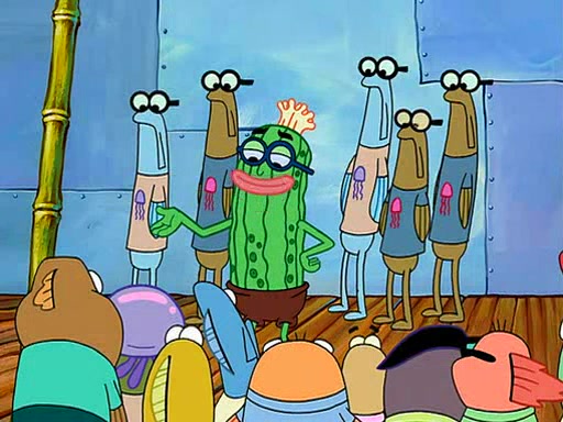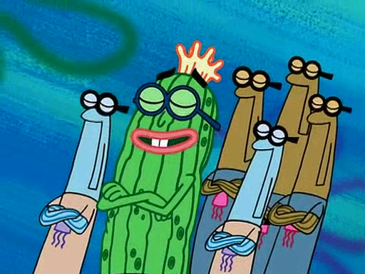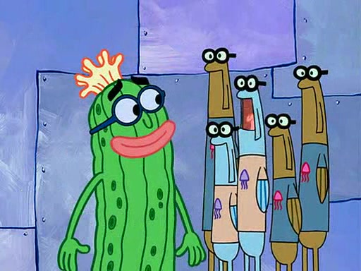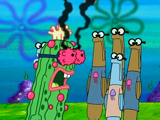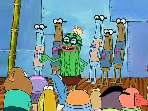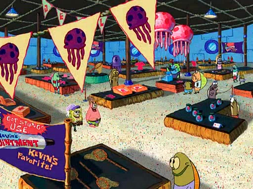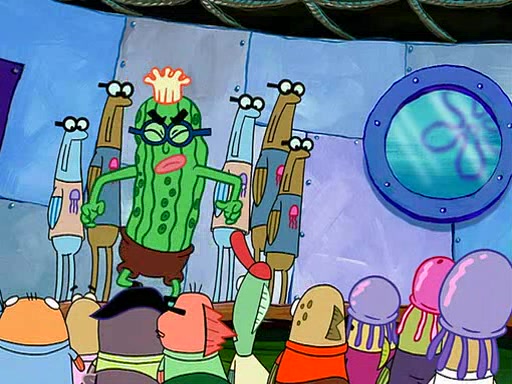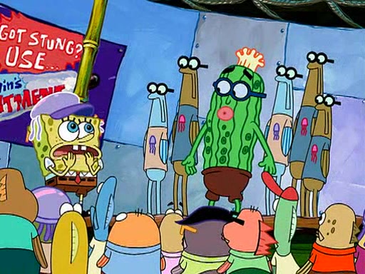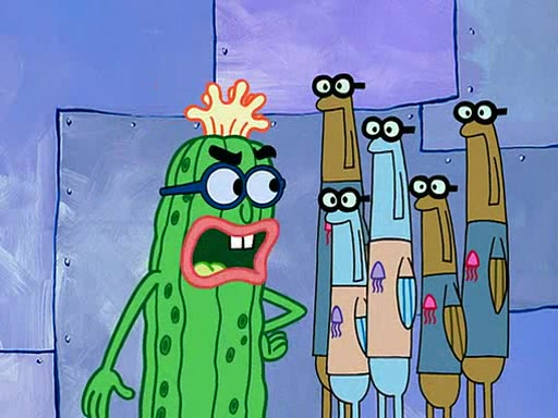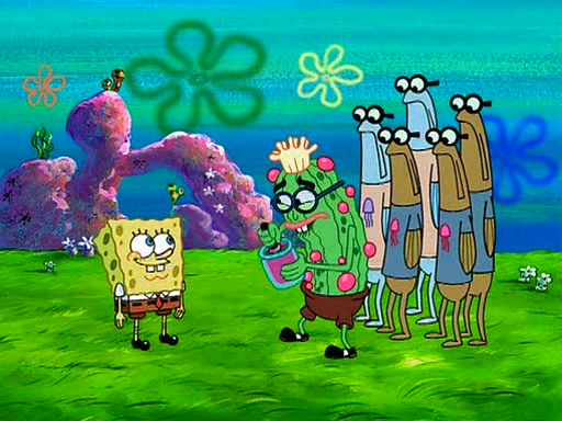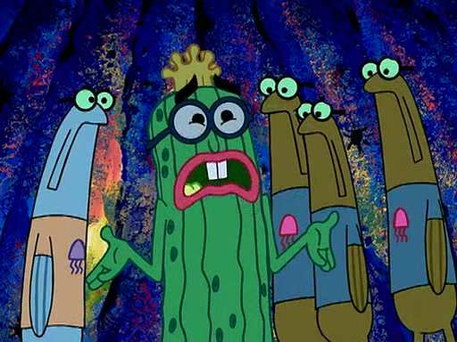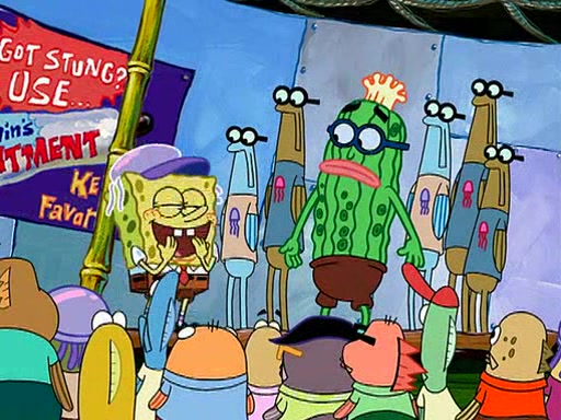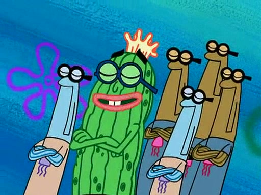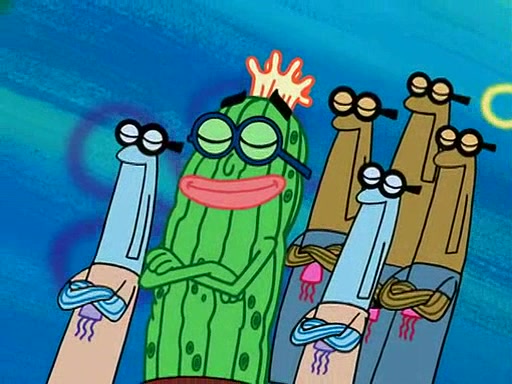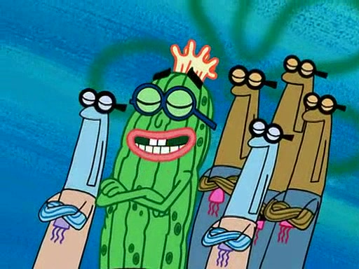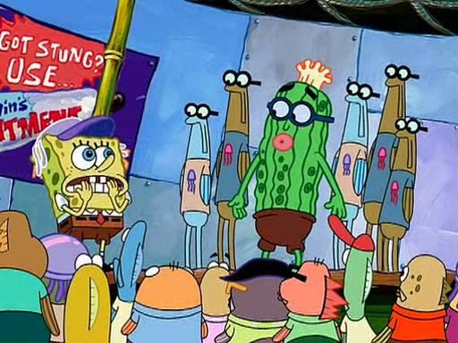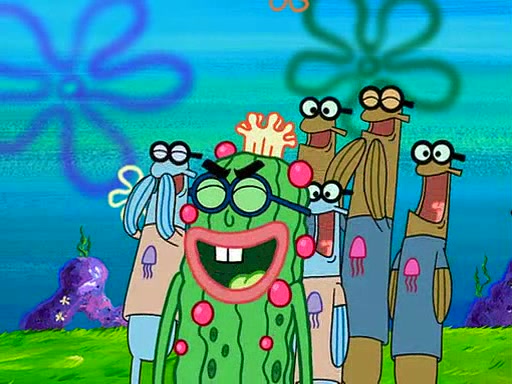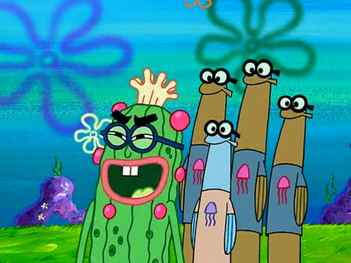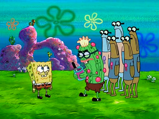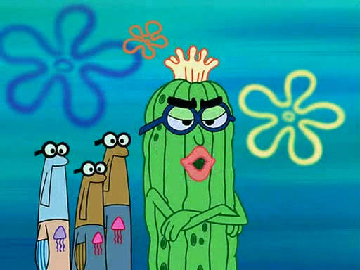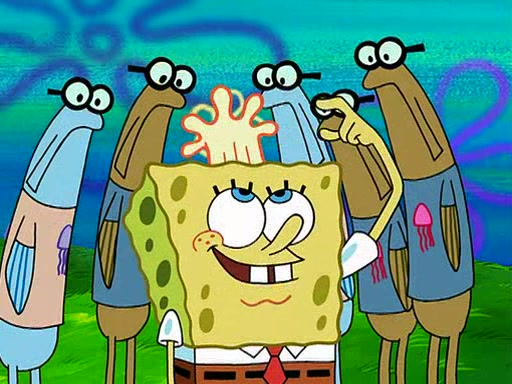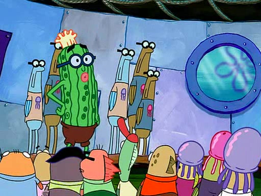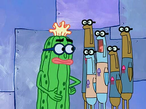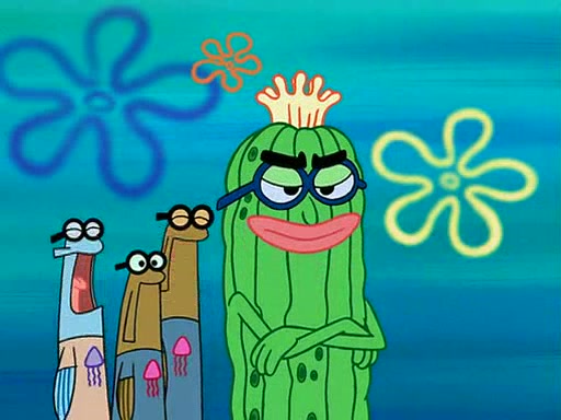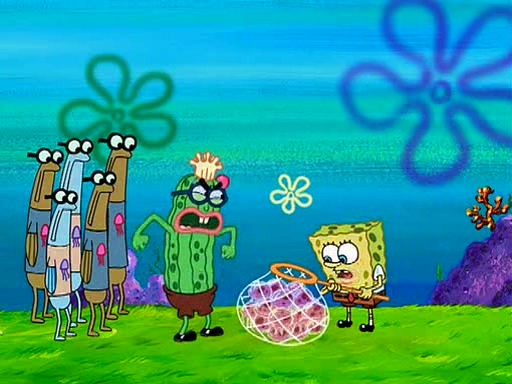 At the Bi-Annual Jellyfishing Convention, SpongeBob and Patrick are enjoying the convention. While Patrick touches every display in sight, much to the dismay of the security guard, SpongeBob spots the "Jelly Spotters," the world's premiere jellyfish enthusiast club, whose membership consists entirely of Anchovies, except for their leader Kevin the Sea Cucumber. SpongeBob continuously tries to get Kevin's attention, and Kevin tells him to jump off a building, which he actually does. Realizing that he'll do anything for him, he asks SpongeBob if he wants to join the jellyspotters, to which he excitedly says yes. Kevin tells him that he must first pass a "rigorous test," intending to get him hurt.