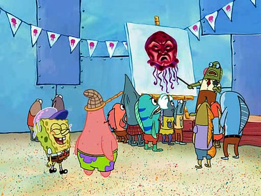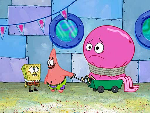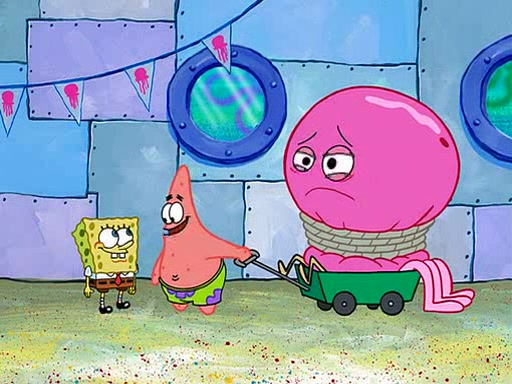 SpongeBob tells Patrick about his experience, and reveals that he turned the Jellyspotters' offer down. Patrick says that he's glad SpongeBob learned his lesson, and that hero worship is unhealthy. He then walks off dragging his own hero, Jeffrey Jellyfish, who is tied up in a wagon. Then, fade to black.