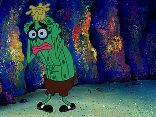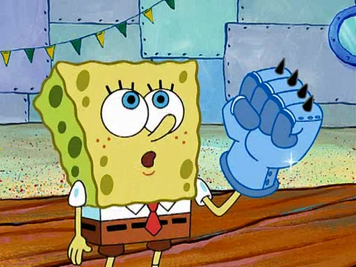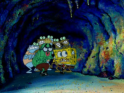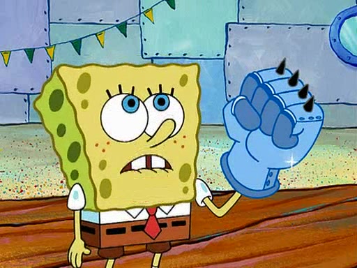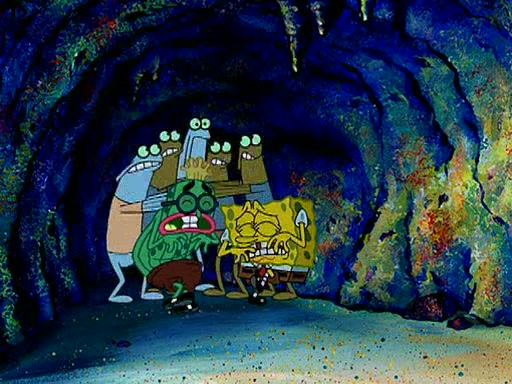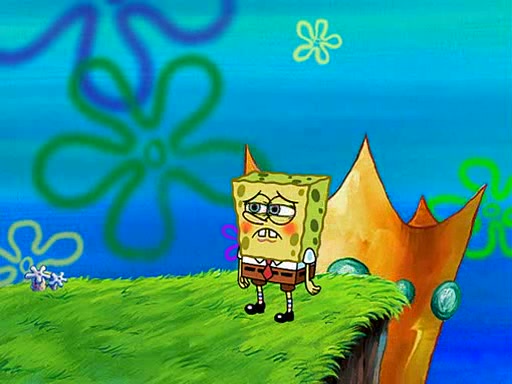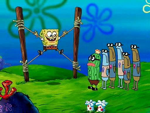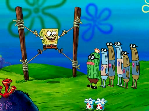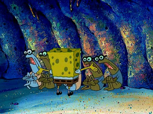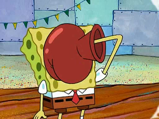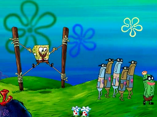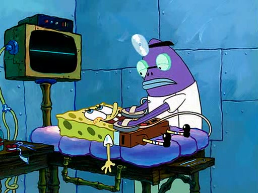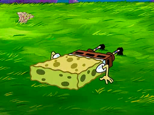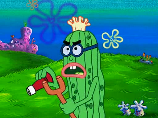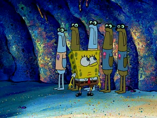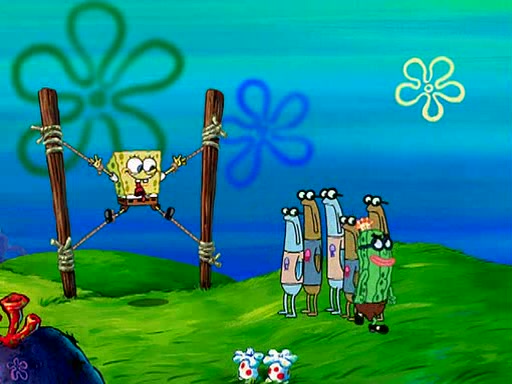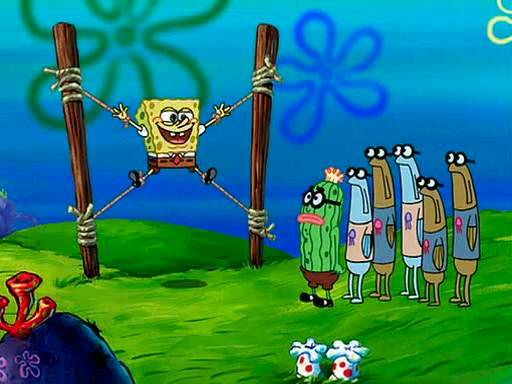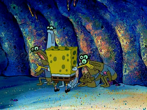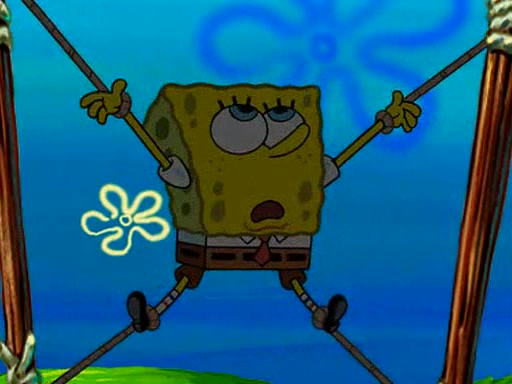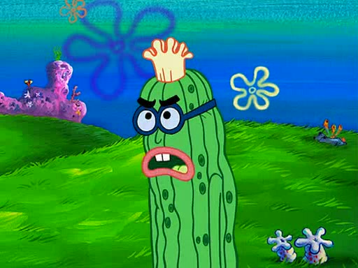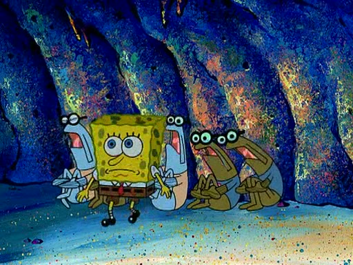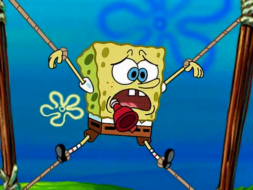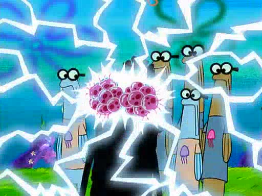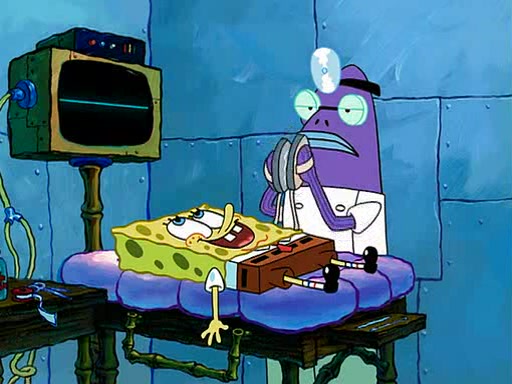 At Jellyfish Fields, Kevin's first test for SpongeBob is to catch a jellyfish, which immediately flies into SpongeBob's net. Kevin smacks it out and it stings him. He says to catch two jellyfish, and two jellyfish fly into SpongeBob's net. Kevin then says 20 jellyfish, and then 18 jellyfish fly into SpongeBob's net. Angry, Kevin kicks the net, making all the jellyfish sting him. Kevin continues to give SpongeBob many more "tests," all of which he passes effortlessly, with Kevin getting stung each time as a result. Eventually, Kevin was now covered in stings and frustrated at SpongeBob. He tells him that the final test is to catch a queen jellyfish. They tie him to a post, give him a "queen jellyfish call," which produces the sound "loser," and leave him there.