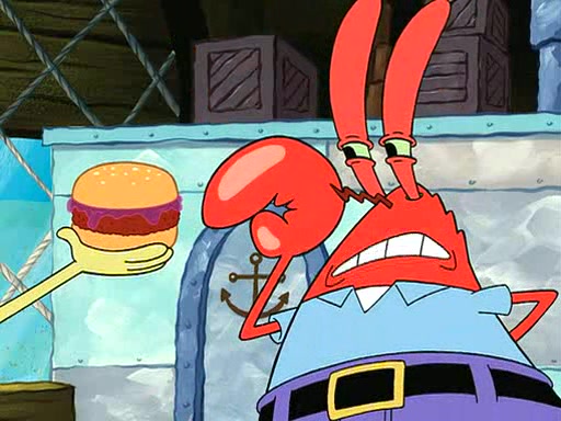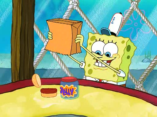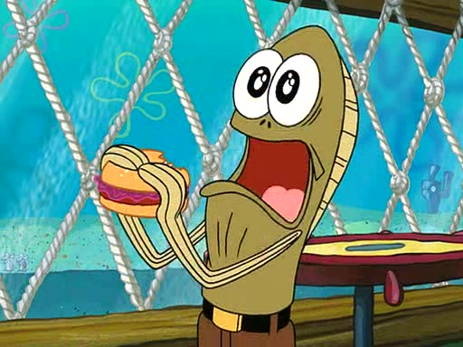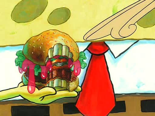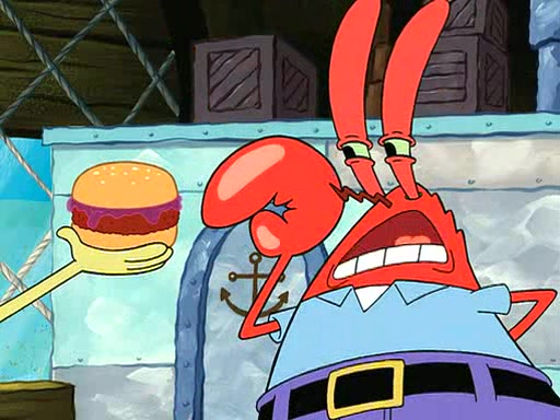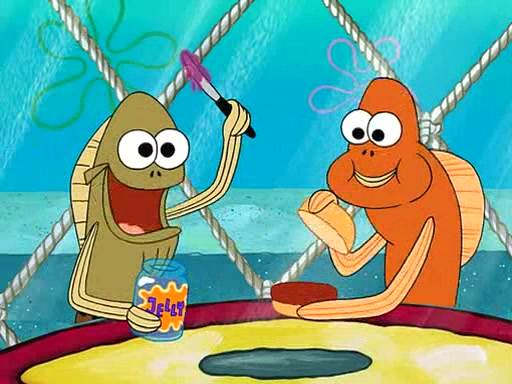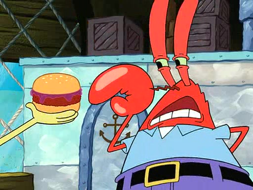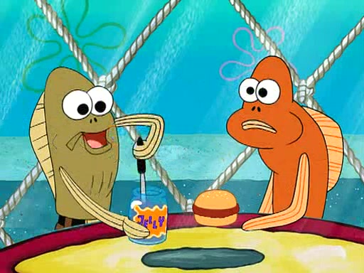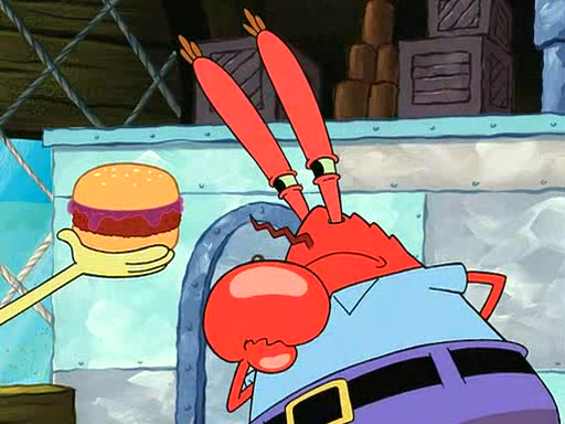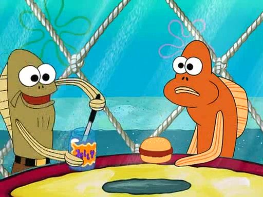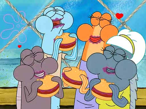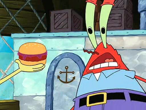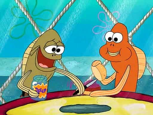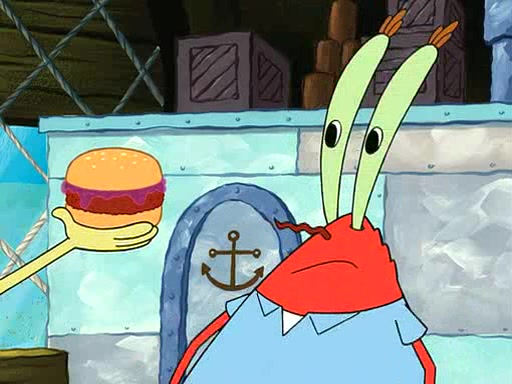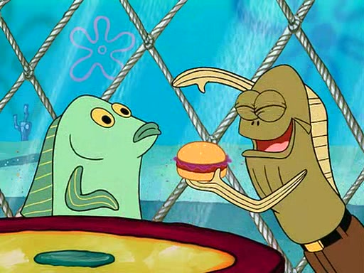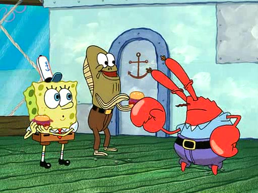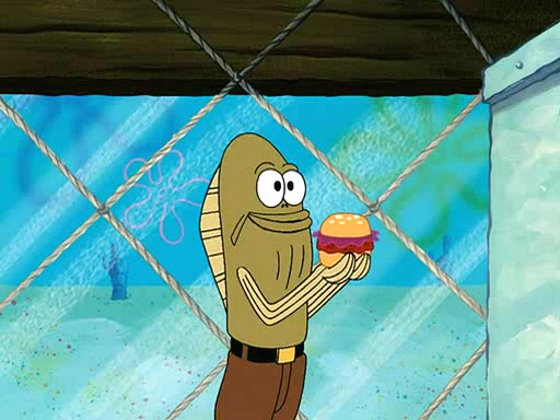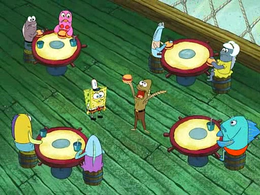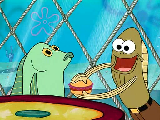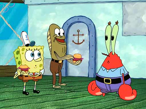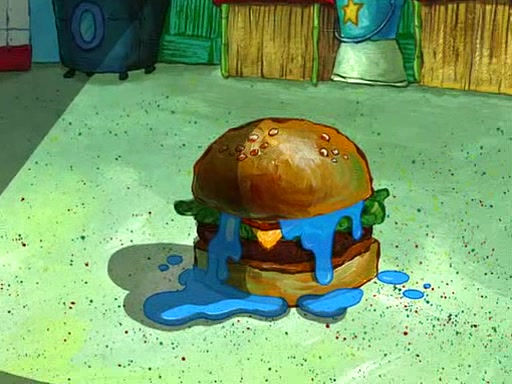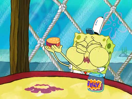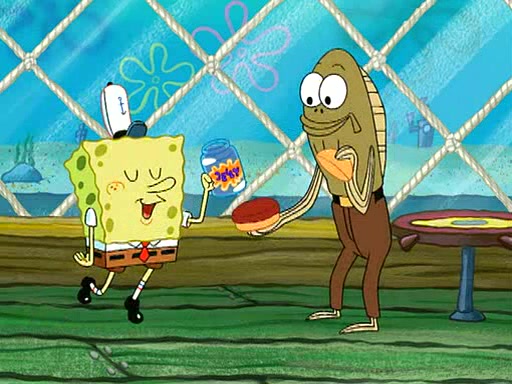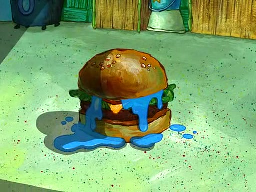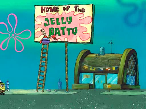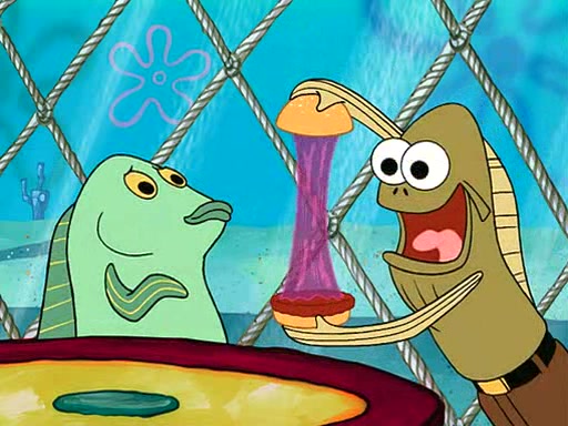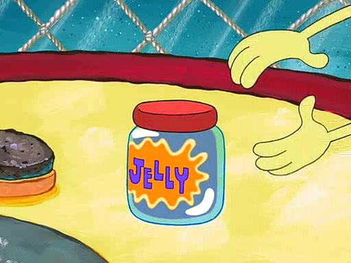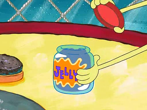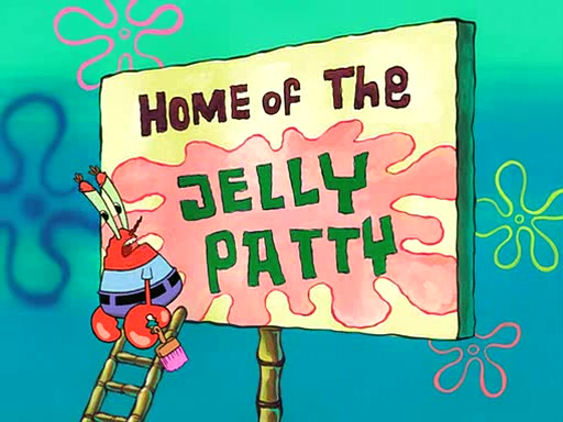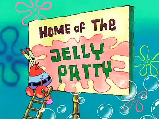 Later, SpongeBob goes on his lunch break at the Krusty Krab, and puts the jelly on a Krabby Patty. After Fred asks about the patty and tries it, he sings a song proclaiming its greatness and puts jelly on the patties of all the other customers, who enjoy it as well. Mr. Krabs sees the profitability, and puts the new patty on the menu.