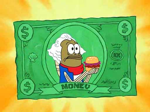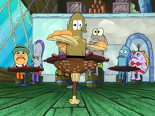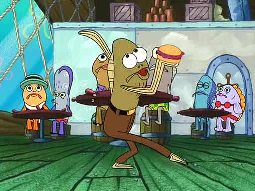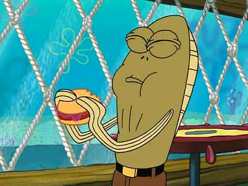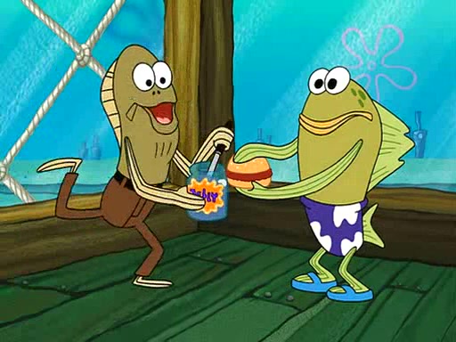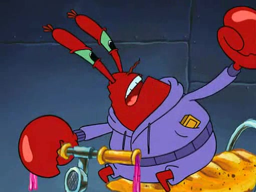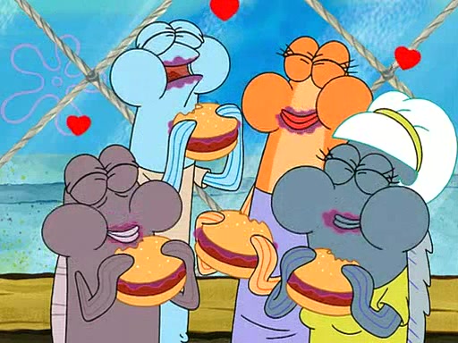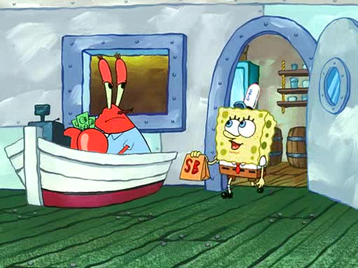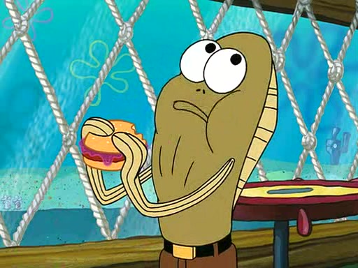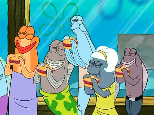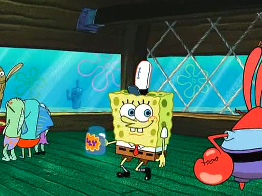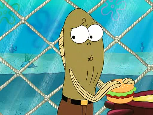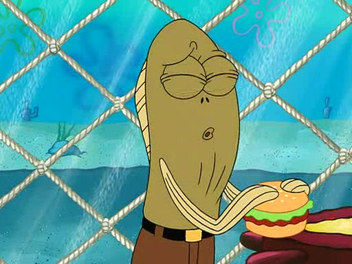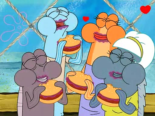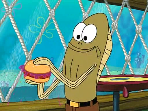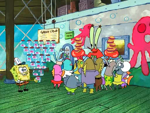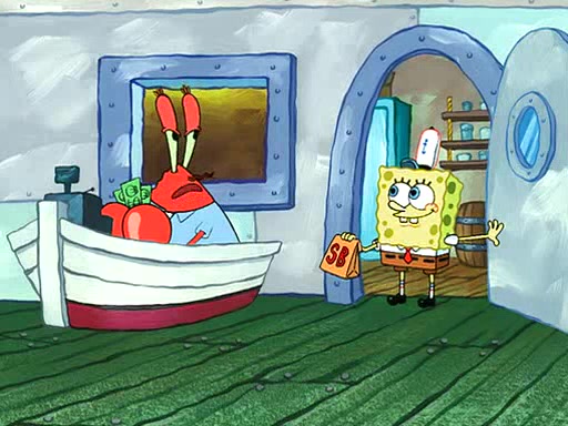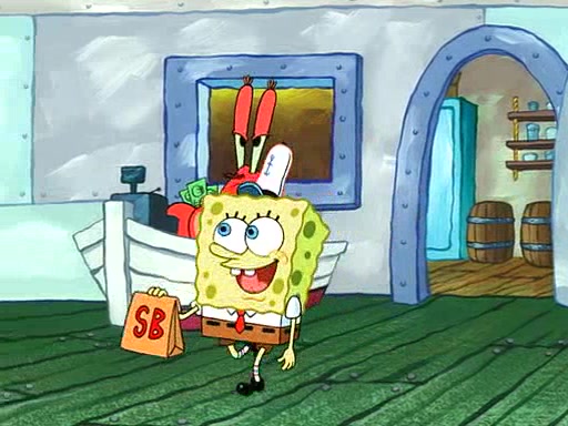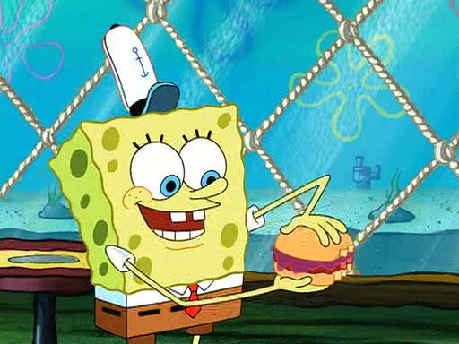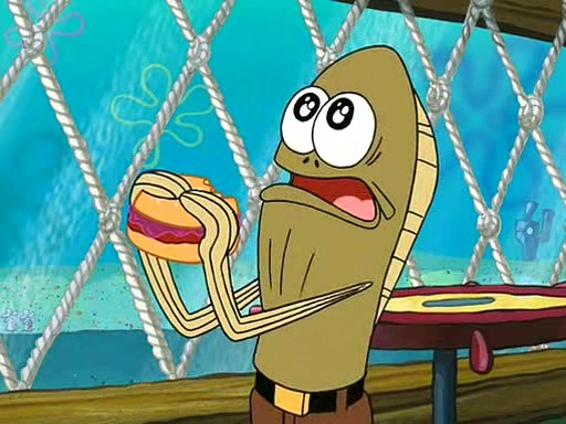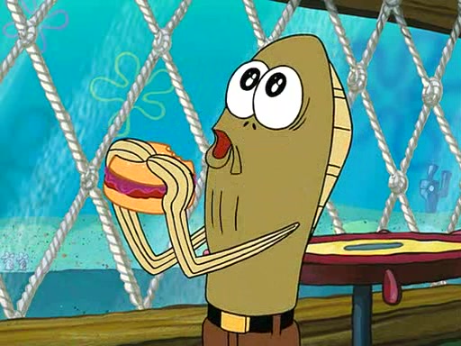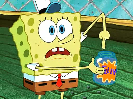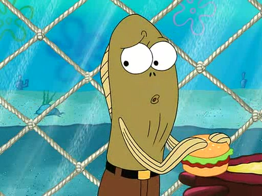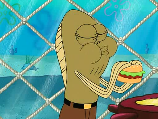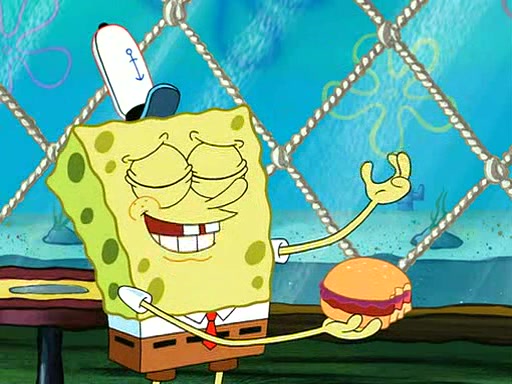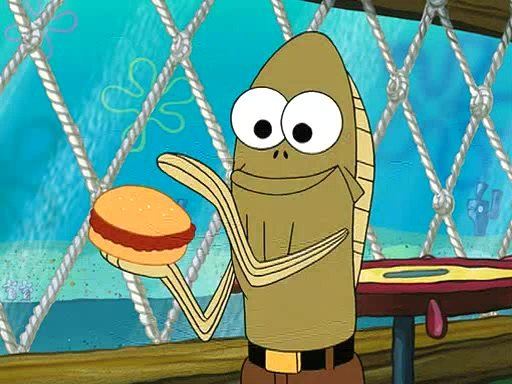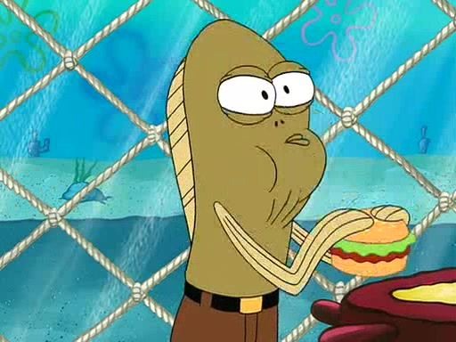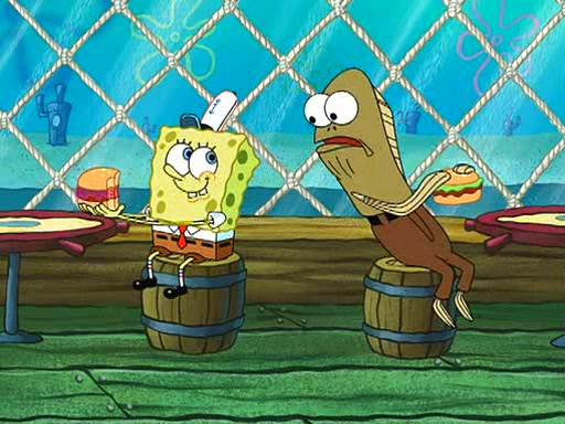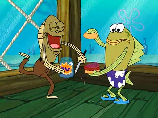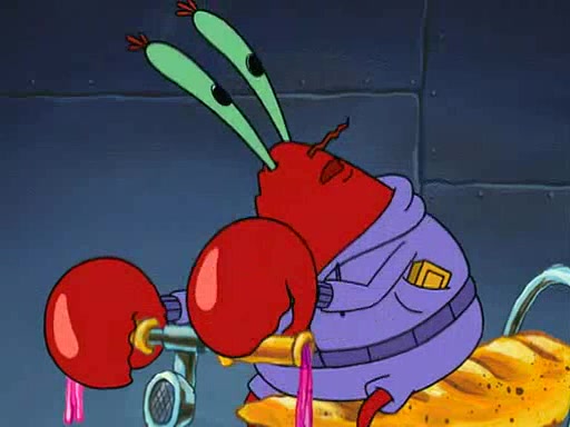 Later, SpongeBob goes on his lunch break at the Krusty Krab, and puts the jelly on a Krabby Patty. After Fred asks about the patty and tries it, he sings a song proclaiming its greatness and puts jelly on the patties of all the other customers, who enjoy it as well. Mr. Krabs sees the profitability, and puts the new patty on the menu.