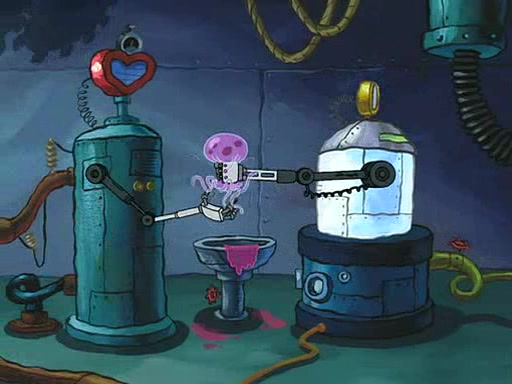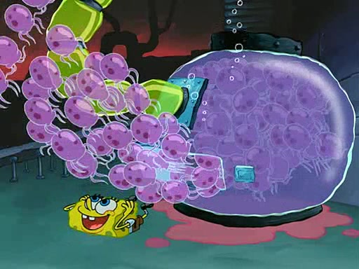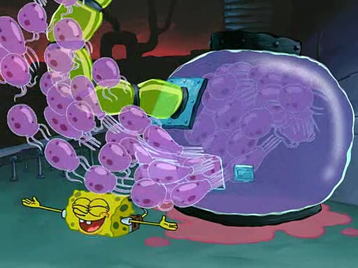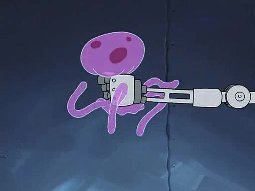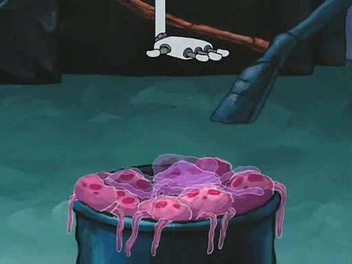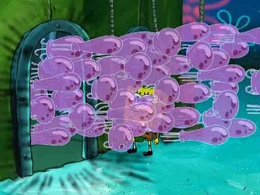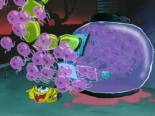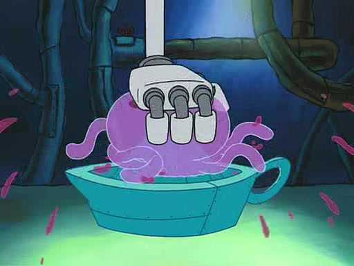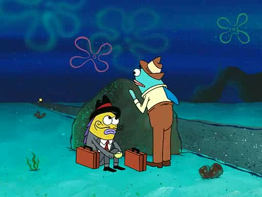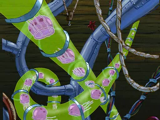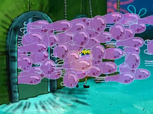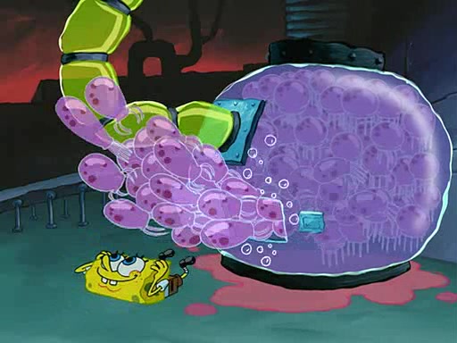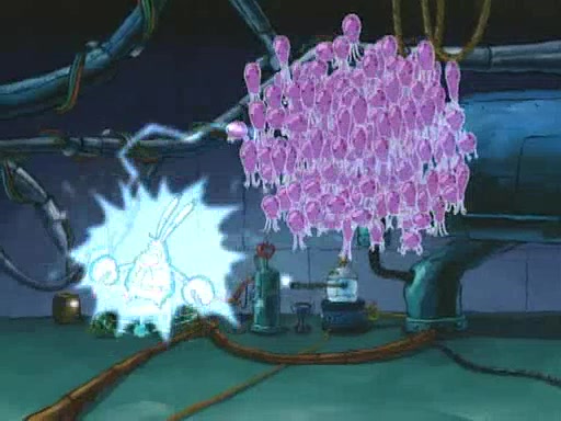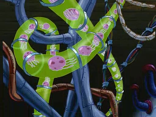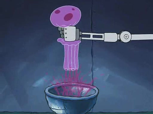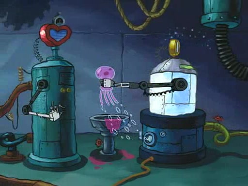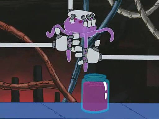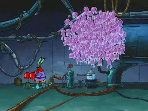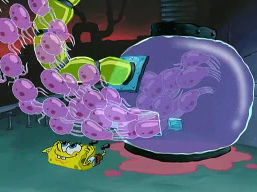 After several close encounters and strange events, No Name captures him in a jar much in the way that SpongeBob catches jellyfish. No Name then takes SpongeBob to a secret factory farm, where he discovers that Mr. Krabs is cruelly treating the jellyfish to increase profit.