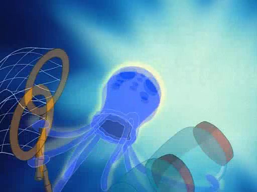 He then sees a very rare blue jellyfish which he calls "No Name," who is apparently the only jellyfish in the fields who was never caught, and compulsively tries to get him but to no avail.