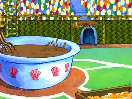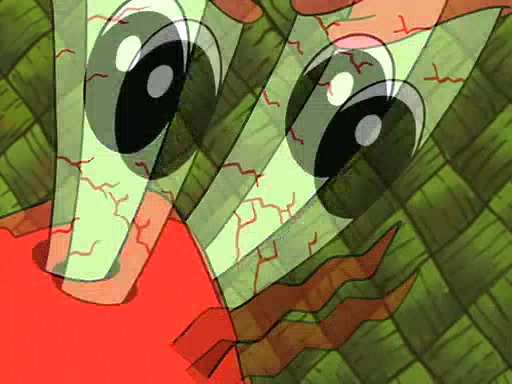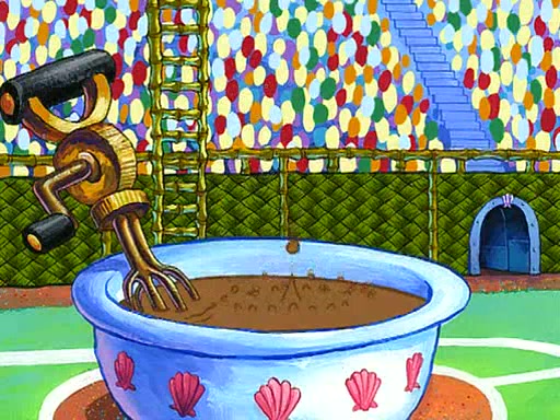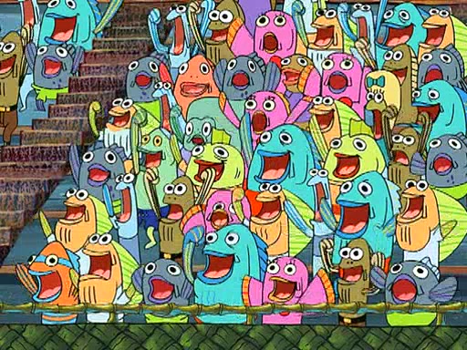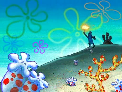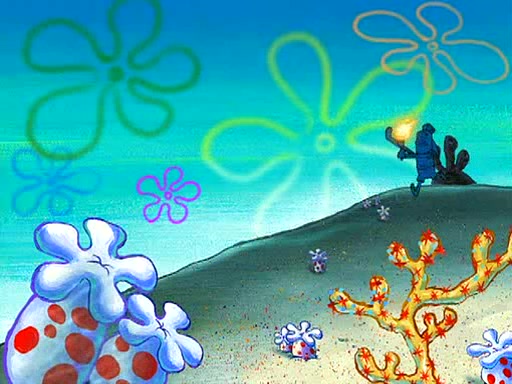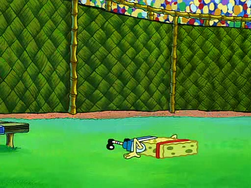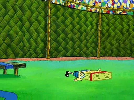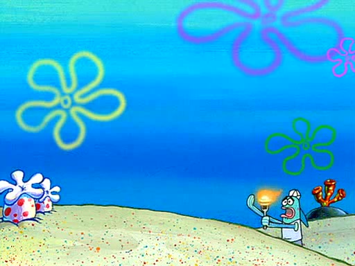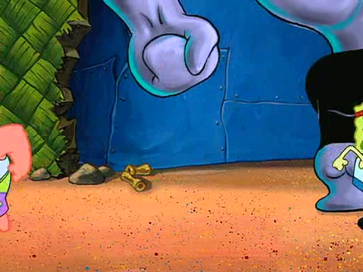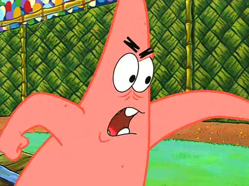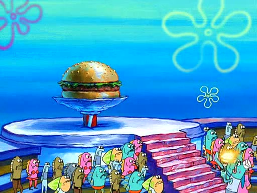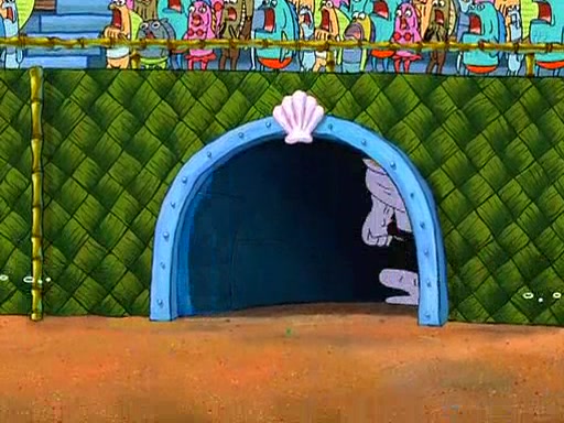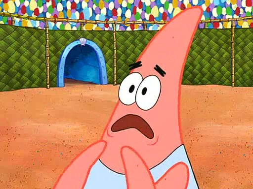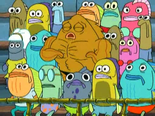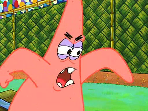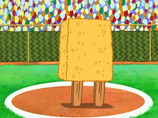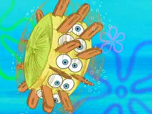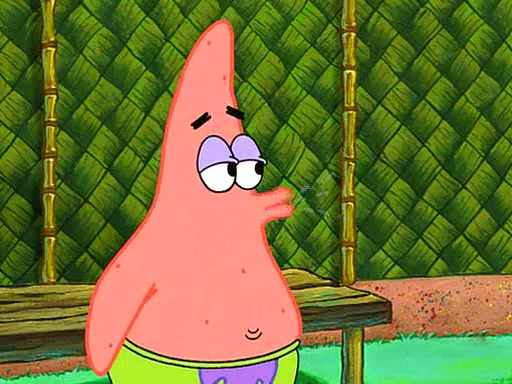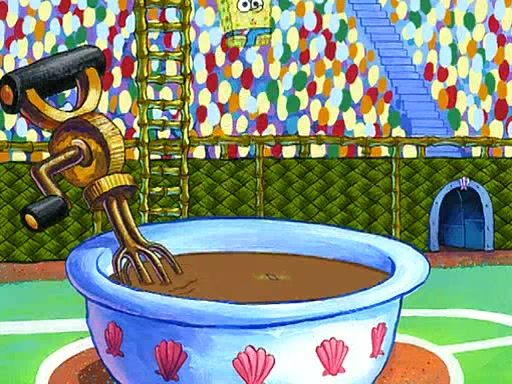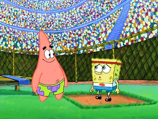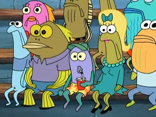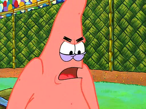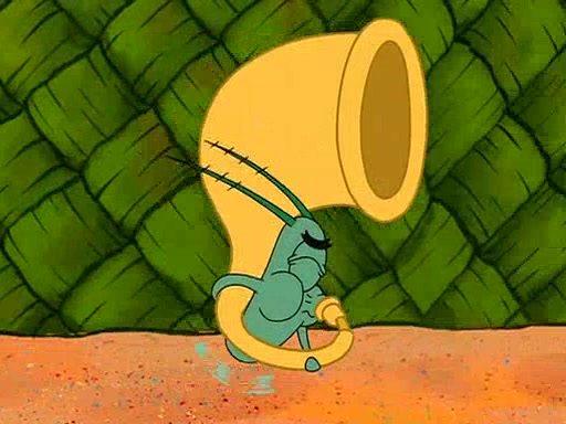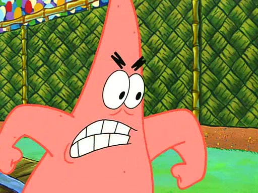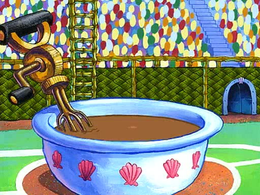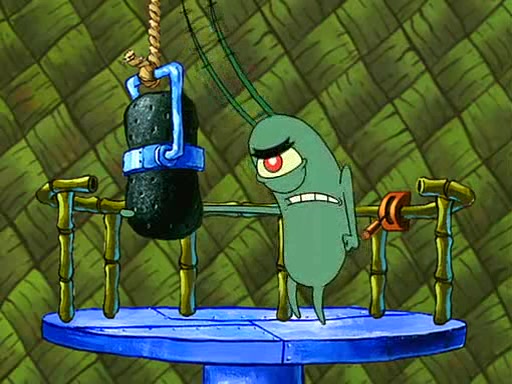 Plankton then appears and introduces his competitor, who at first appears to be a terrifyingly huge and muscular fish which the audience is even scared of, but he is only carrying the real contestant strapped on his back, who is none other than Patrick Star himself, who got a job at the Chum Bucket in order to compete, only having worked there for 5 minutes.