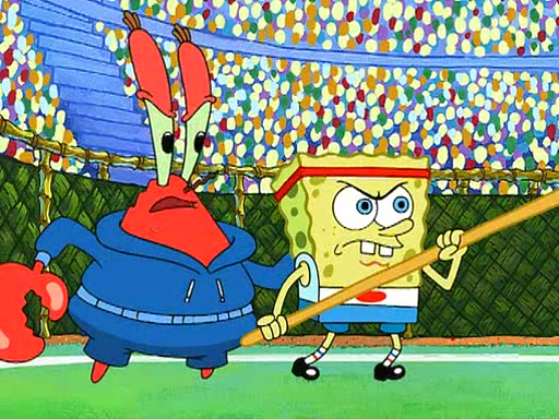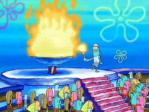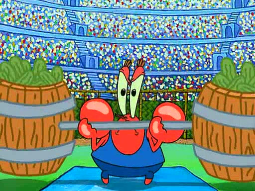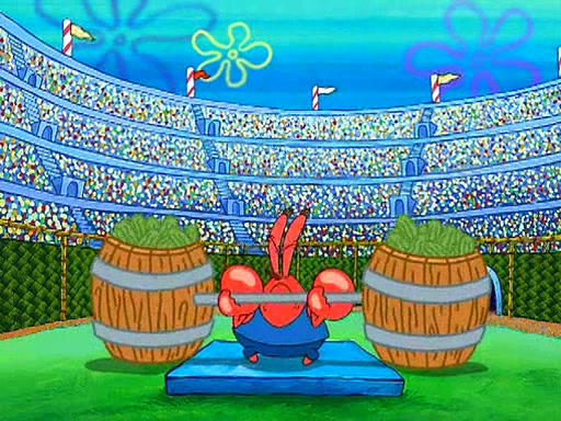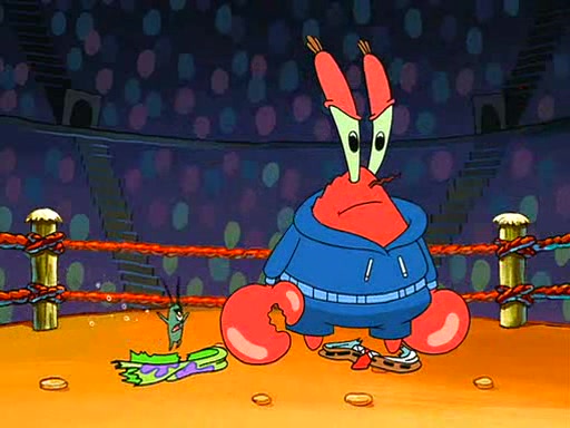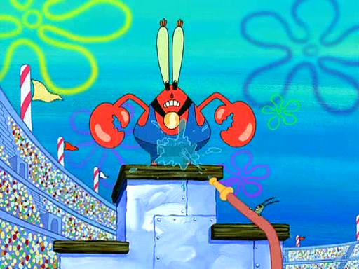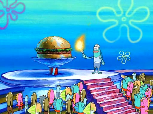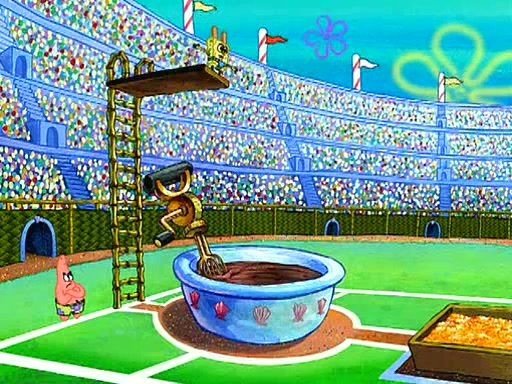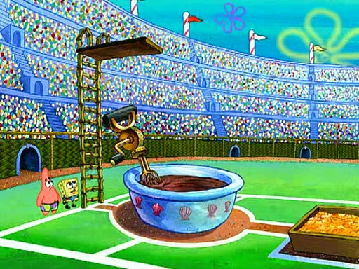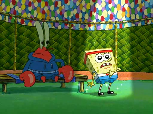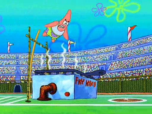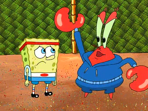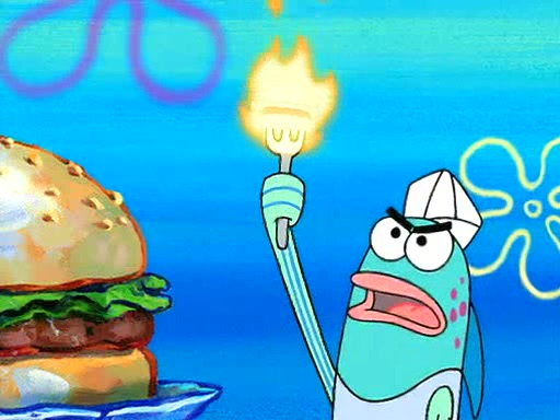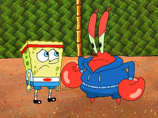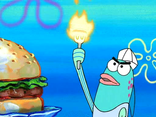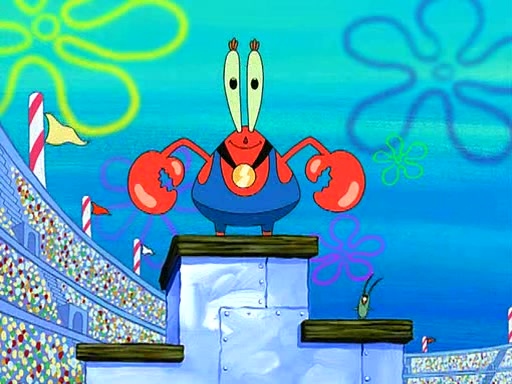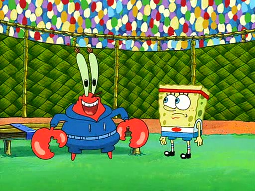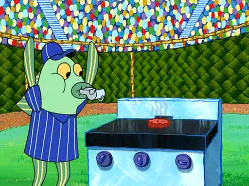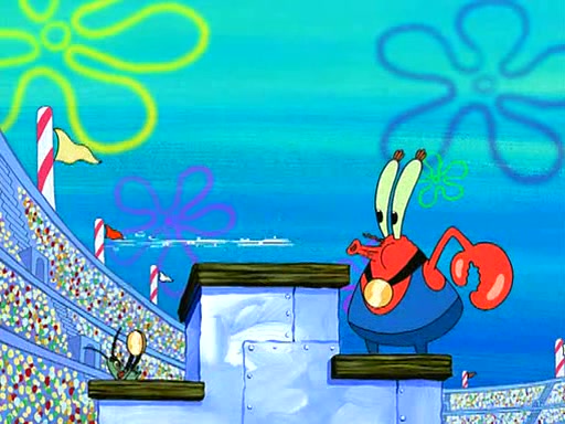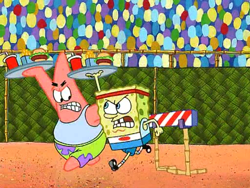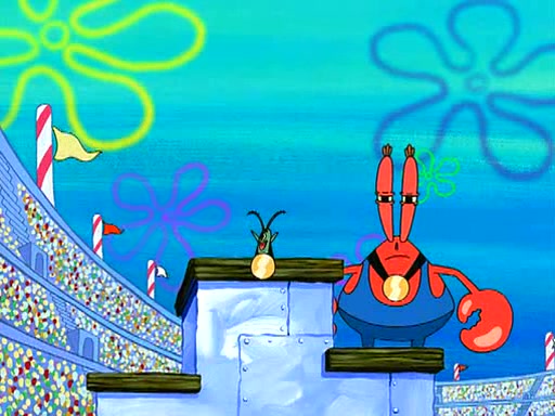 Mr. Krabs and Plankton had competed in the games for several years, each winning several medals. This year, SpongeBob is representing the Krusty Krab. While he is training, Patrick appears and asks SpongeBob what he's doing. SpongeBob responds that he's training for the games. Excited by the idea of a game, Patrick asks if he can play too. SpongeBob tells him that he has to be a fry cook to compete. Patrick says that it must be pretty easy to be a fry cook, which angers SpongeBob because he takes his job seriously. This begins a rivalry between the two.