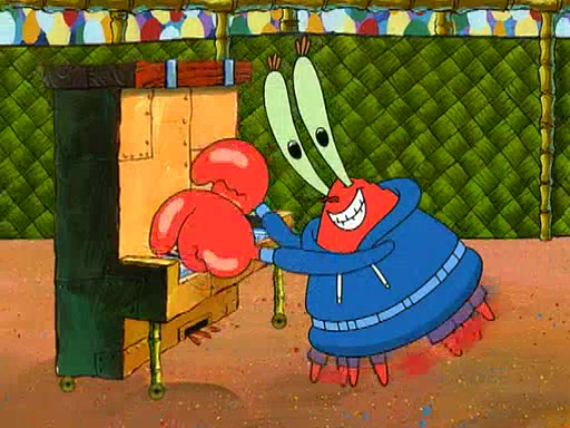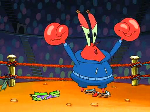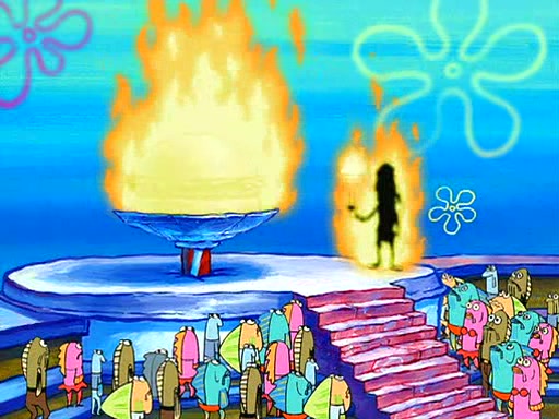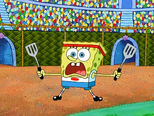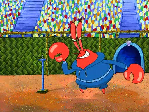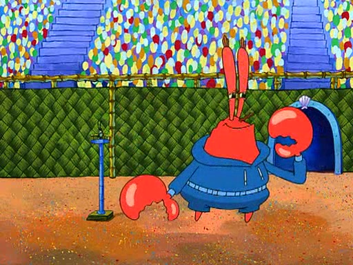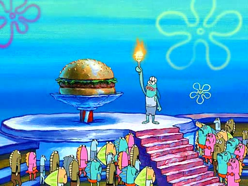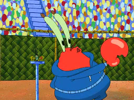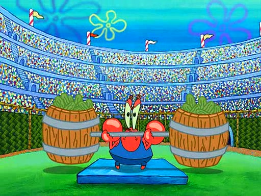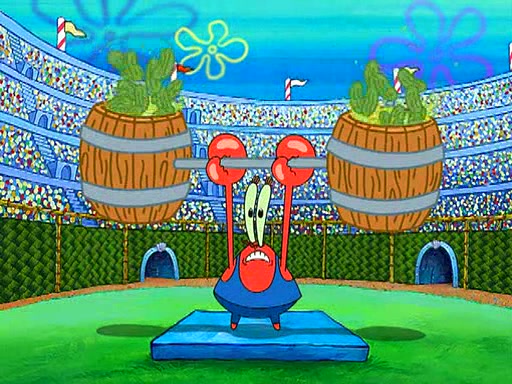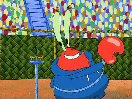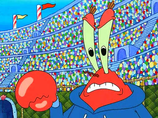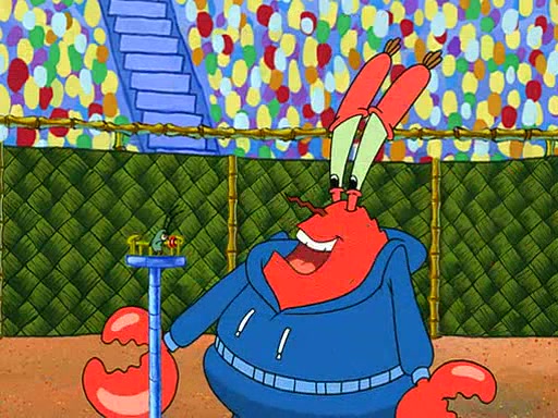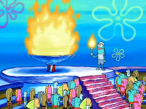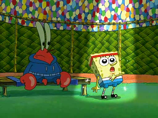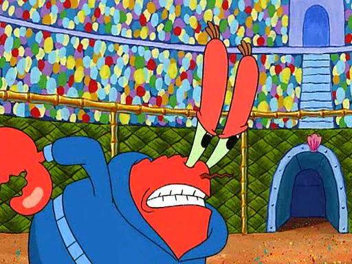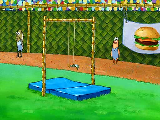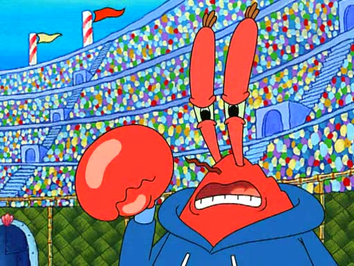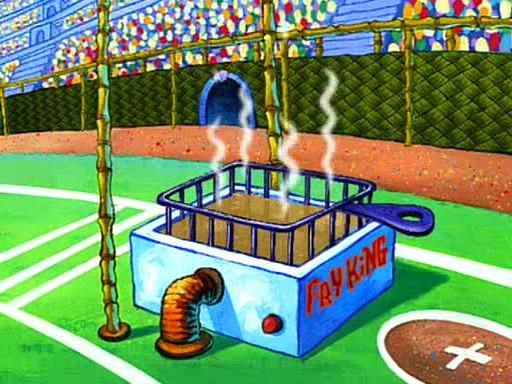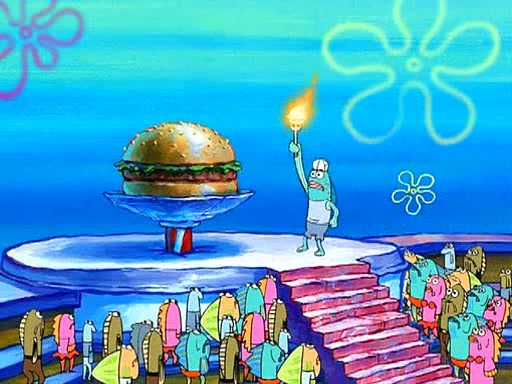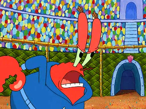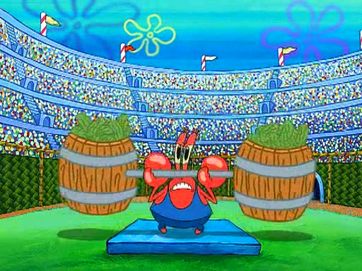 Mr. Krabs and Plankton had competed in the games for several years, each winning several medals. This year, SpongeBob is representing the Krusty Krab. While he is training, Patrick appears and asks SpongeBob what he's doing. SpongeBob responds that he's training for the games. Excited by the idea of a game, Patrick asks if he can play too. SpongeBob tells him that he has to be a fry cook to compete. Patrick says that it must be pretty easy to be a fry cook, which angers SpongeBob because he takes his job seriously. This begins a rivalry between the two.
