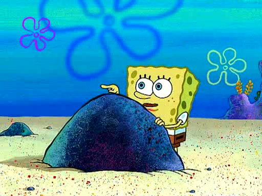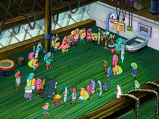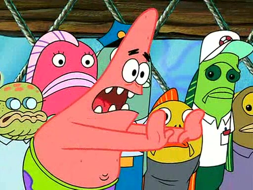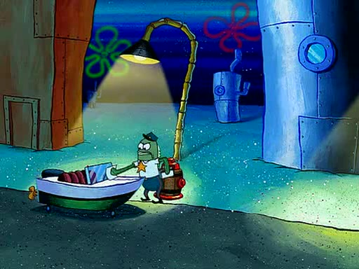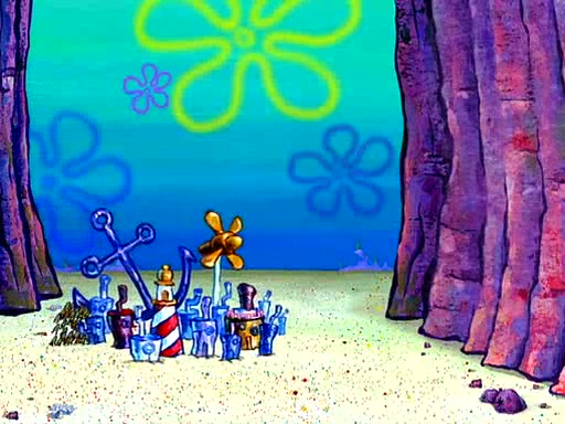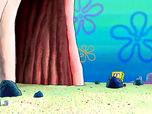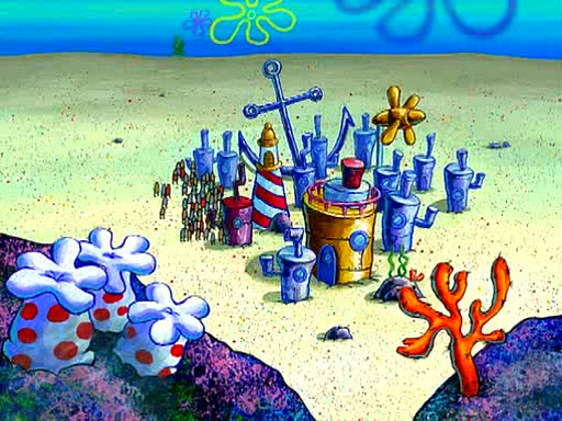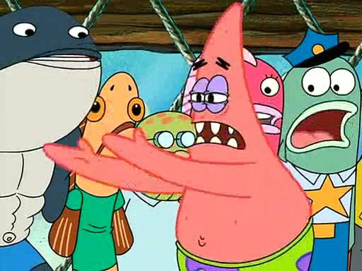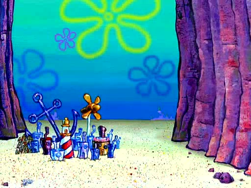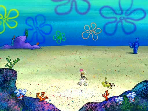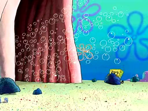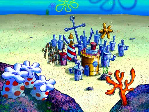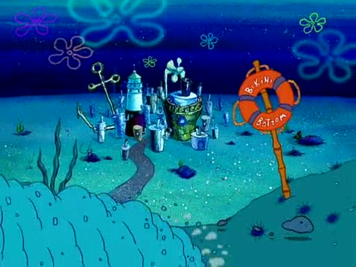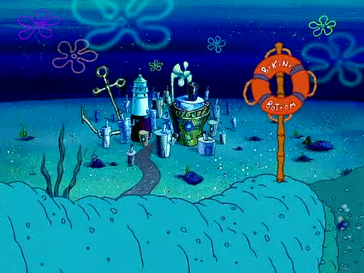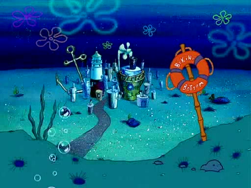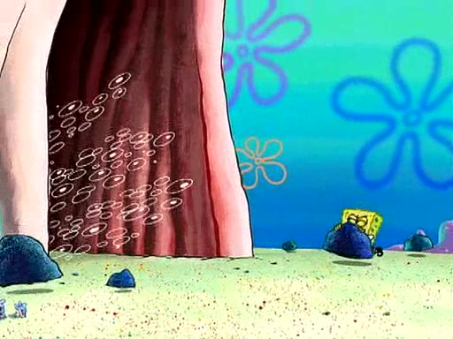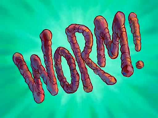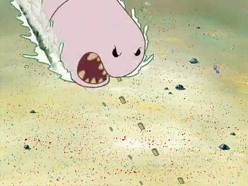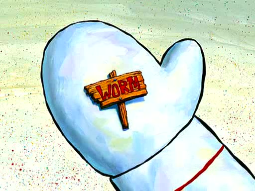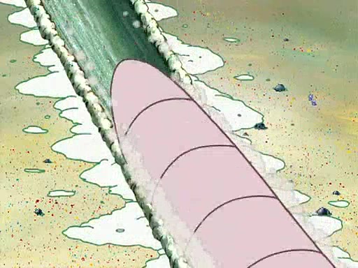 However, it is then shown that the people actually decided to go through with Patrick's idea to push Bikini Bottom somewhere else, and the defeated worm lands right on the city, destroying it and saying "Ow" as the episode ends.