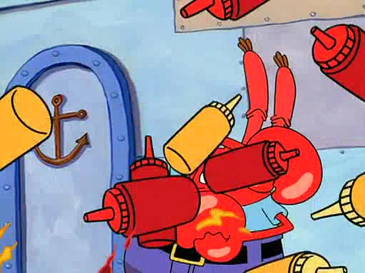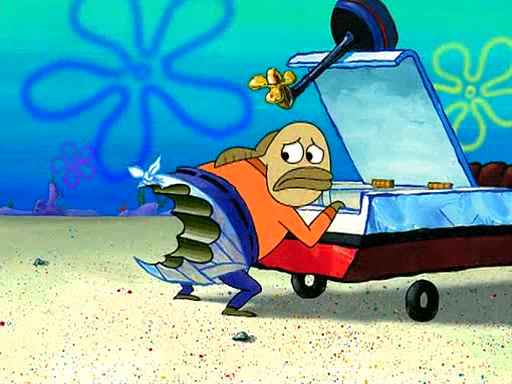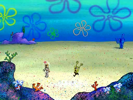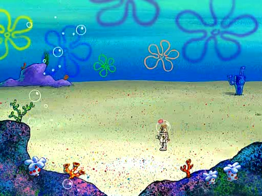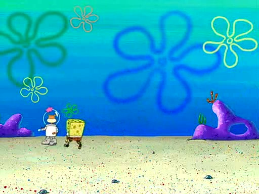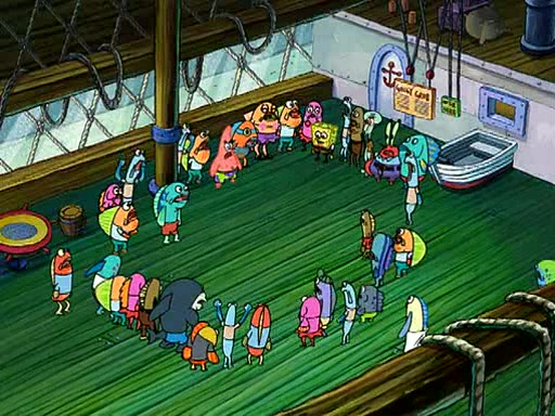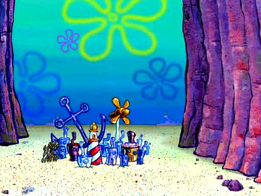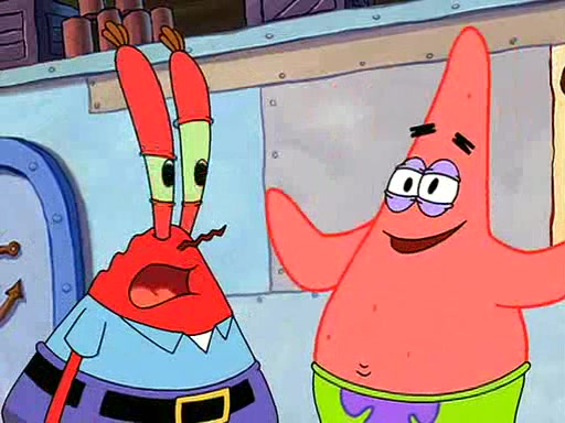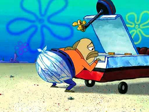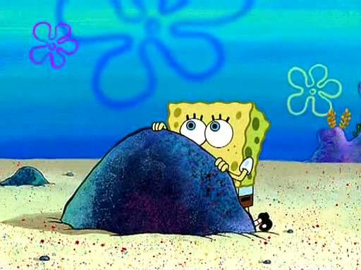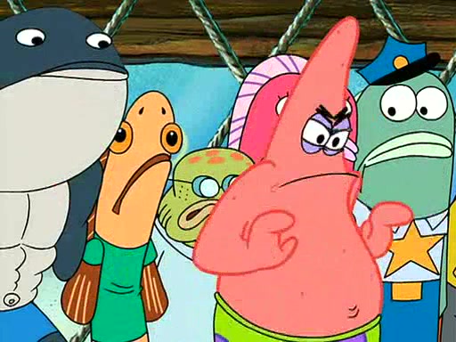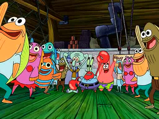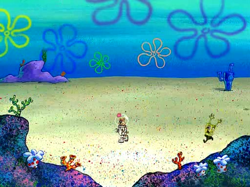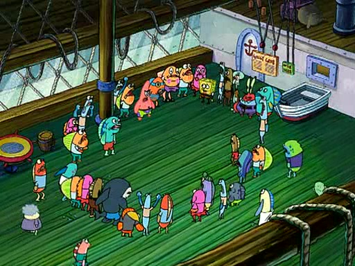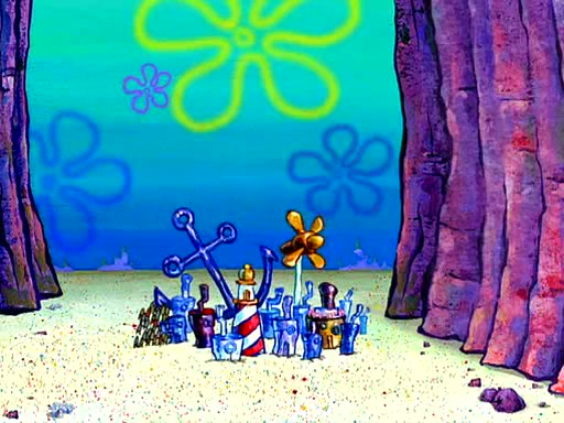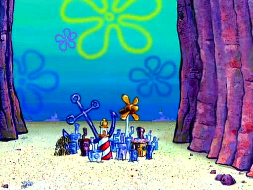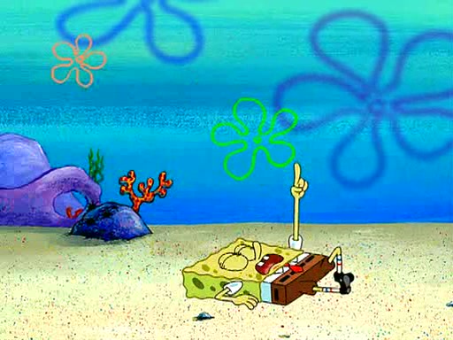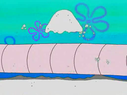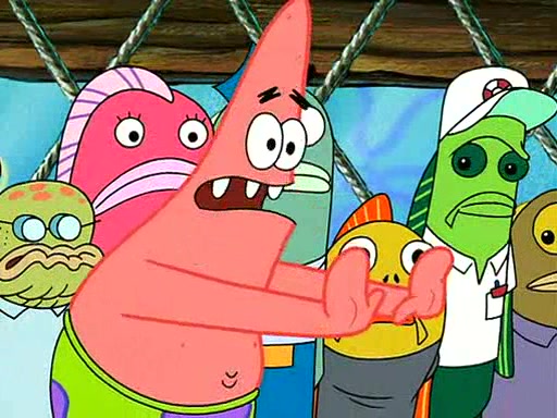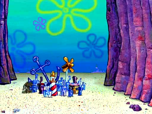 However, it is then shown that the people actually decided to go through with Patrick's idea to push Bikini Bottom somewhere else, and the defeated worm lands right on the city, destroying it and saying "Ow" as the episode ends.