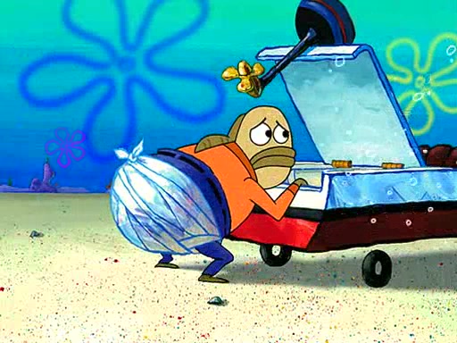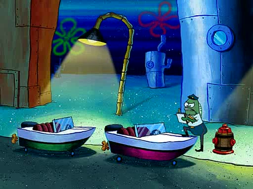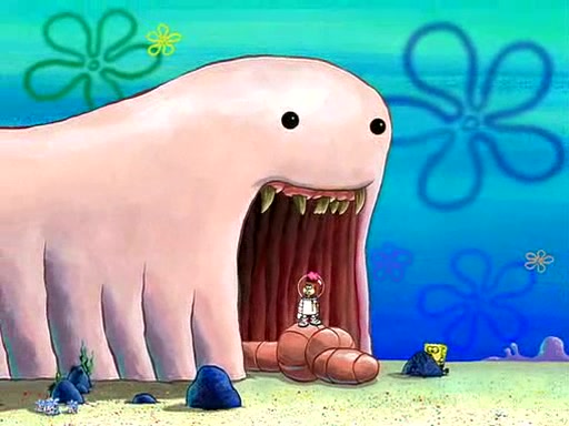 In the middle of the night, an Alaskan Bull Worm lurks into Bikini Bottom and causes havoc, destroying everything in sight. Soon it appears at SpongeBob's house and eats the pineapple. SpongeBob soon wakes up and the next day announces that it appeared at midnight eating everything. The Bikini Bottomites agree with this too and complain how it ate some of their belongings. They all try to plan a way to defeat this monster.