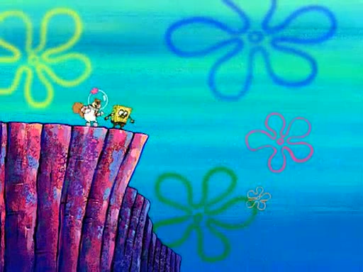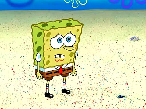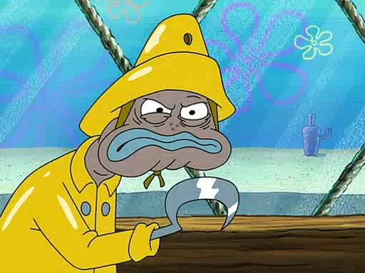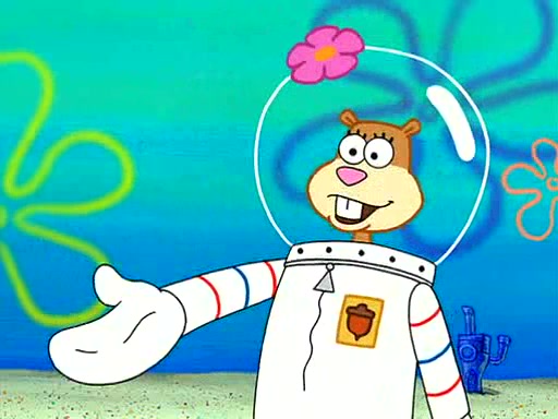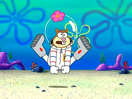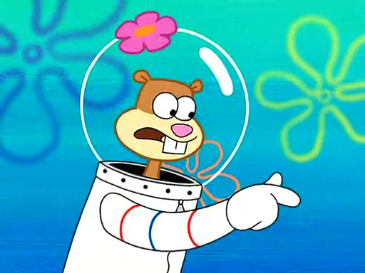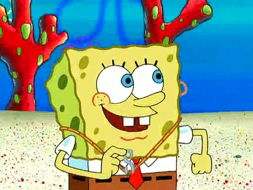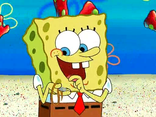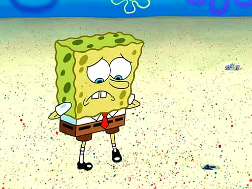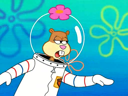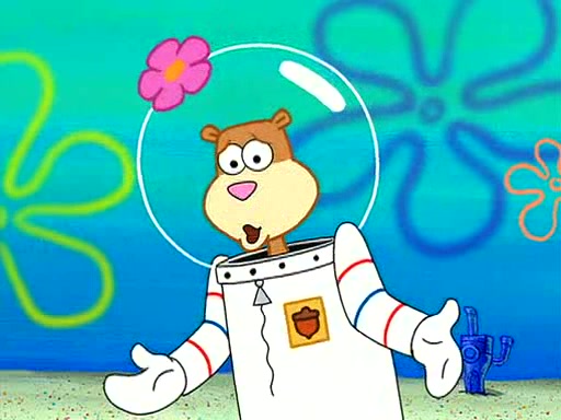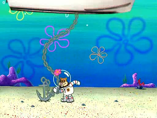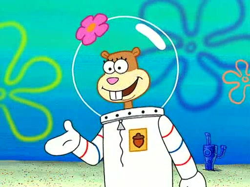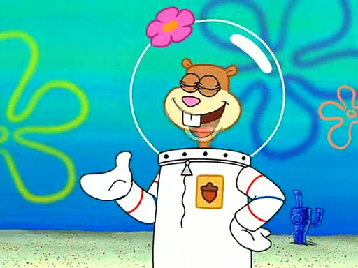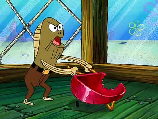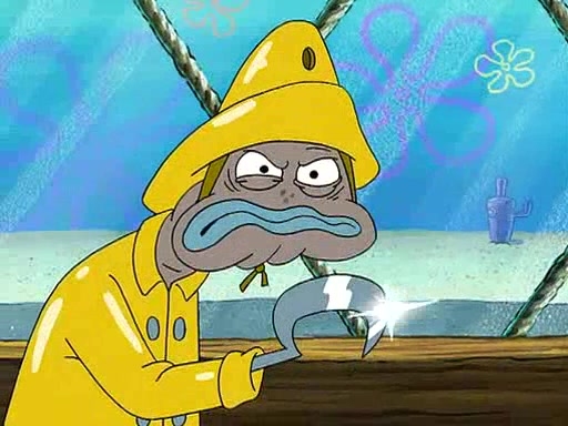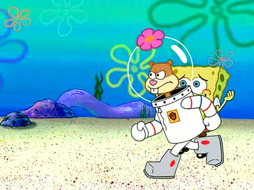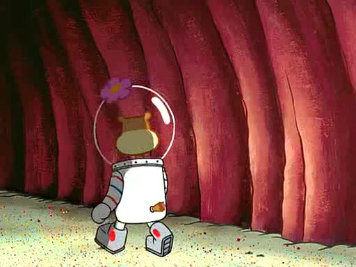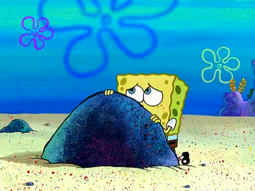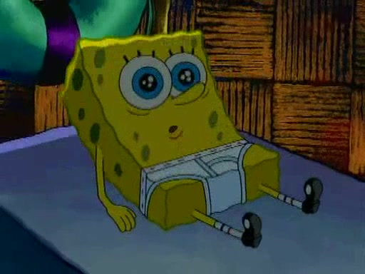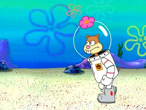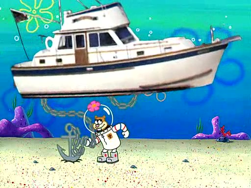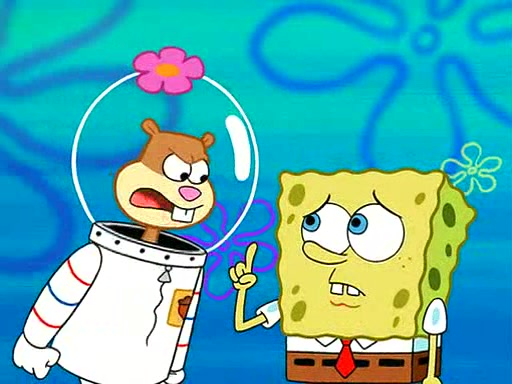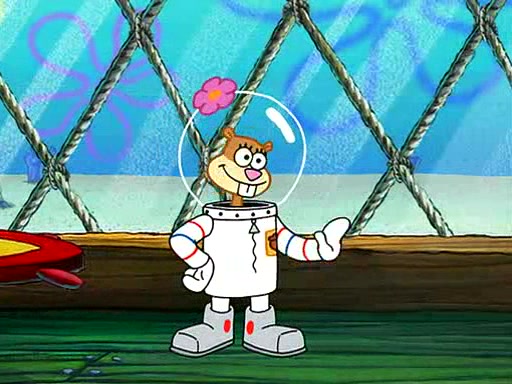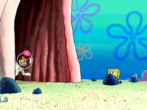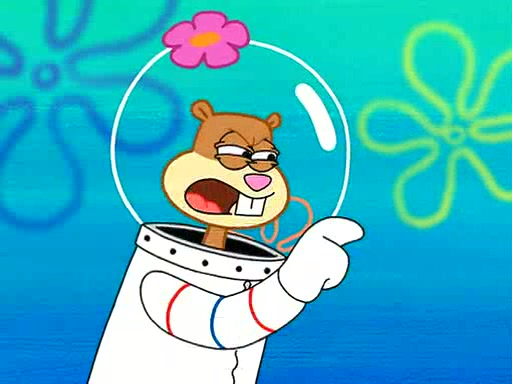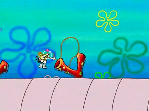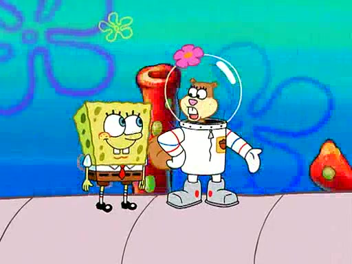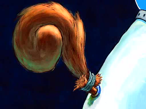 Patrick soon suggests moving the town to another location. But all the people disagree with this and Mr. Krabs suggests that there has to be someone tough enough who can take on the worm. An old man with a hook scrapes the window and looks like he's just the man to fight it, but is revealed to be a weak man who actually needed to go to the restroom. Sandy decides to fight the monster, as revenge for stealing her tail. SpongeBob tries to persuade her not to go near it, but she keeps on going at his every attempt because she says that she is strong. SpongeBob starts crying and tells her that he doesn't want her to be killed, but Sandy doesn't give in. So she continues walking along with SpongeBob trying to get her to turn back, until they reach a cave that Sandy identifies as the worm's lair. She goes inside the cave, while SpongeBob hides behind a small rock, panicking, and Sandy keeps on coming out, telling SpongeBob good news that she's winning. He keeps trying to tell her something but she doesn't give him enough time and goes back in. When she comes out on the "worm," she states that she won and she even reclaimed her tail. However, SpongeBob reveals that she didn't defeat the worm, but she defeated its tongue, and the entire cave is the worm. Upon realizing this, Sandy begins calm then screams "RUN FOR YOUR LIFE!!!!!" as the worm begins chasing them. SpongeBob and Sandy run, and during their attempt to escape, SpongeBob reveals that he was right and Sandy was never strong enough for the worm, and she admits it after SpongeBob persuades her to say it. Suddenly, they escape the worm by using a paper clip and a piece of string which SpongeBob said was Sandy's tail earlier in the episode, and uses it this time to grapple onto a tree, and Sandy says, "We should be nice and safe up here" while they balance on the worm's back, but then the worm falls off a cliff. SpongeBob and Sandy scream and make it off the worm's tail to the land and think they have saved the town, and head off to tell everyone.