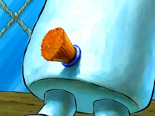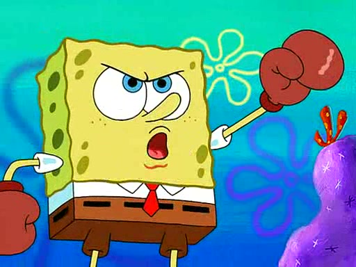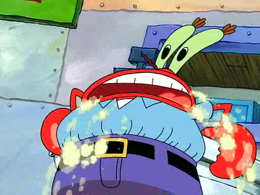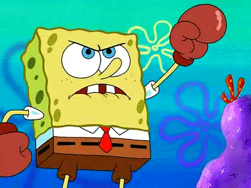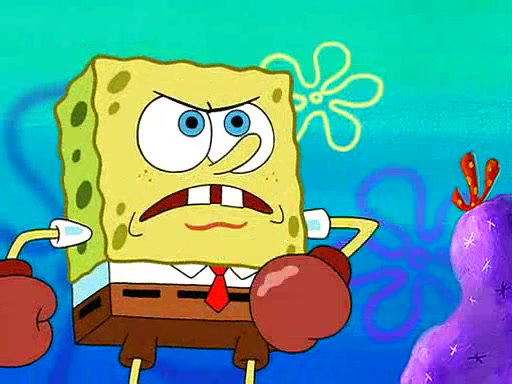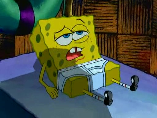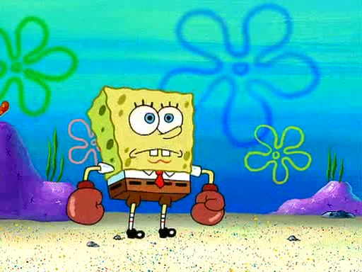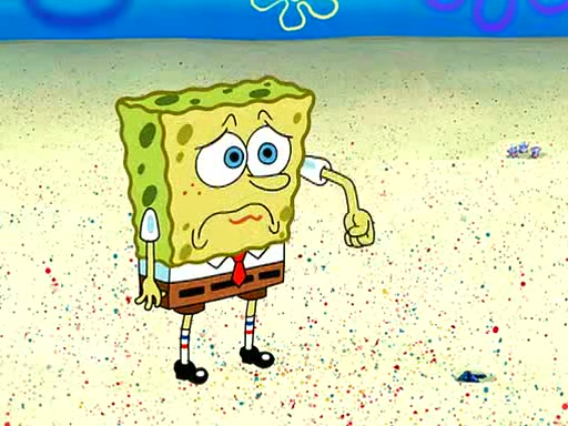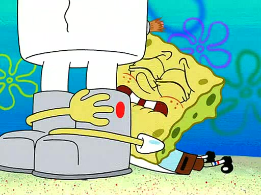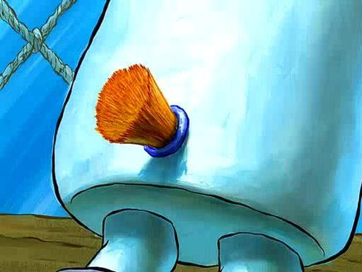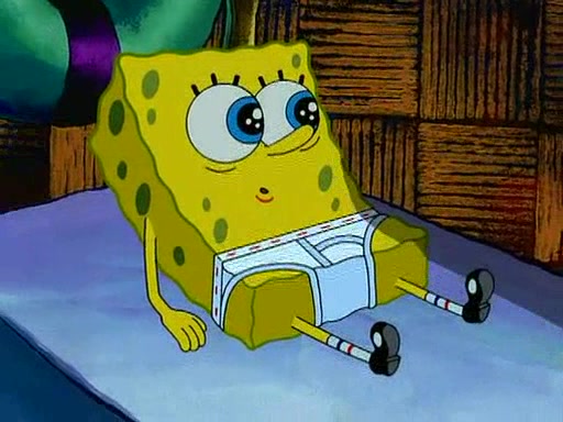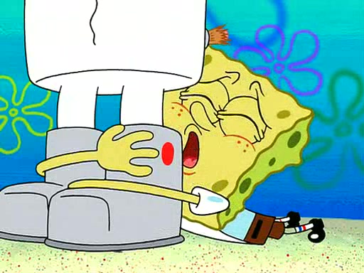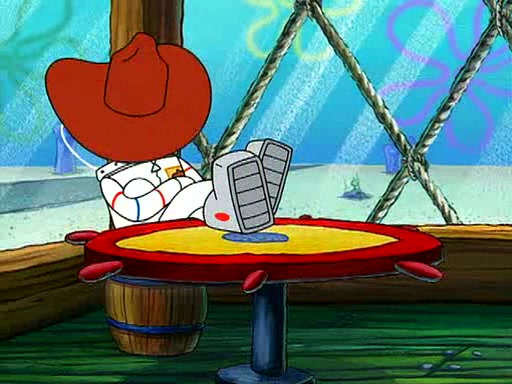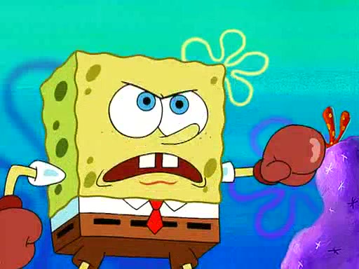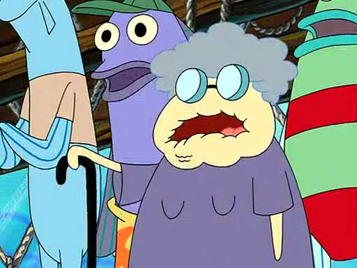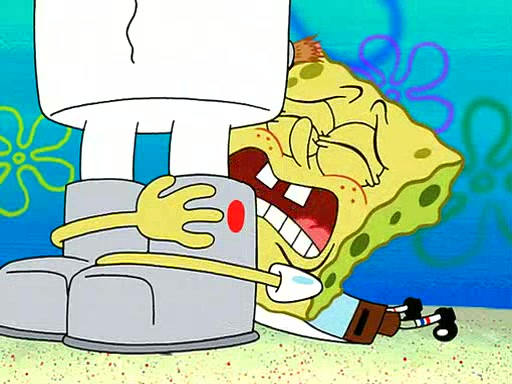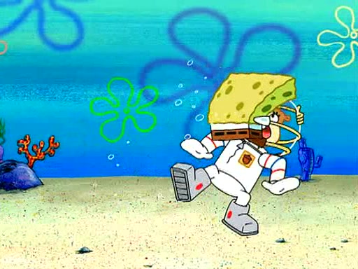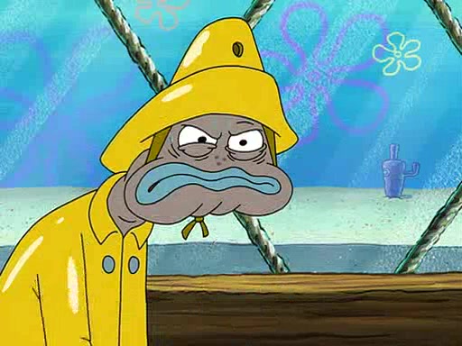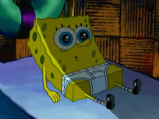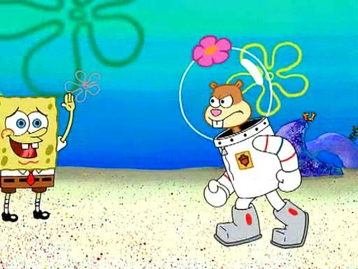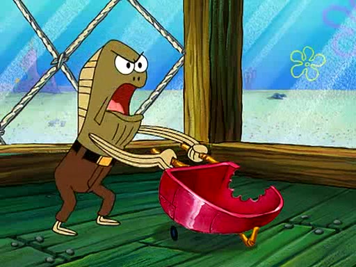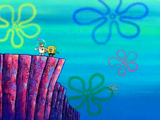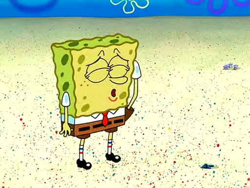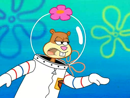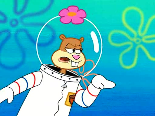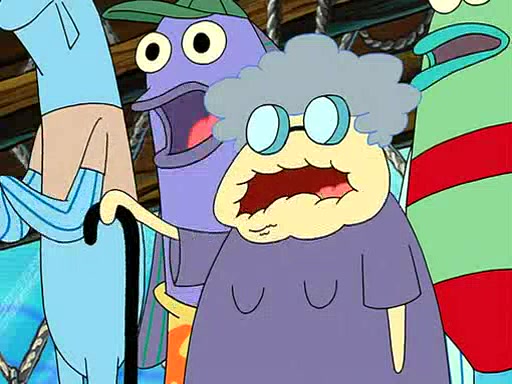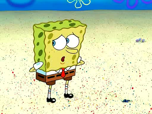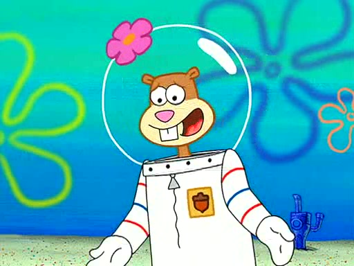 Patrick soon suggests moving the town to another location. But all the people disagree with this and Mr. Krabs suggests that there has to be someone tough enough who can take on the worm. An old man with a hook scrapes the window and looks like he's just the man to fight it, but is revealed to be a weak man who actually needed to go to the restroom. Sandy decides to fight the monster, as revenge for stealing her tail. SpongeBob tries to persuade her not to go near it, but she keeps on going at his every attempt because she says that she is strong. SpongeBob starts crying and tells her that he doesn't want her to be killed, but Sandy doesn't give in. So she continues walking along with SpongeBob trying to get her to turn back, until they reach a cave that Sandy identifies as the worm's lair. She goes inside the cave, while SpongeBob hides behind a small rock, panicking, and Sandy keeps on coming out, telling SpongeBob good news that she's winning. He keeps trying to tell her something but she doesn't give him enough time and goes back in. When she comes out on the "worm," she states that she won and she even reclaimed her tail. However, SpongeBob reveals that she didn't defeat the worm, but she defeated its tongue, and the entire cave is the worm. Upon realizing this, Sandy begins calm then screams "RUN FOR YOUR LIFE!!!!!" as the worm begins chasing them. SpongeBob and Sandy run, and during their attempt to escape, SpongeBob reveals that he was right and Sandy was never strong enough for the worm, and she admits it after SpongeBob persuades her to say it. Suddenly, they escape the worm by using a paper clip and a piece of string which SpongeBob said was Sandy's tail earlier in the episode, and uses it this time to grapple onto a tree, and Sandy says, "We should be nice and safe up here" while they balance on the worm's back, but then the worm falls off a cliff. SpongeBob and Sandy scream and make it off the worm's tail to the land and think they have saved the town, and head off to tell everyone.