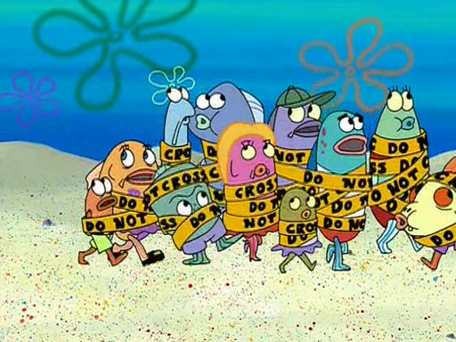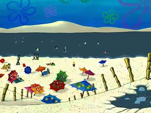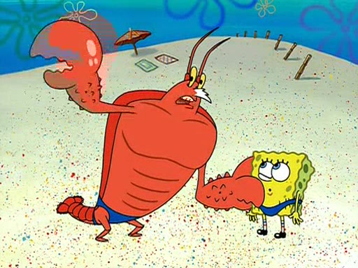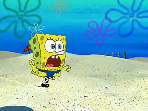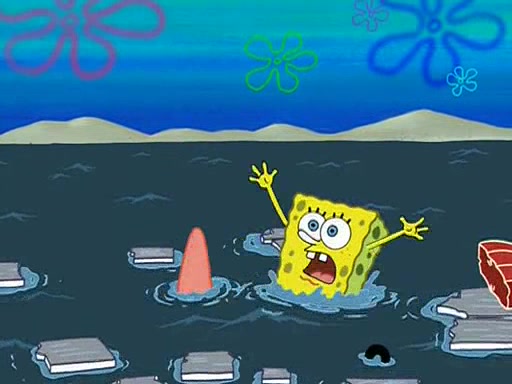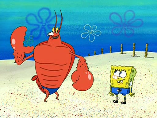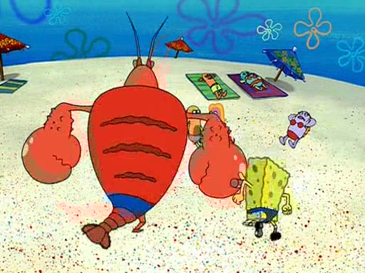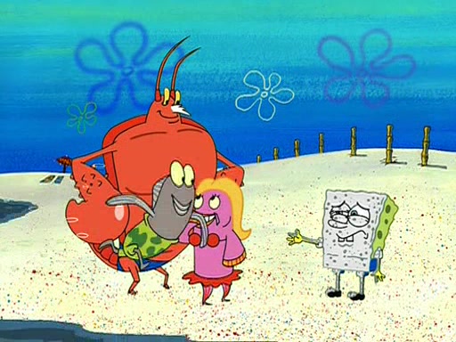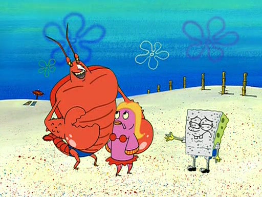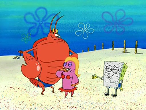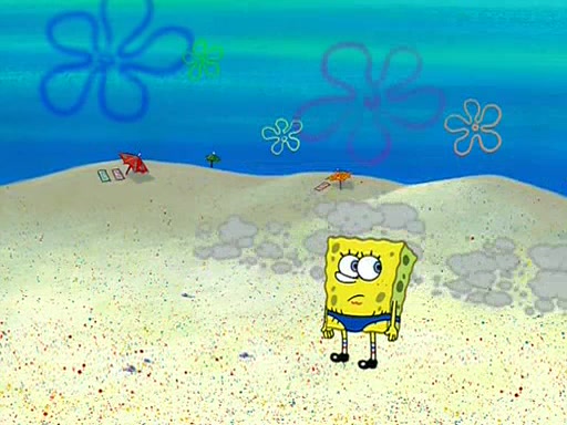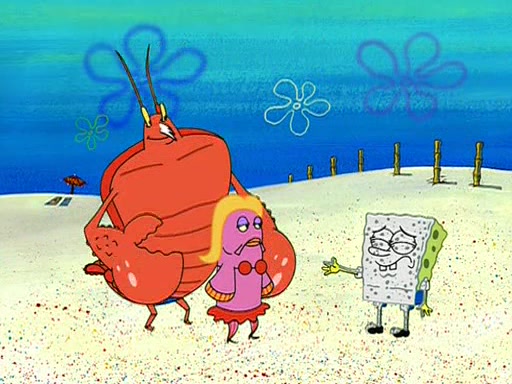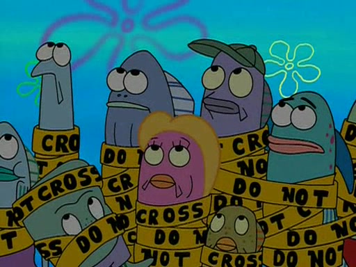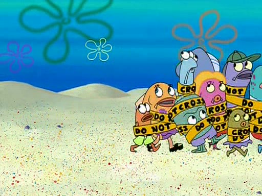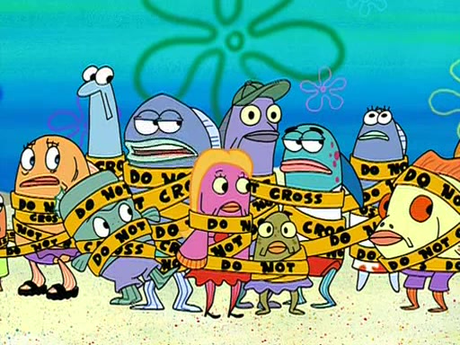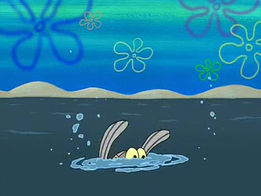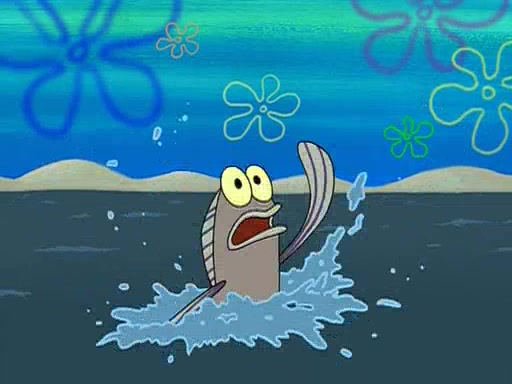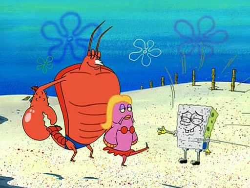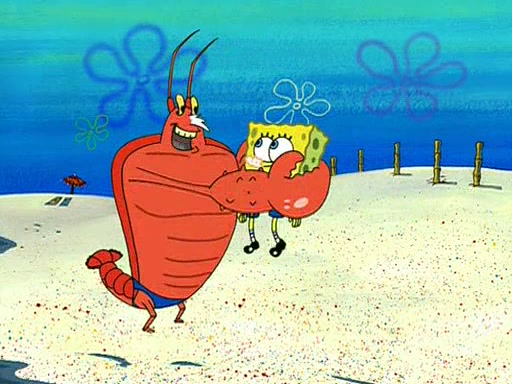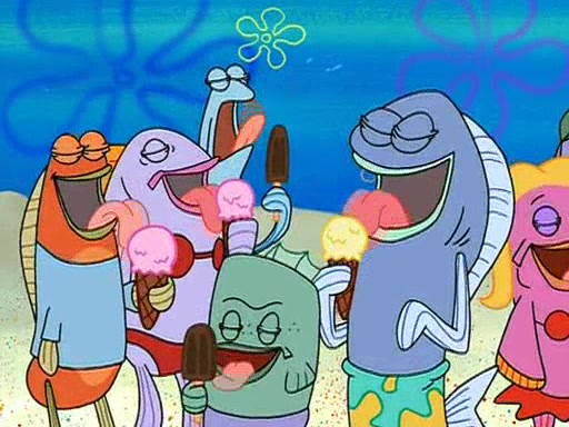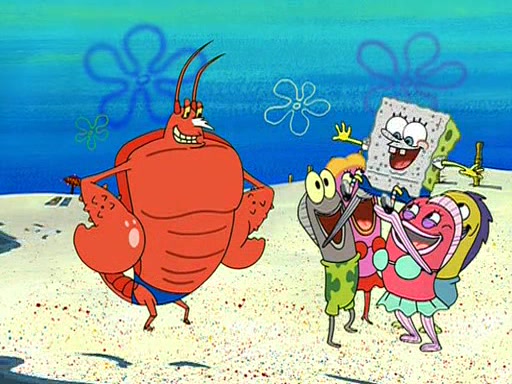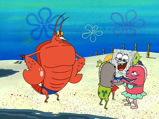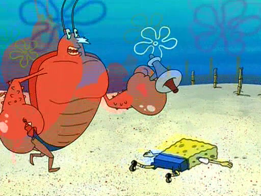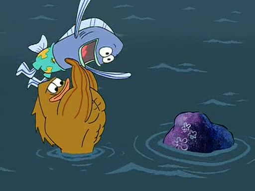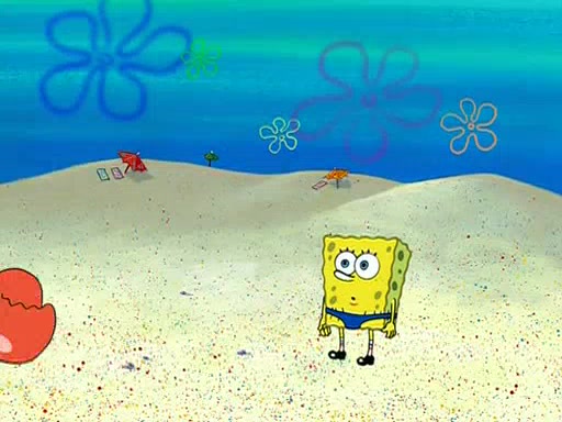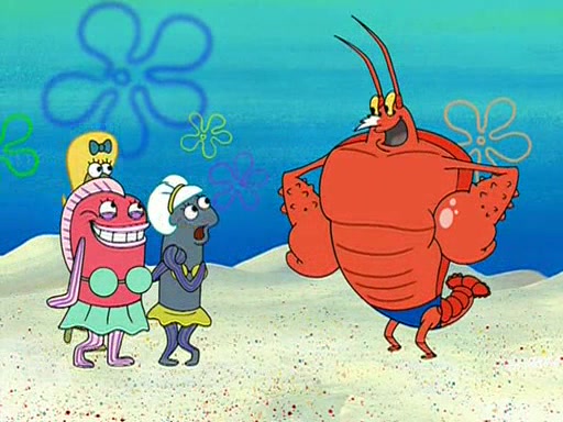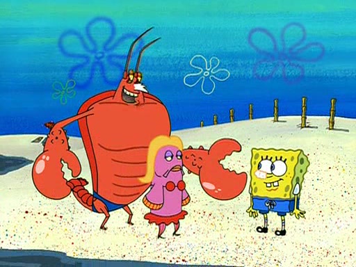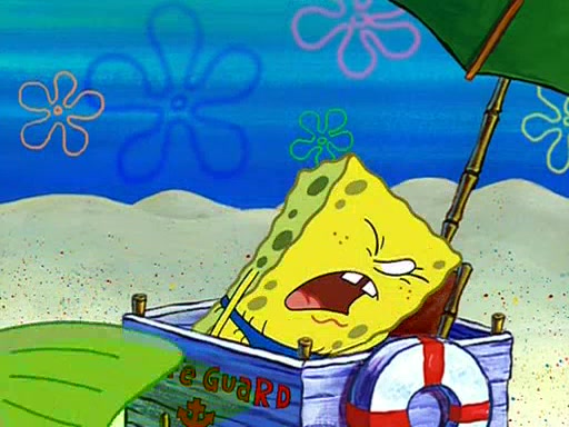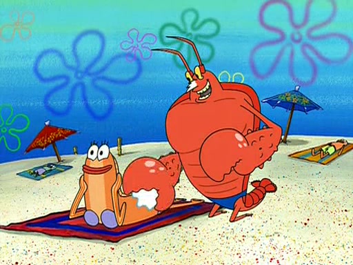 As a lifeguard, SpongeBob becomes very popular and does many fun activities. However, when Larry hears Bill drowning and saves him, SpongeBob realizes that being a lifeguard is much more than giving ice cream and sitting in a tower, but that it also means that he has to guard other people's lives. Larry suddenly leaves for a tanning booth, leaving SpongeBob, who can't swim, in charge of the beach. SpongeBob then imagines all the fish dead in a graveyard in the goo, and then alerts all the fish to an "emergency" that is not even going on. When everybody asks, confused as to what the "emergency" is, SpongeBob, forgetting that sharks are sea animals too, improvises and states that the "emergency" is a shark attack. A shark family then says that they are the ones he is referring to. Then he announces that there is a sea monster, but a sea monster then emerges from the crowd, slapping SpongeBob with his tail fin after explaining how impolite he is to sea monsters and everybody then knows that there is no emergency.