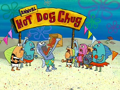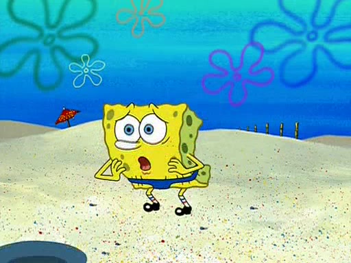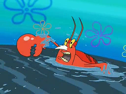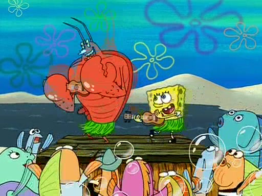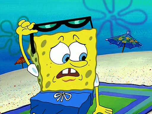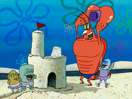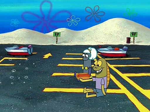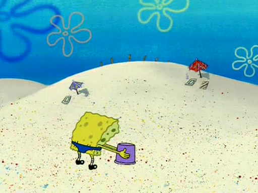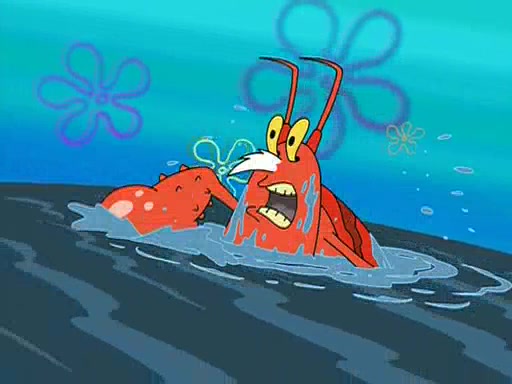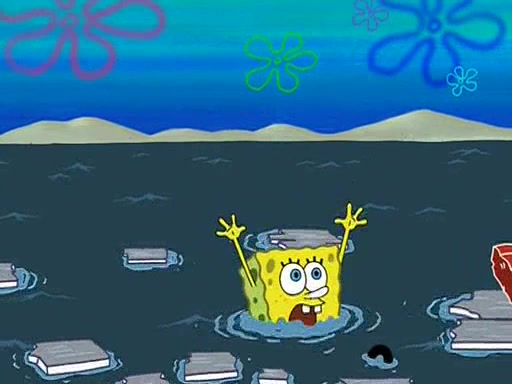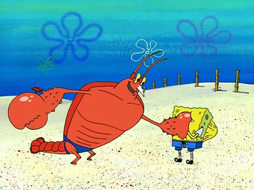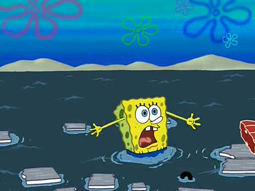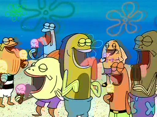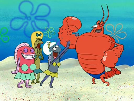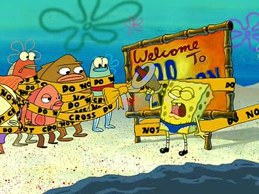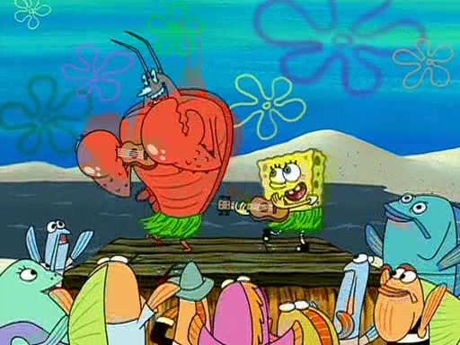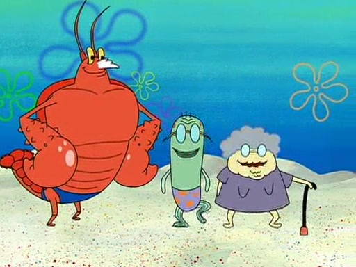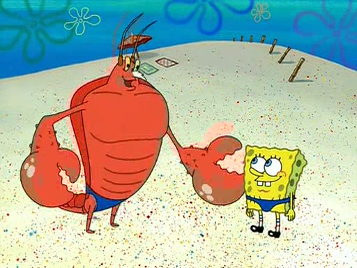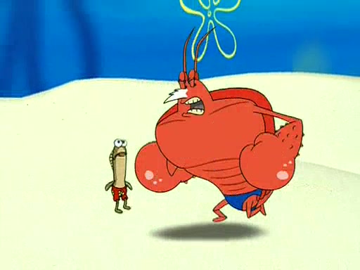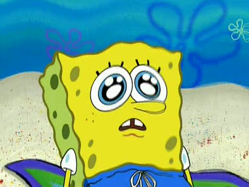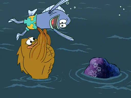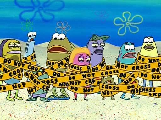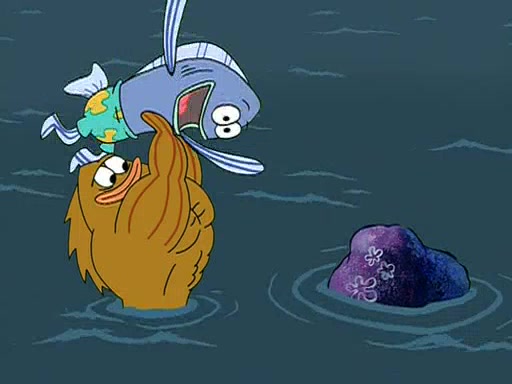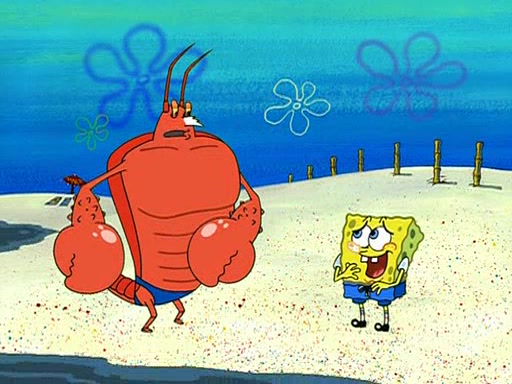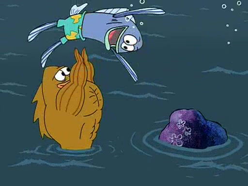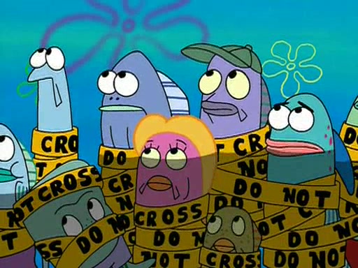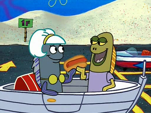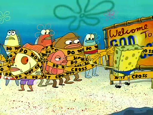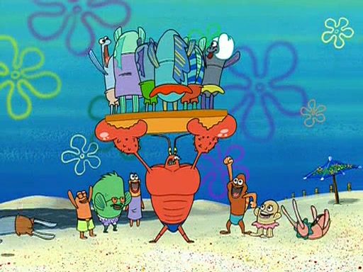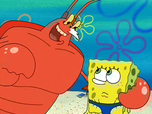 As a lifeguard, SpongeBob becomes very popular and does many fun activities. However, when Larry hears Bill drowning and saves him, SpongeBob realizes that being a lifeguard is much more than giving ice cream and sitting in a tower, but that it also means that he has to guard other people's lives. Larry suddenly leaves for a tanning booth, leaving SpongeBob, who can't swim, in charge of the beach. SpongeBob then imagines all the fish dead in a graveyard in the goo, and then alerts all the fish to an "emergency" that is not even going on. When everybody asks, confused as to what the "emergency" is, SpongeBob, forgetting that sharks are sea animals too, improvises and states that the "emergency" is a shark attack. A shark family then says that they are the ones he is referring to. Then he announces that there is a sea monster, but a sea monster then emerges from the crowd, slapping SpongeBob with his tail fin after explaining how impolite he is to sea monsters and everybody then knows that there is no emergency.