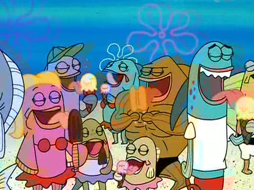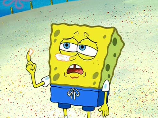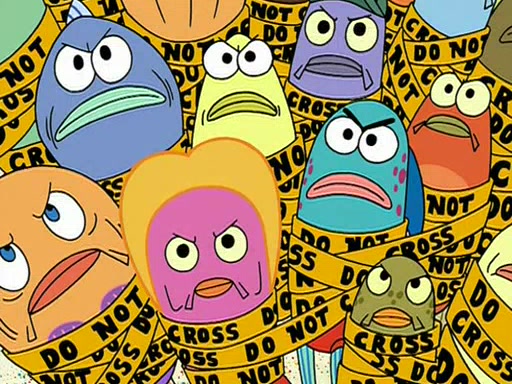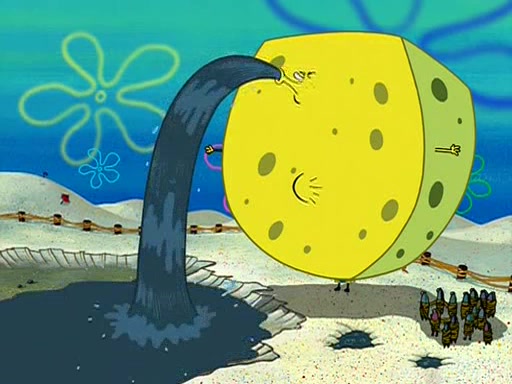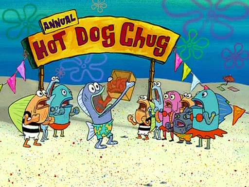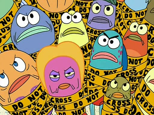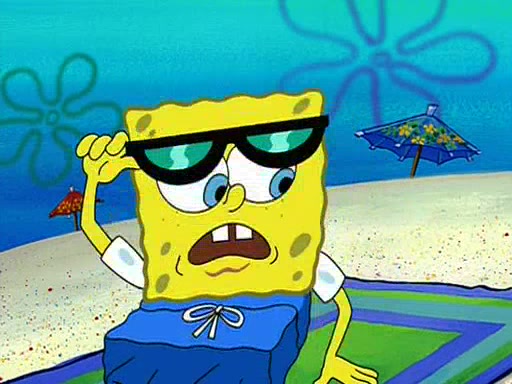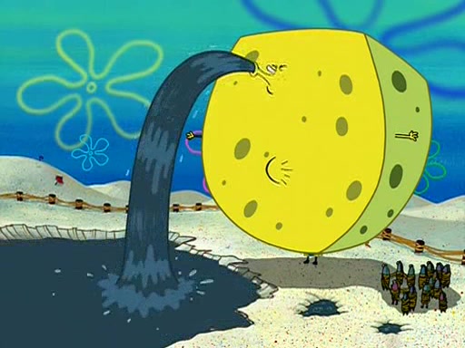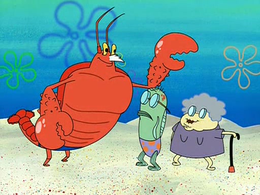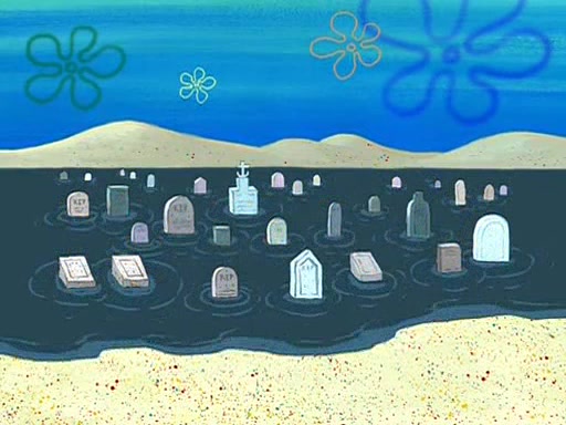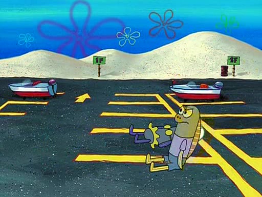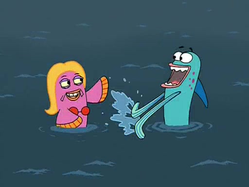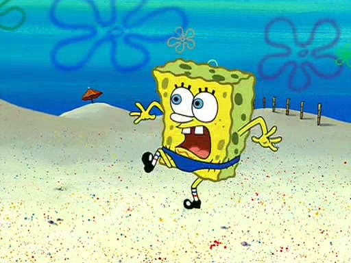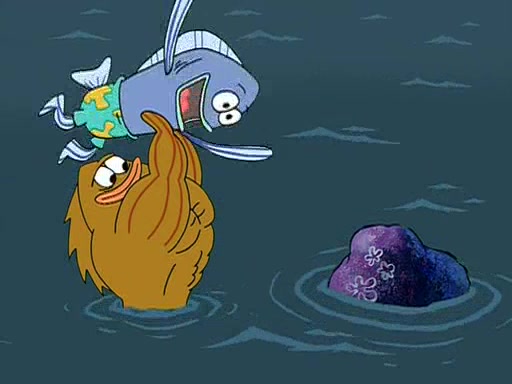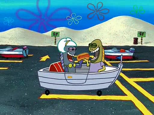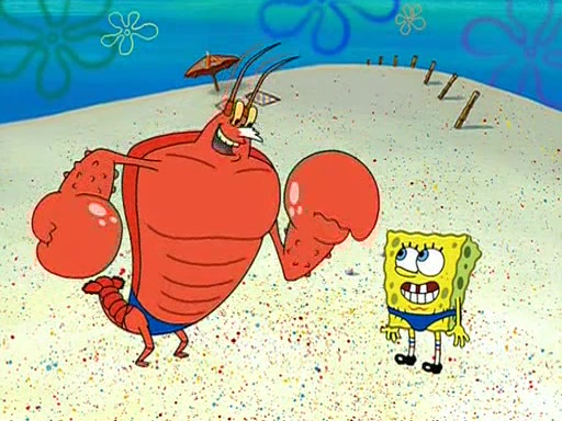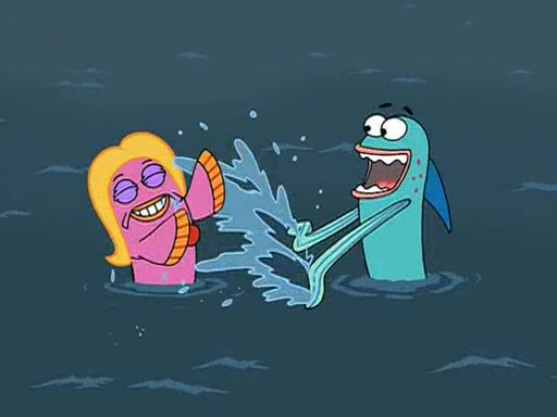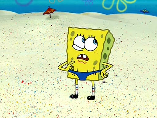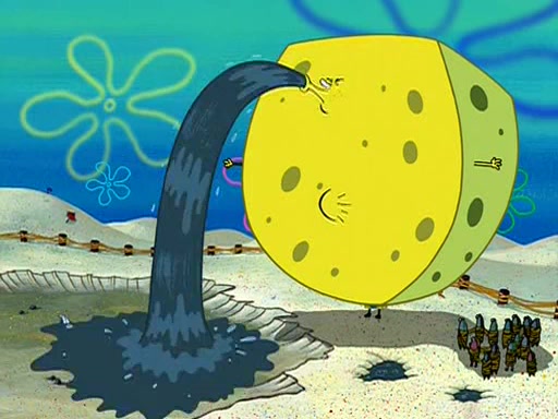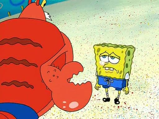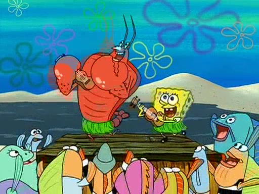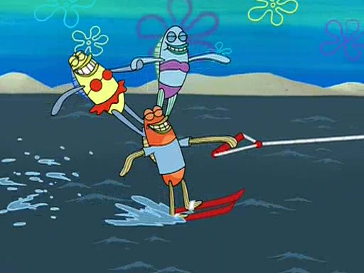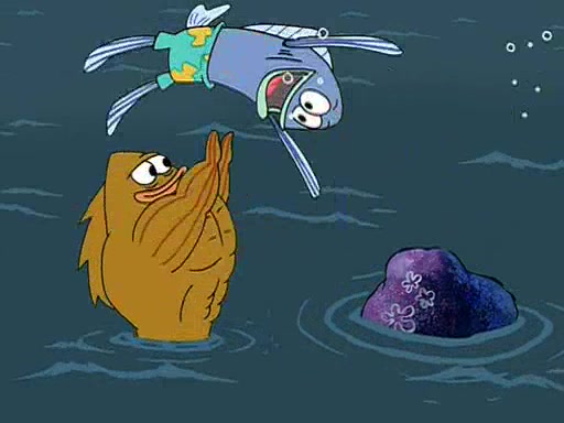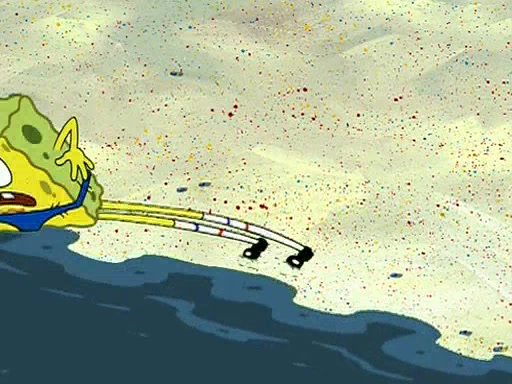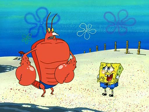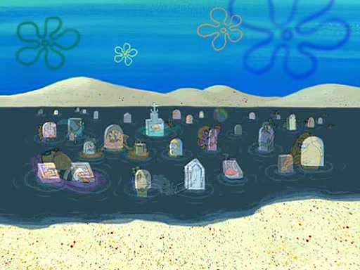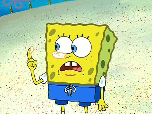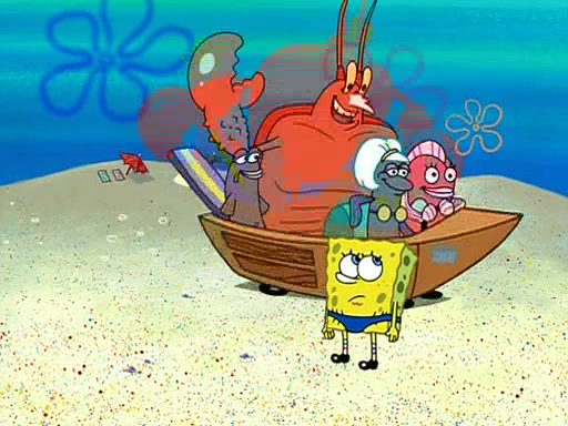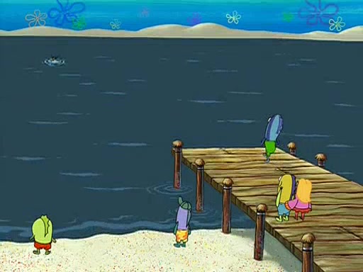 As a lifeguard, SpongeBob becomes very popular and does many fun activities. However, when Larry hears Bill drowning and saves him, SpongeBob realizes that being a lifeguard is much more than giving ice cream and sitting in a tower, but that it also means that he has to guard other people's lives. Larry suddenly leaves for a tanning booth, leaving SpongeBob, who can't swim, in charge of the beach. SpongeBob then imagines all the fish dead in a graveyard in the goo, and then alerts all the fish to an "emergency" that is not even going on. When everybody asks, confused as to what the "emergency" is, SpongeBob, forgetting that sharks are sea animals too, improvises and states that the "emergency" is a shark attack. A shark family then says that they are the ones he is referring to. Then he announces that there is a sea monster, but a sea monster then emerges from the crowd, slapping SpongeBob with his tail fin after explaining how impolite he is to sea monsters and everybody then knows that there is no emergency.