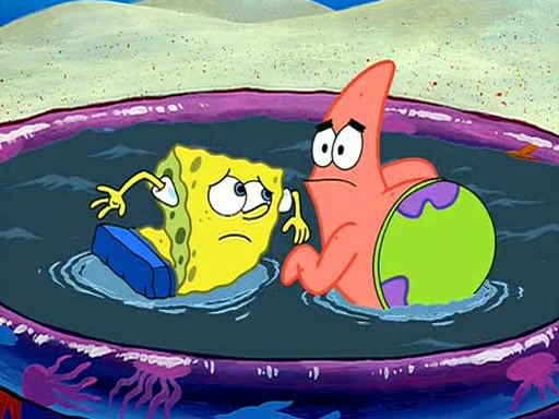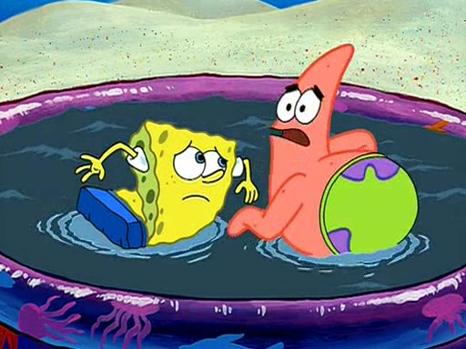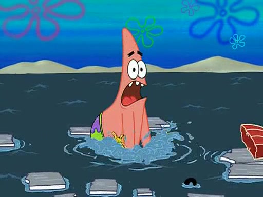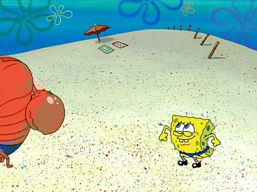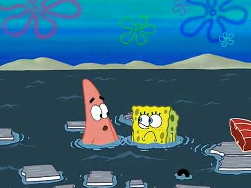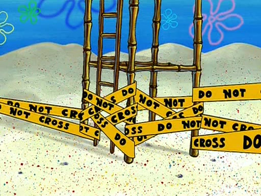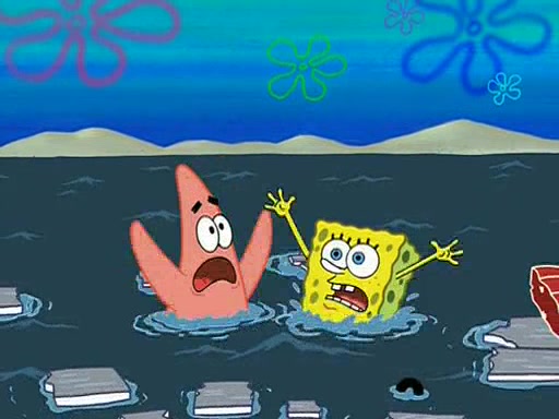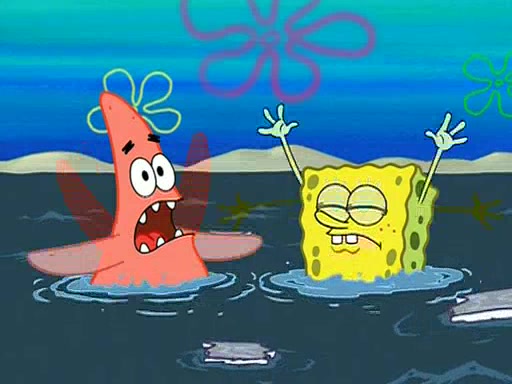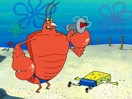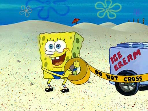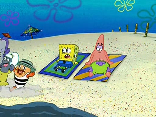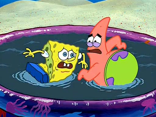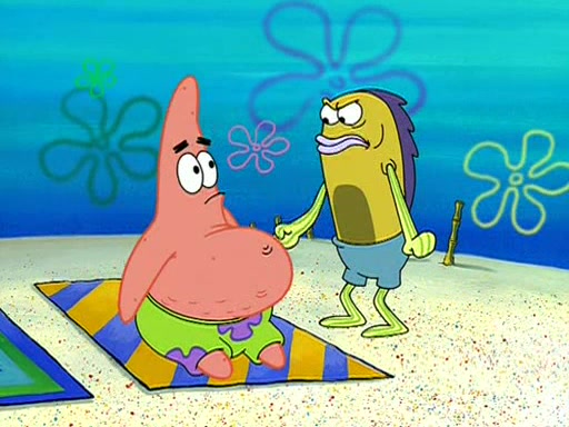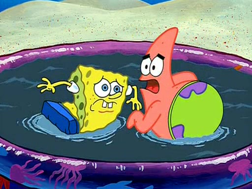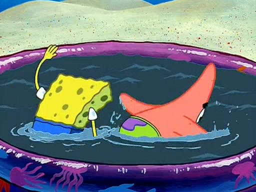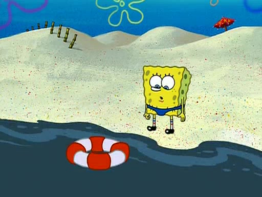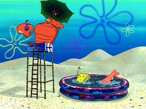 SpongeBob begins panicking when he sees everyone playing in the water in a dangerous way, such as people splashing each other, people water skiing on top of each other, two kids playing with a ball inside of Billy the killer whale's mouth, and Frank throwing Scooter into a rock. SpongeBob then lures everyone out of the water with ice cream. After they eat it, he tells them that they now have to wait one hour before going back in the water and binds them with police tape. Thinking that everyone is safe, SpongeBob settles down to relax. However, the beach guests get upset at this and one fish states that Larry is a better lifeguard than SpongeBob is. SpongeBob announces that he gave them ice cream, and Larry never did. However, after emerging from a bathroom, Patrick mistakenly looks for ice cream after SpongeBob says "ice cream" through a megaphone, crosses the tape after he sees the words on it as "ICE CREAM," when it really is "DO NOT CROSS," and goes into the water, where he gets cramps and starts drowning. When other fish get alerted to this, SpongeBob initially refuses to believe that someone is drowning, but he eventually sees Patrick and tries to find a way to save him without going in the water. He reaches Patrick using a boatmobile he "borrowed" from the parking lot, but Patrick destroys it and they both start drowning. Larry then comes back and "saves" them from the ankle deep water. Larry asks if SpongeBob is a real lifeguard, to which SpongeBob replies "No." At the end of the episode, Larry is seen teaching the two how to swim, and they both get butt cramps, and Patrick still doesn't have his ice cream, much to his dismay.