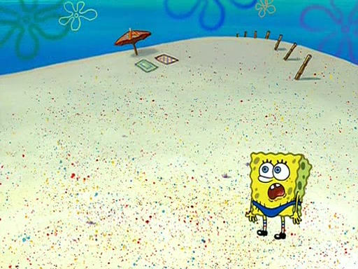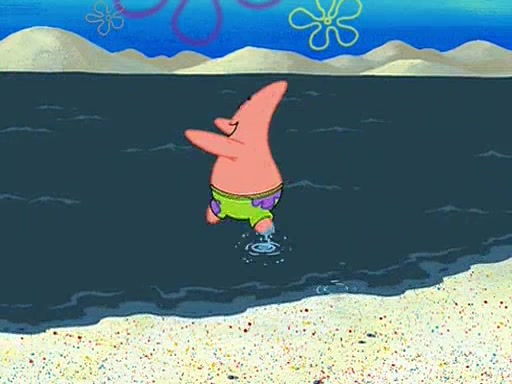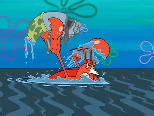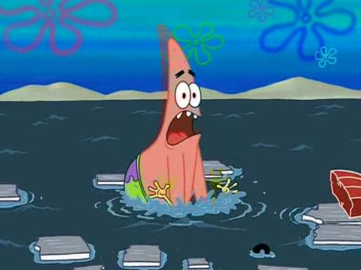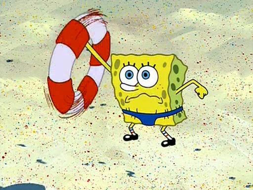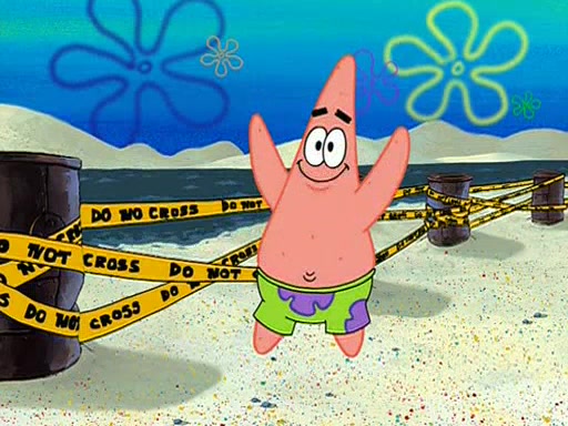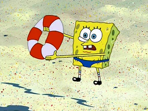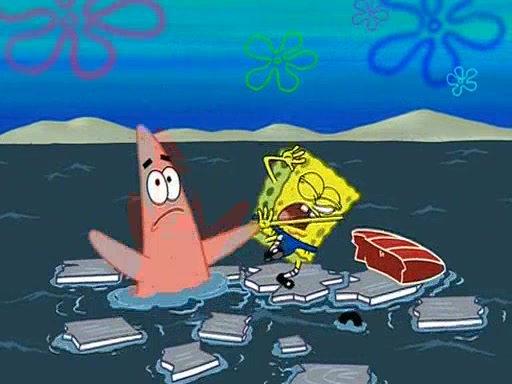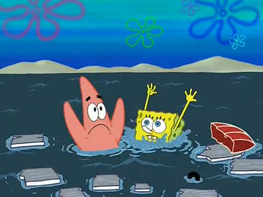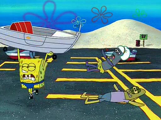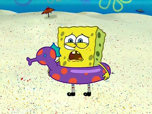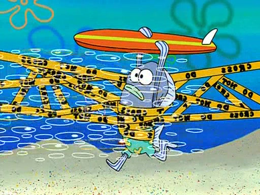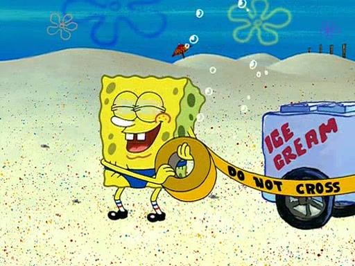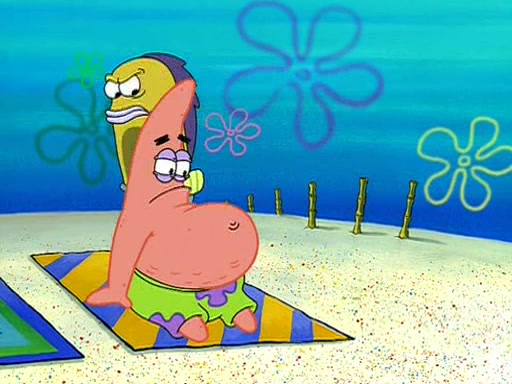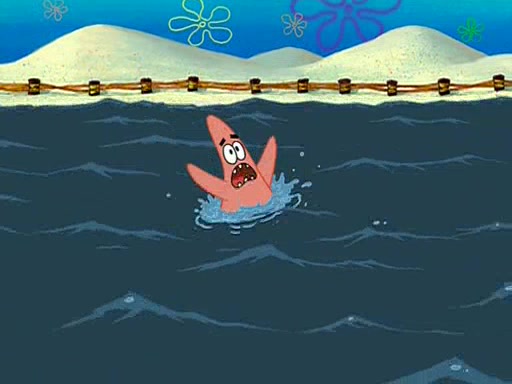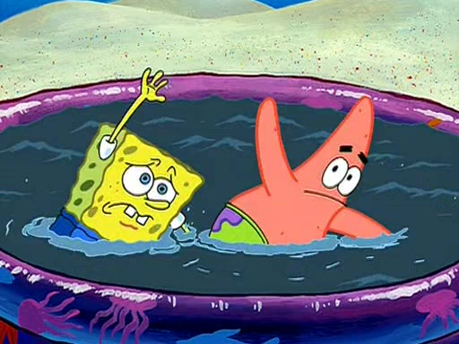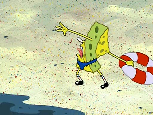 SpongeBob begins panicking when he sees everyone playing in the water in a dangerous way, such as people splashing each other, people water skiing on top of each other, two kids playing with a ball inside of Billy the killer whale's mouth, and Frank throwing Scooter into a rock. SpongeBob then lures everyone out of the water with ice cream. After they eat it, he tells them that they now have to wait one hour before going back in the water and binds them with police tape. Thinking that everyone is safe, SpongeBob settles down to relax. However, the beach guests get upset at this and one fish states that Larry is a better lifeguard than SpongeBob is. SpongeBob announces that he gave them ice cream, and Larry never did. However, after emerging from a bathroom, Patrick mistakenly looks for ice cream after SpongeBob says "ice cream" through a megaphone, crosses the tape after he sees the words on it as "ICE CREAM," when it really is "DO NOT CROSS," and goes into the water, where he gets cramps and starts drowning. When other fish get alerted to this, SpongeBob initially refuses to believe that someone is drowning, but he eventually sees Patrick and tries to find a way to save him without going in the water. He reaches Patrick using a boatmobile he "borrowed" from the parking lot, but Patrick destroys it and they both start drowning. Larry then comes back and "saves" them from the ankle deep water. Larry asks if SpongeBob is a real lifeguard, to which SpongeBob replies "No." At the end of the episode, Larry is seen teaching the two how to swim, and they both get butt cramps, and Patrick still doesn't have his ice cream, much to his dismay.