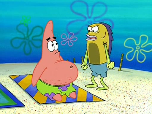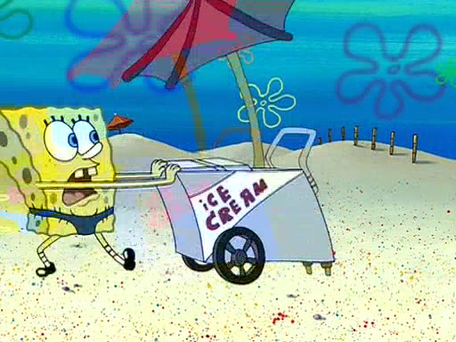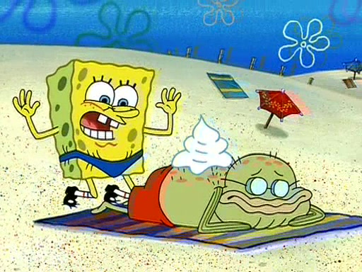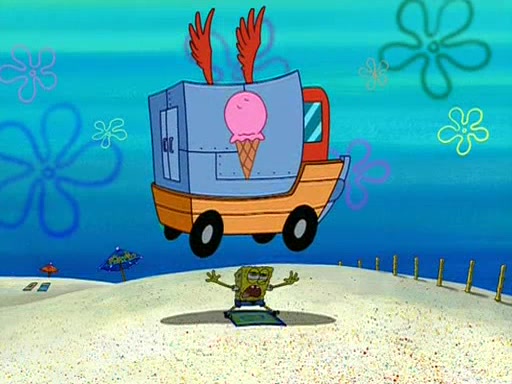 At Goo Lagoon, SpongeBob and Patrick are sunbathing. SpongeBob remarks on how cool Larry the Lifeguard is, and SpongeBob fantasizes about how "cool" it would be if he was a lifeguard, but Patrick doesn't agree, disliking lifeguards. SpongeBob then says that he's "just as cool as Larry." SpongeBob claims that if he is not as "cool" as Larry, that he will be struck by "a flying ice cream truck. AND LIVE!" Larry helps him up after the truck actually falls on him and notices vanilla ice cream on his nose. Thinking that it's sunscreen, and that therefore he is a lifeguard, he offers SpongeBob to help him with his lifeguard duties.