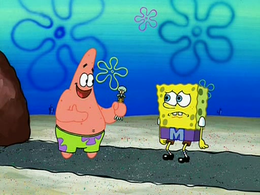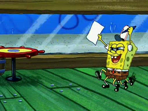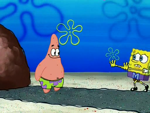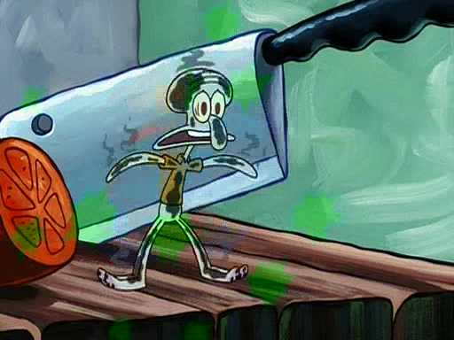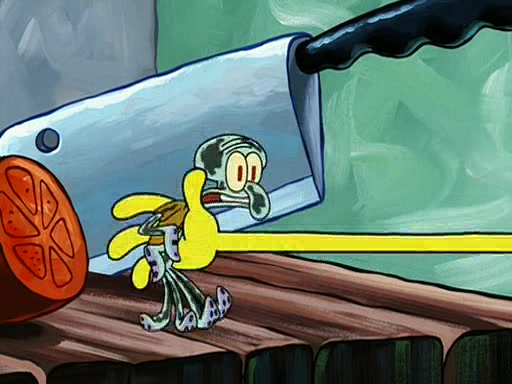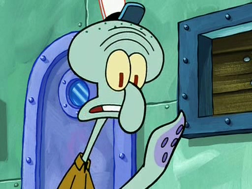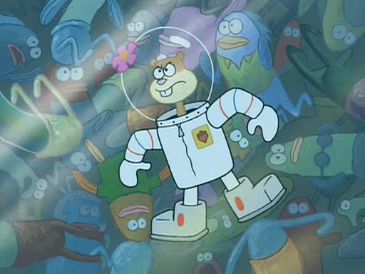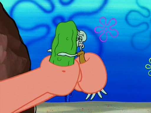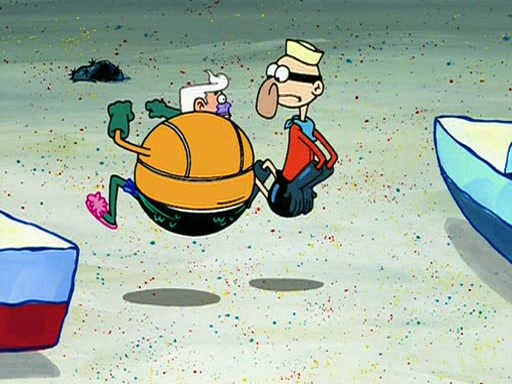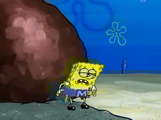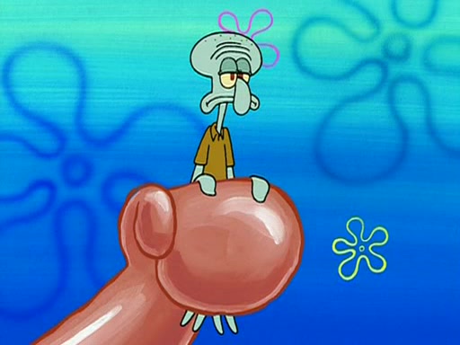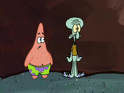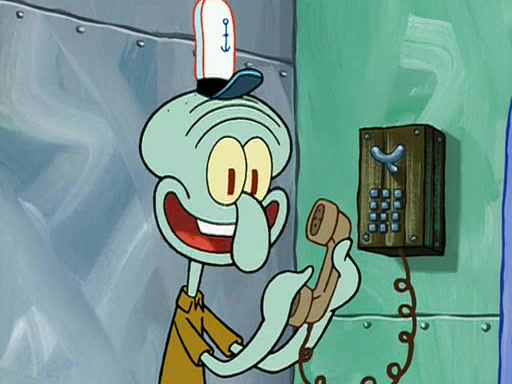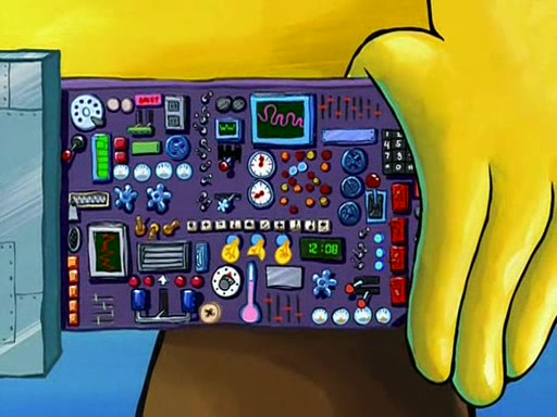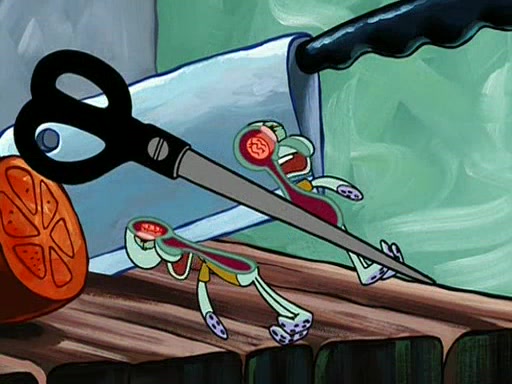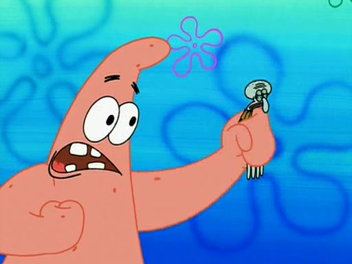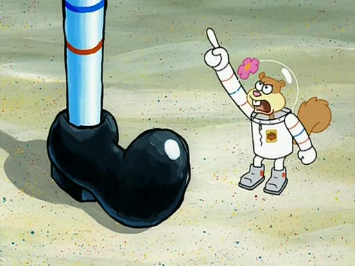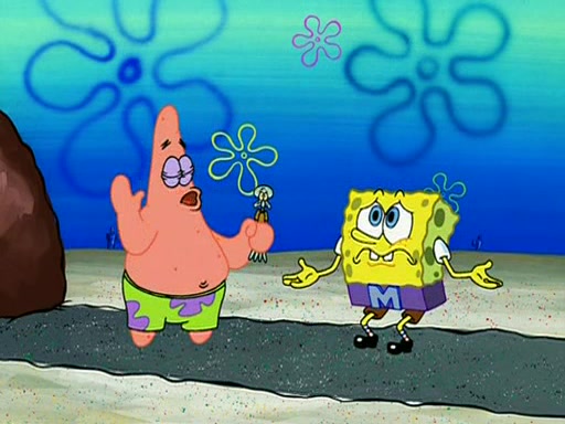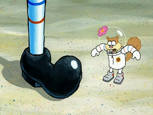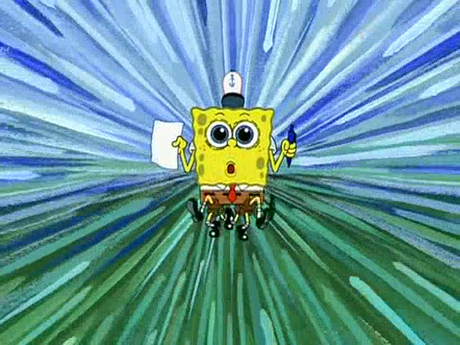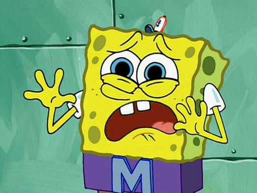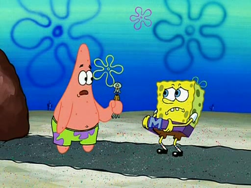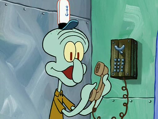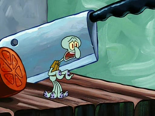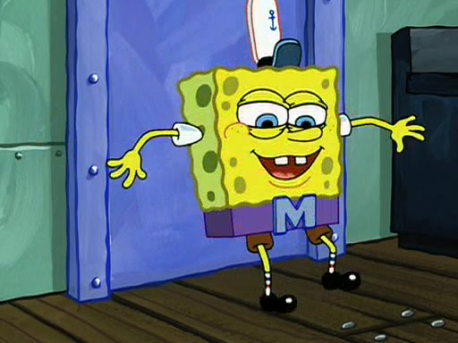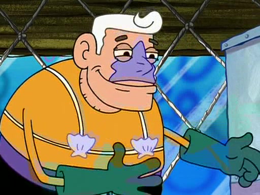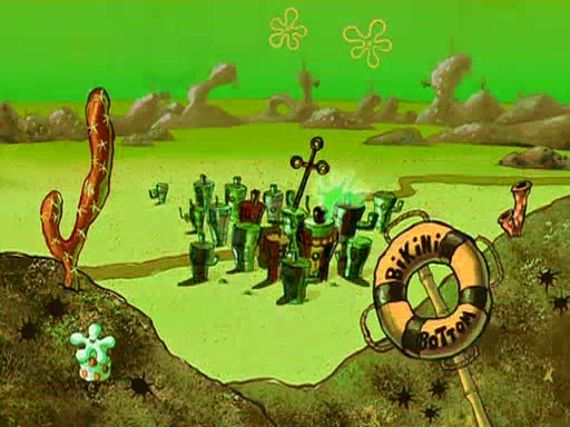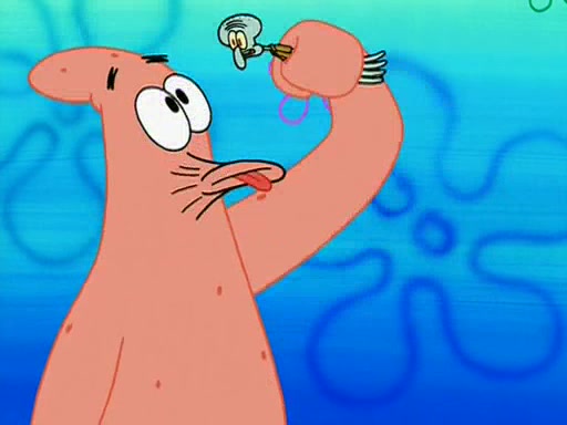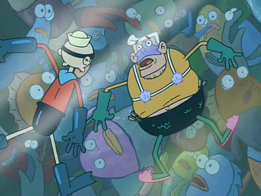 Mermaid Man & Barnacle Boy are entering the Krusty Krab, most likely for lunch, and upon realizing this, SpongeBob goes into an excited frenzy, bursting through a steel wall in order to get their autograph. The heroes run away from him, accidentally leaving Mermaid Man's utility belt inside. SpongeBob finds it, and tries to give it back, but they drive away in the Invisible Boat Mobile before he can do so. SpongeBob decides to wear the belt and play with it, thinking that he could hold on to it until after work. He discovers the "Small Ray," and starts shrinking the items in the kitchen. However, Squidward enters the room and sees SpongeBob serving tiny Krabby Patties to cockroaches and asks SpongeBob why is everything in the kitchen so tiny. Squidward discovers that SpongeBob has Mermaid Man's belt. Assuming that SpongeBob has stolen the belt, he plans to do the right thing and call Mermaid Man in order to get revenge, and tell on him. SpongeBob realizes that if Squidward tells on him, Mermaid Man will find out and he will be kicked out of his fan club for sure. In order to stop Squidward, SpongeBob shrinks him, and promises to find a way to return him to normal after Squidward demands SpongeBob to return him to normal size. He tries to use the different buttons to make Squidward big, but none of them work. Not wanting Mermaid Man to find out due to how he might react, he leaves to find someone that can help him.