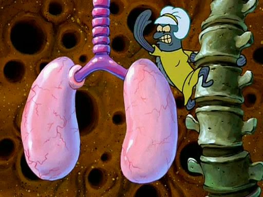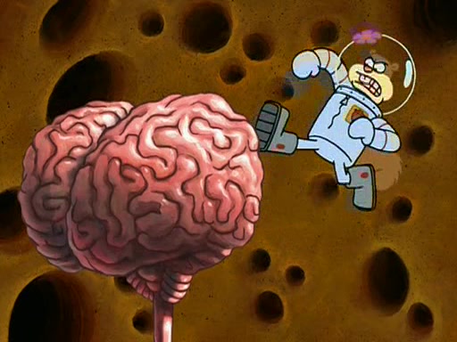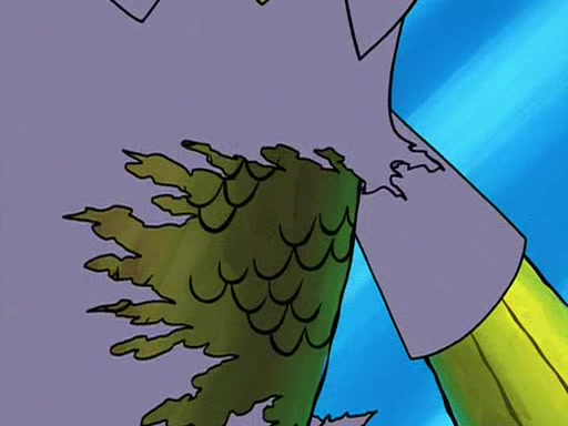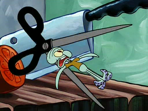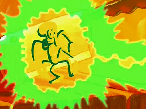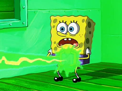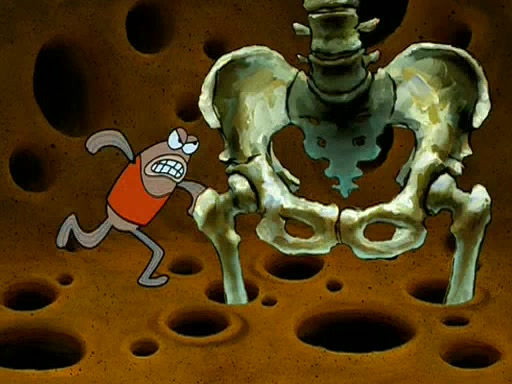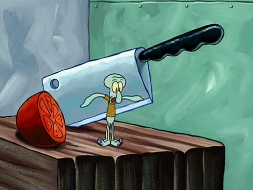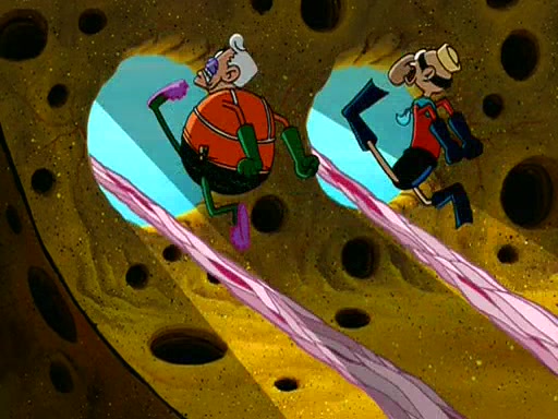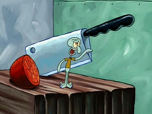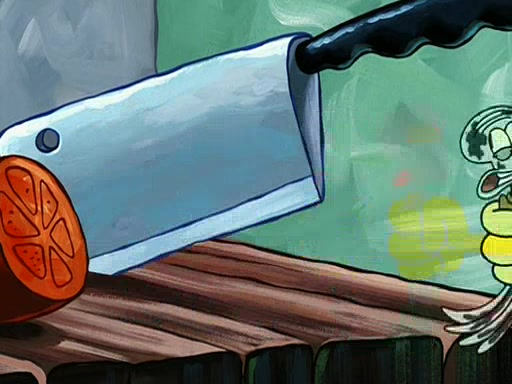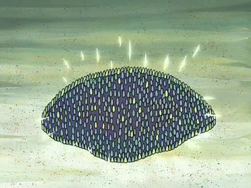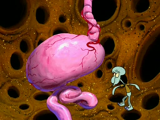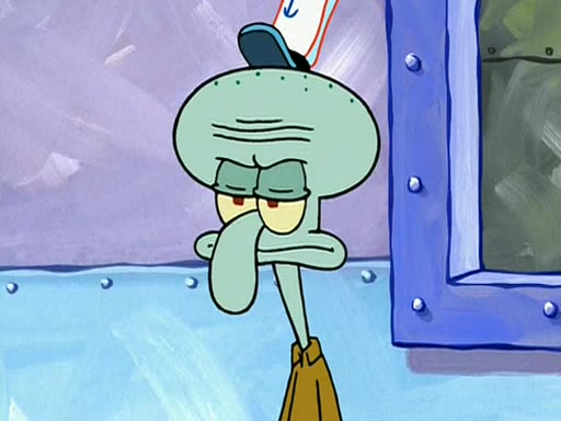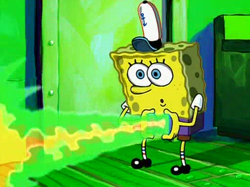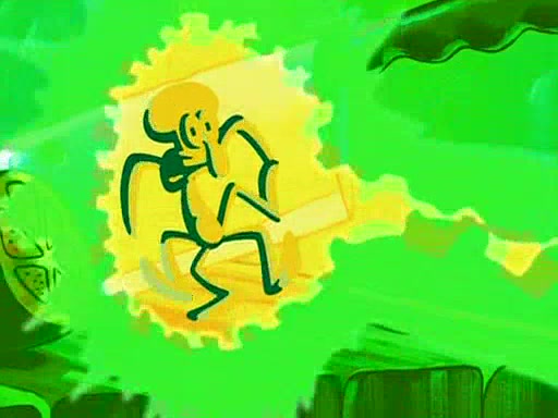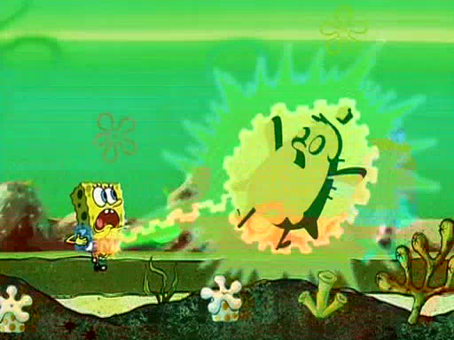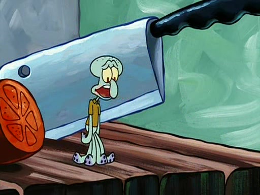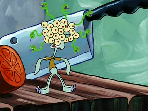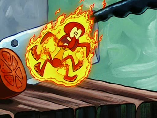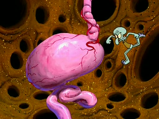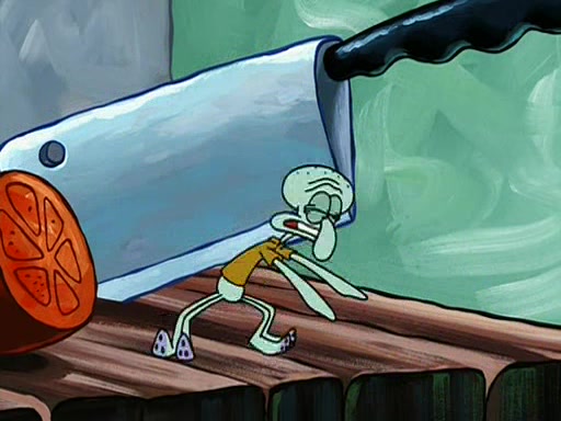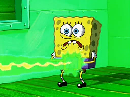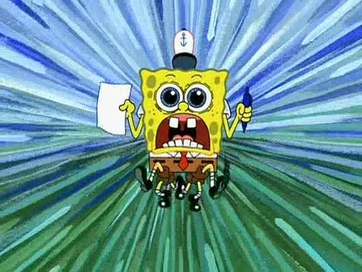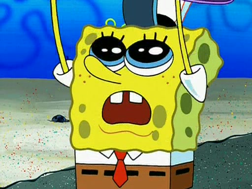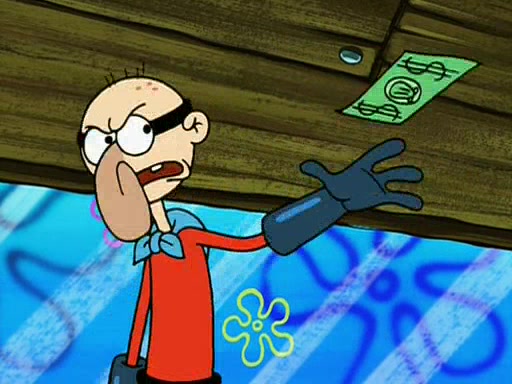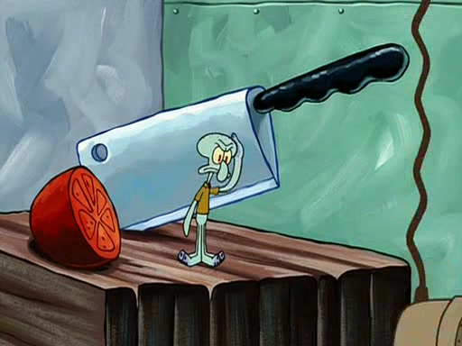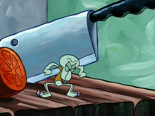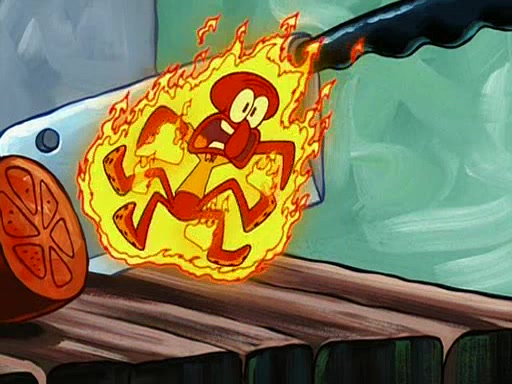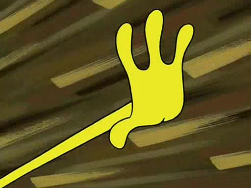 Mermaid Man & Barnacle Boy are entering the Krusty Krab, most likely for lunch, and upon realizing this, SpongeBob goes into an excited frenzy, bursting through a steel wall in order to get their autograph. The heroes run away from him, accidentally leaving Mermaid Man's utility belt inside. SpongeBob finds it, and tries to give it back, but they drive away in the Invisible Boat Mobile before he can do so. SpongeBob decides to wear the belt and play with it, thinking that he could hold on to it until after work. He discovers the "Small Ray," and starts shrinking the items in the kitchen. However, Squidward enters the room and sees SpongeBob serving tiny Krabby Patties to cockroaches and asks SpongeBob why is everything in the kitchen so tiny. Squidward discovers that SpongeBob has Mermaid Man's belt. Assuming that SpongeBob has stolen the belt, he plans to do the right thing and call Mermaid Man in order to get revenge, and tell on him. SpongeBob realizes that if Squidward tells on him, Mermaid Man will find out and he will be kicked out of his fan club for sure. In order to stop Squidward, SpongeBob shrinks him, and promises to find a way to return him to normal after Squidward demands SpongeBob to return him to normal size. He tries to use the different buttons to make Squidward big, but none of them work. Not wanting Mermaid Man to find out due to how he might react, he leaves to find someone that can help him.